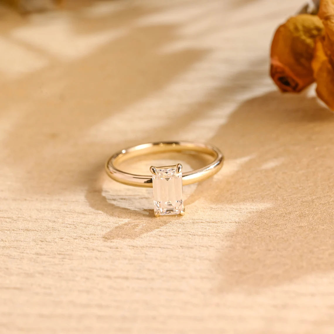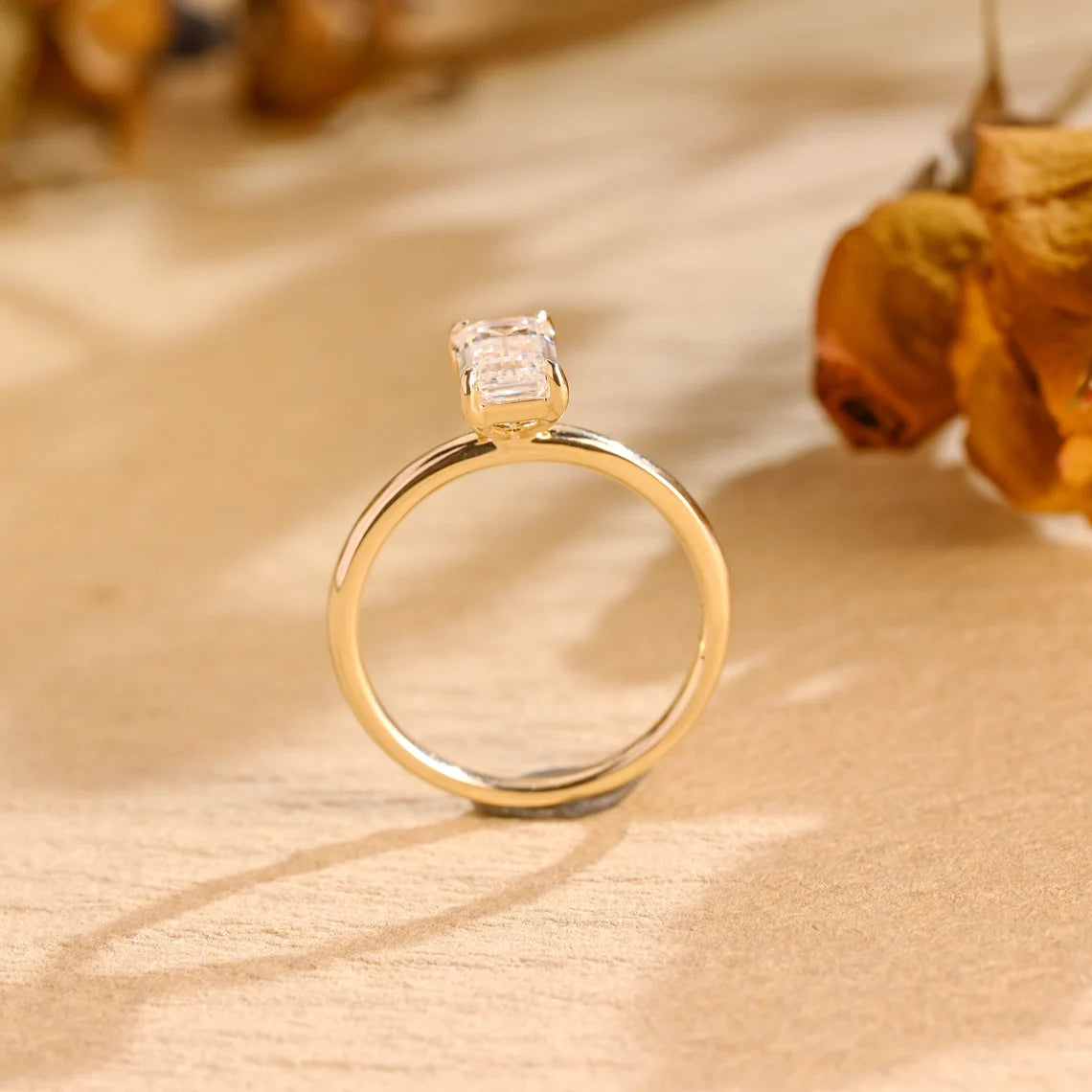 1.0CT Emerald Cut Solitaire Moissanite Engagement Ring