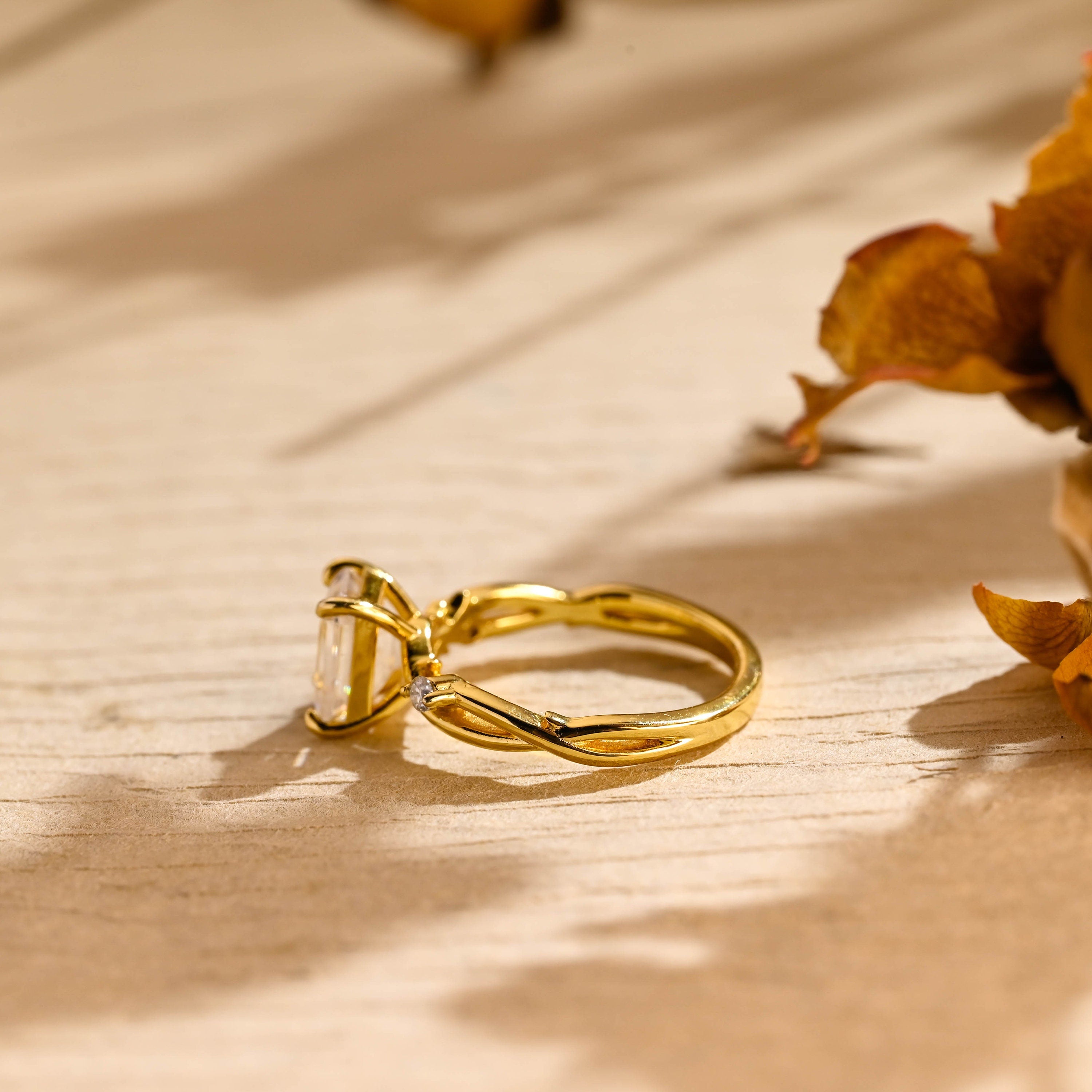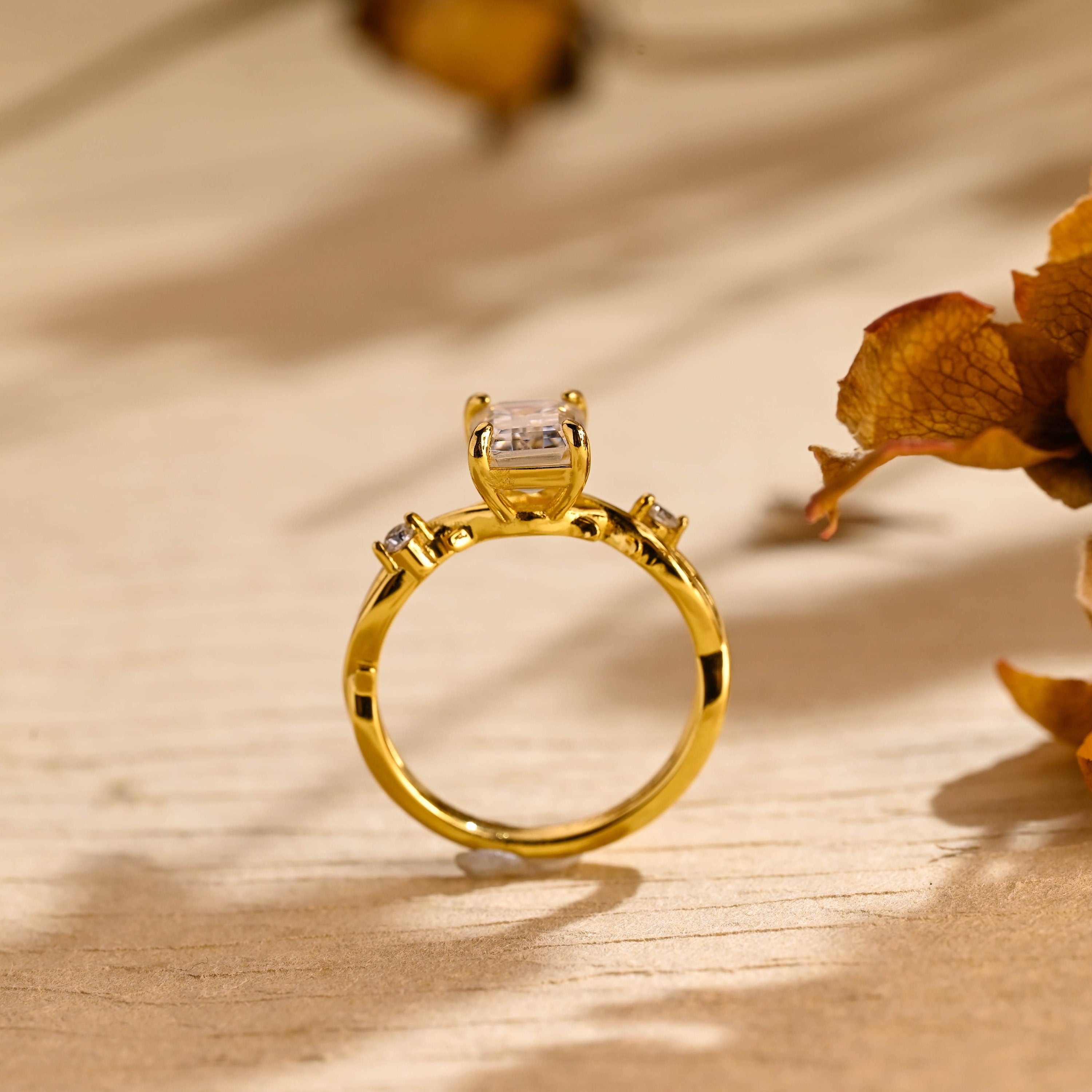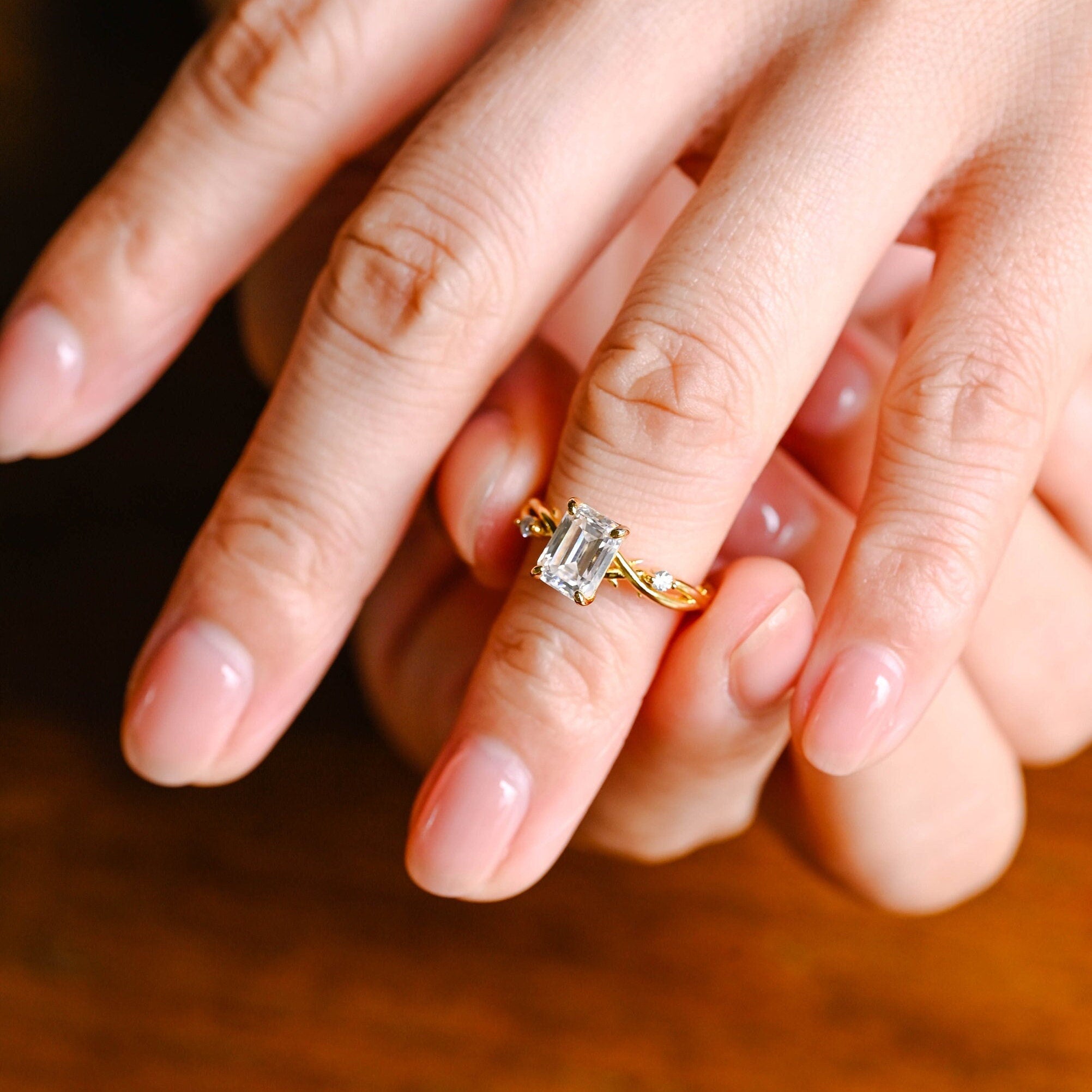 1.0CT Emerald Diamon Twig Style Moissanite Engagement Ring