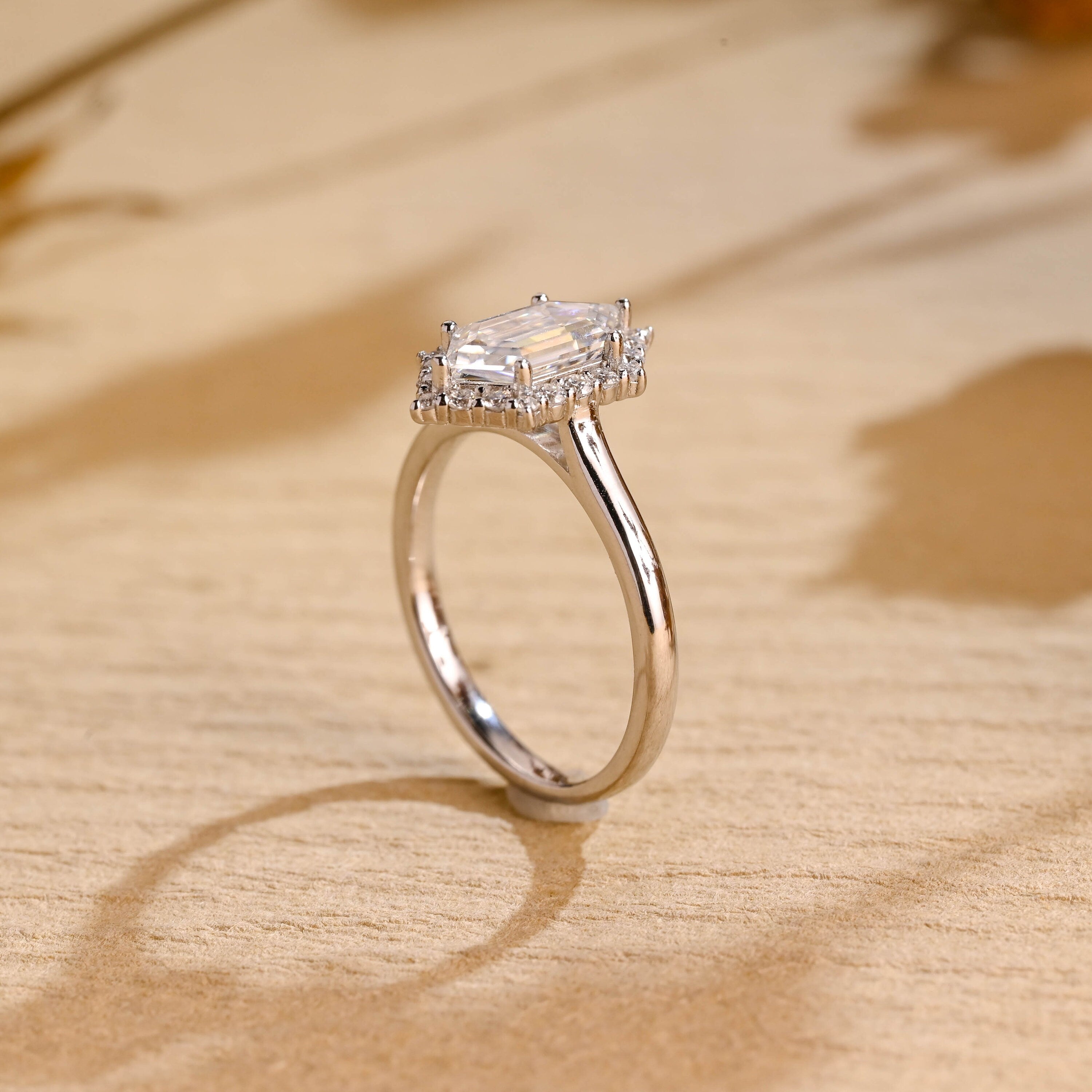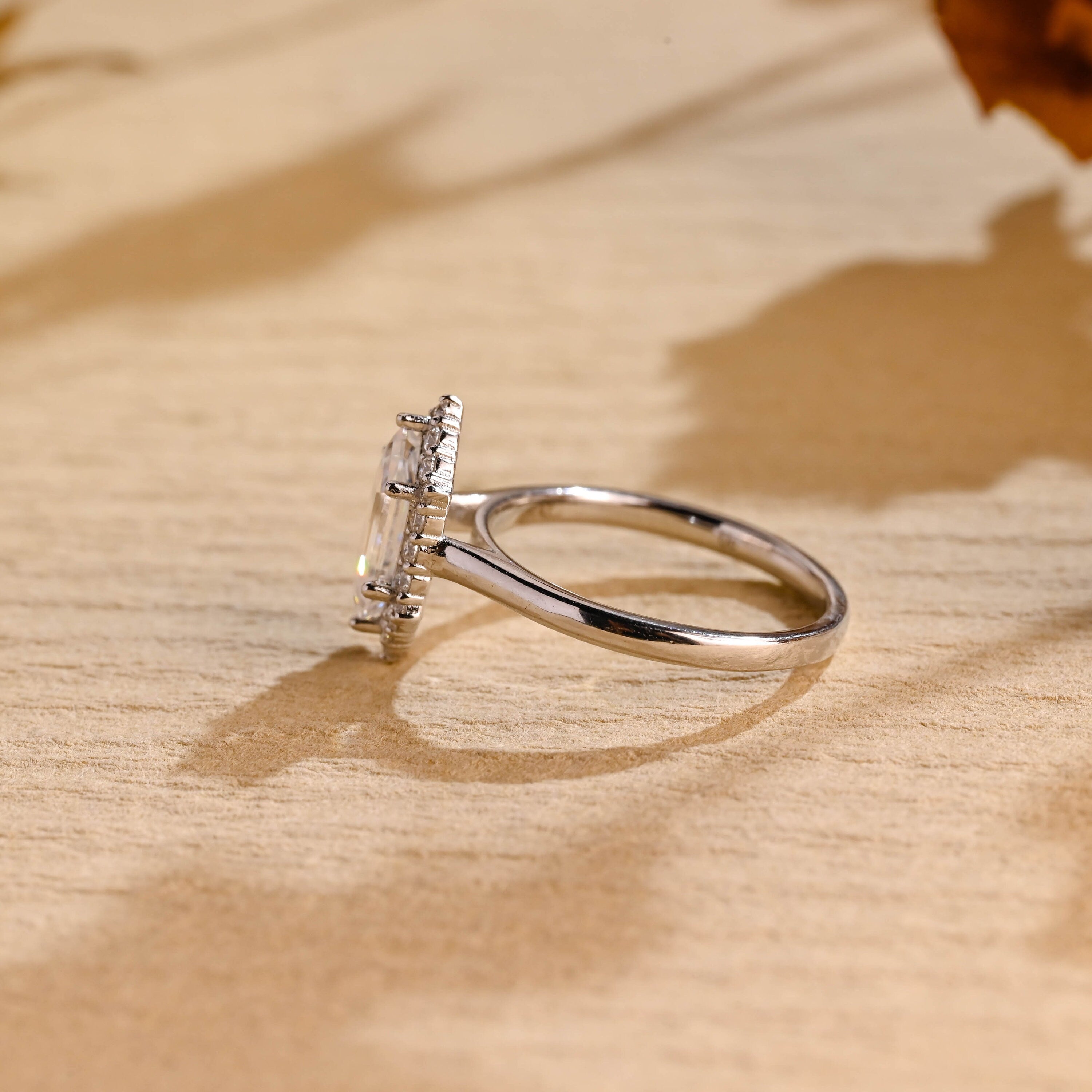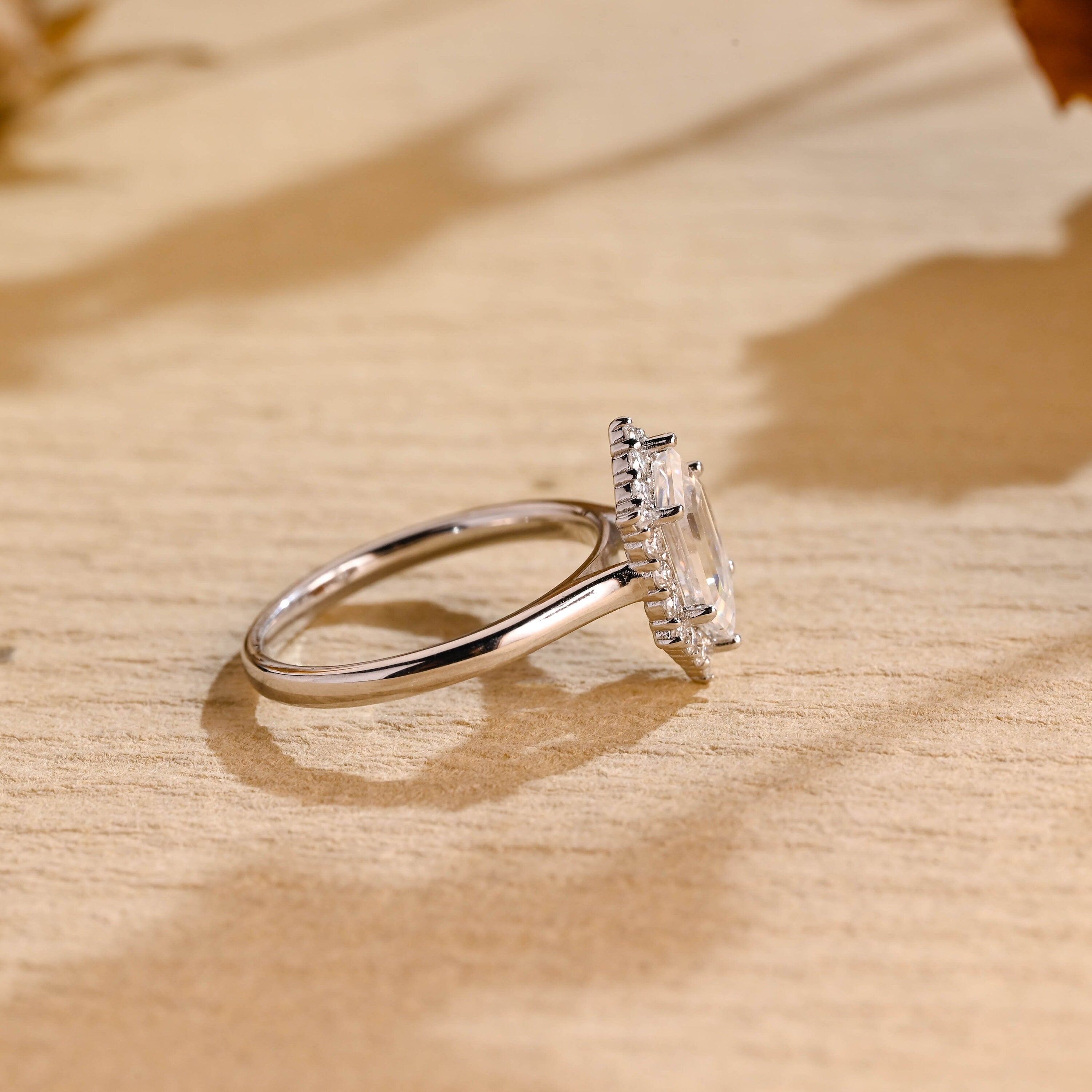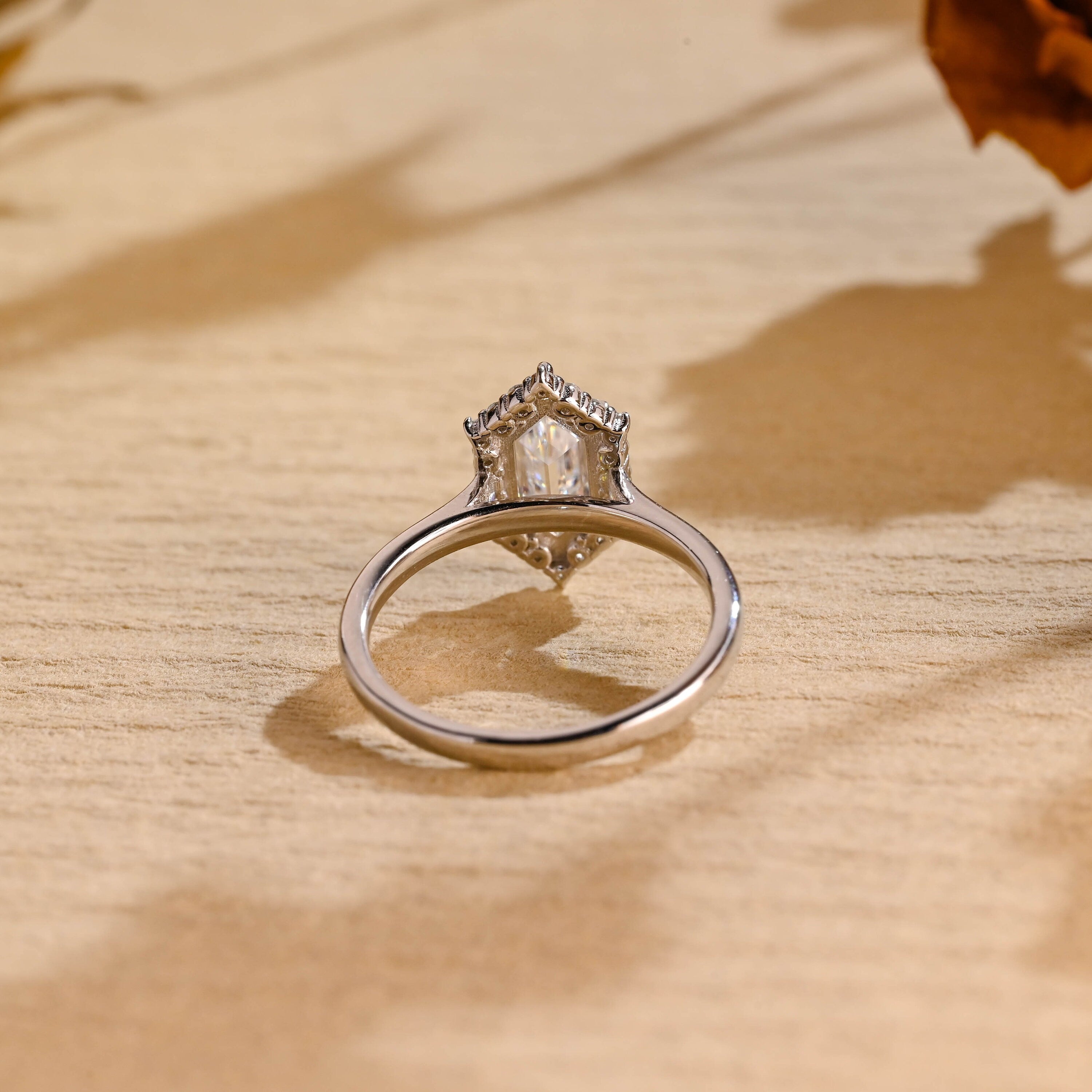 1.0CT Kite Cut Diamond Halo Moissanite Engagement Ring