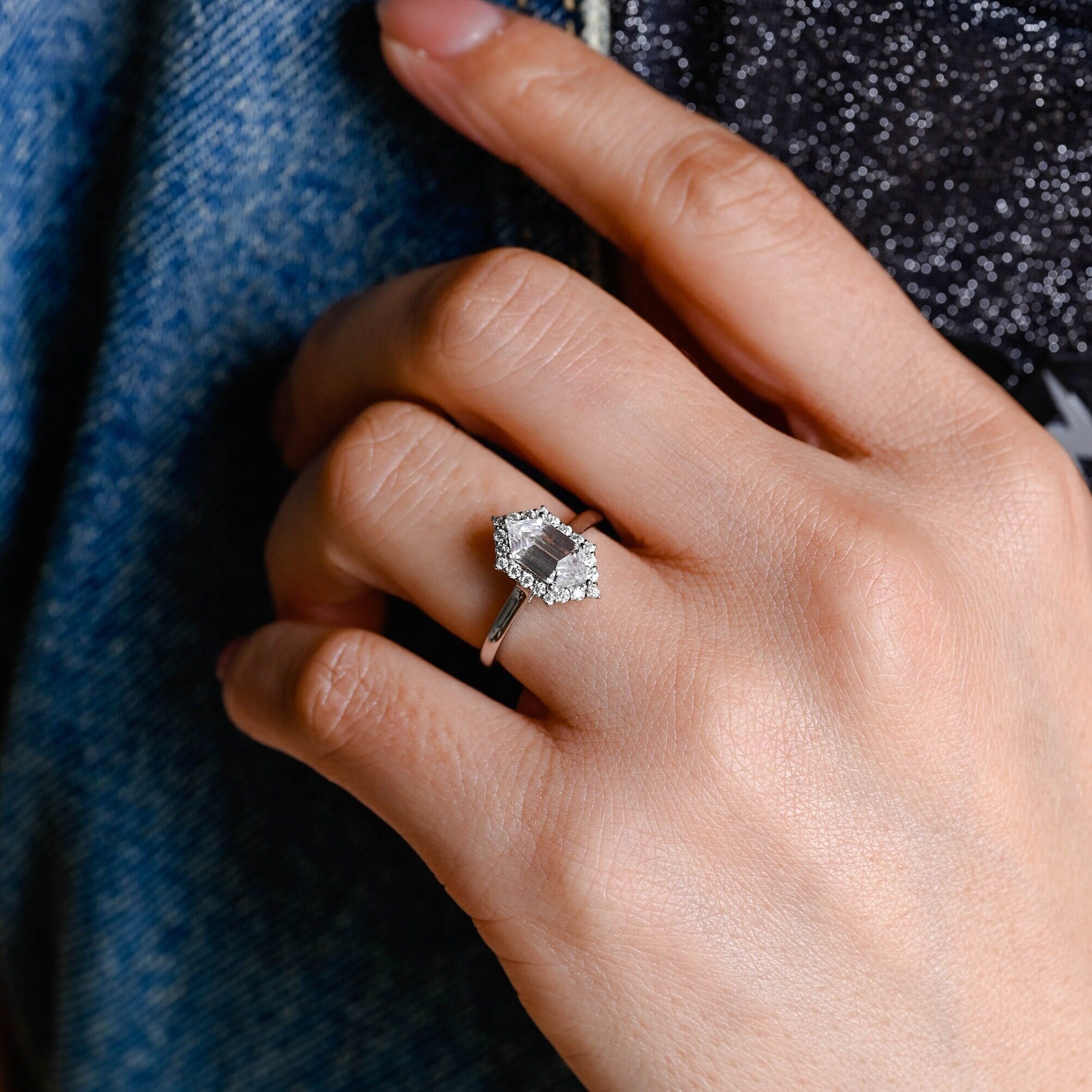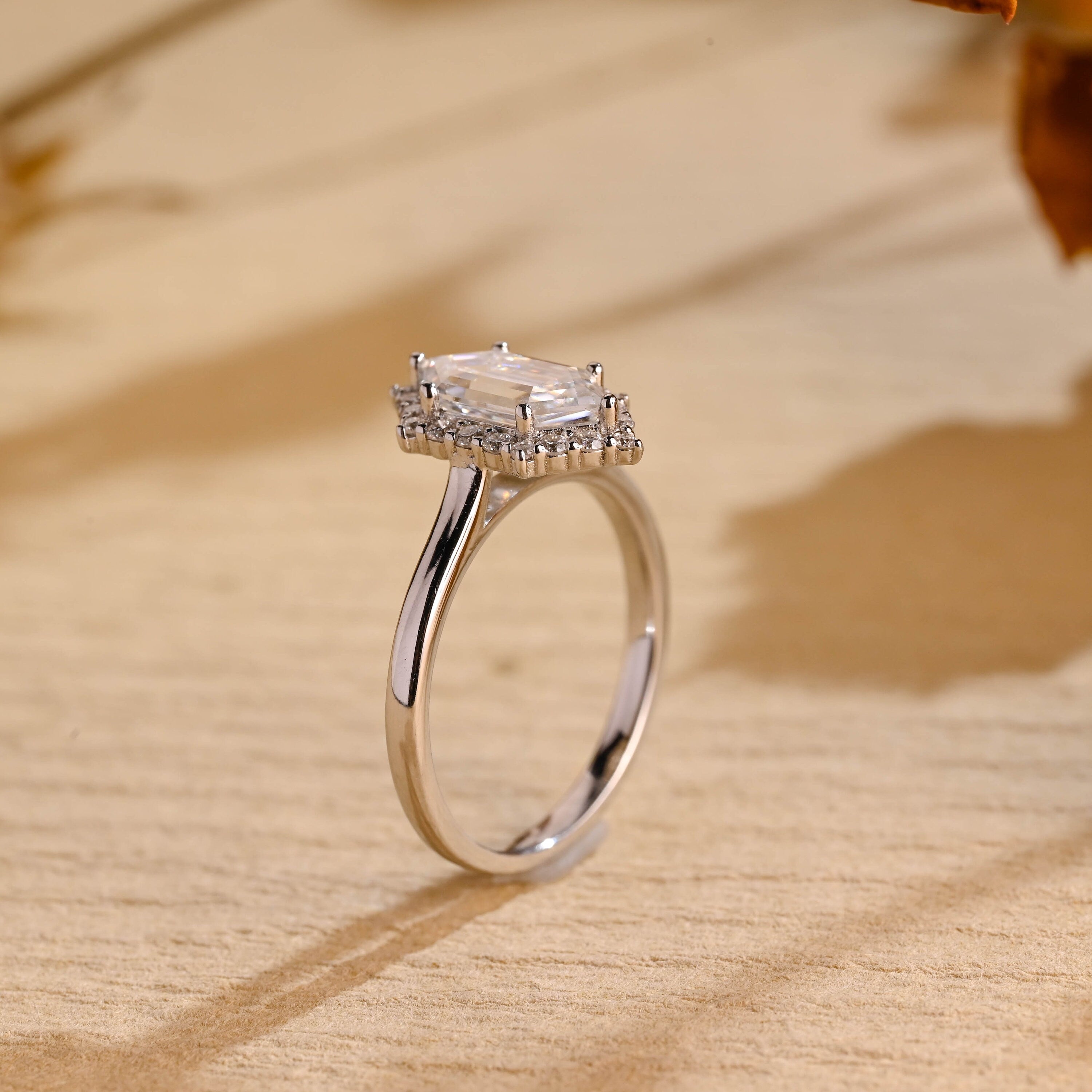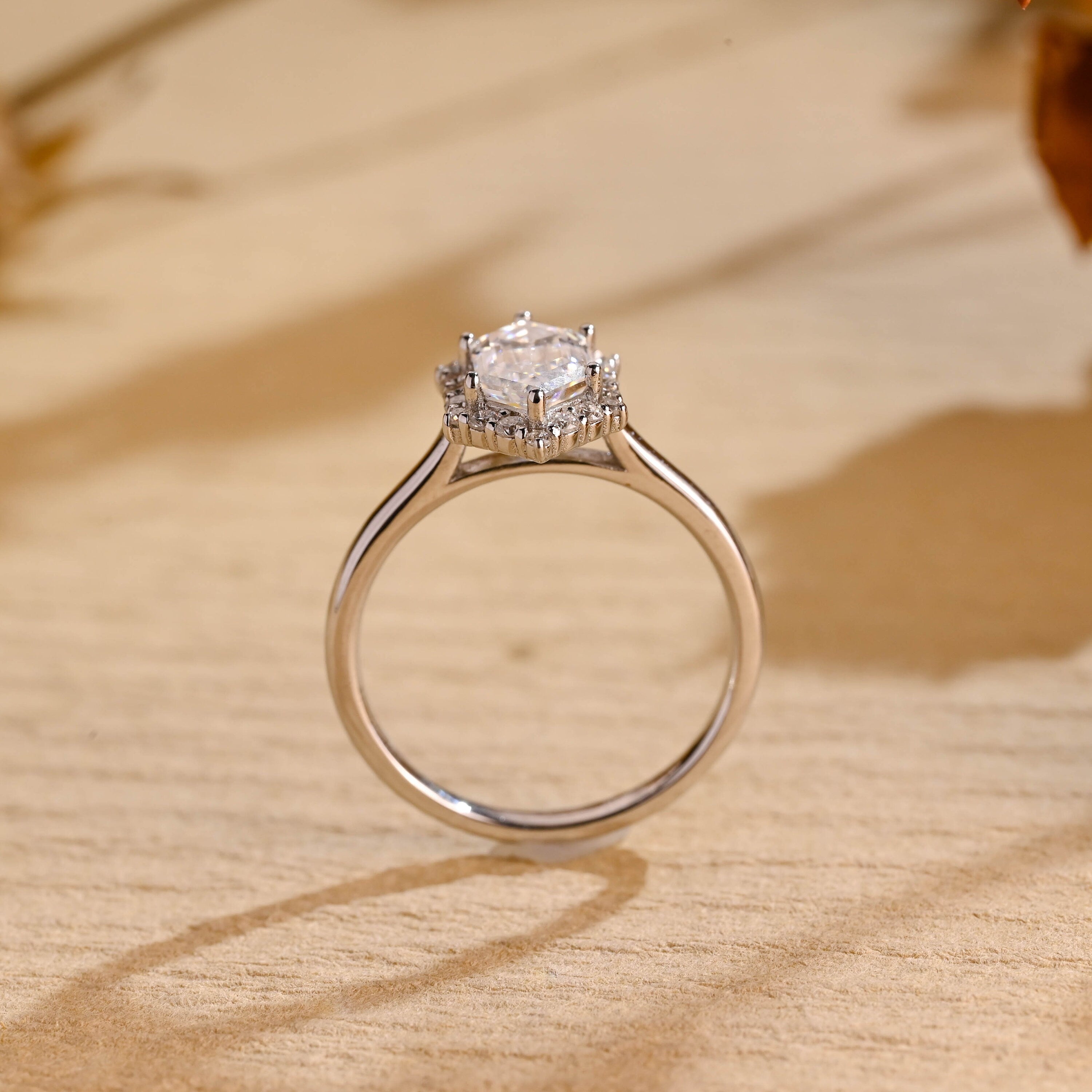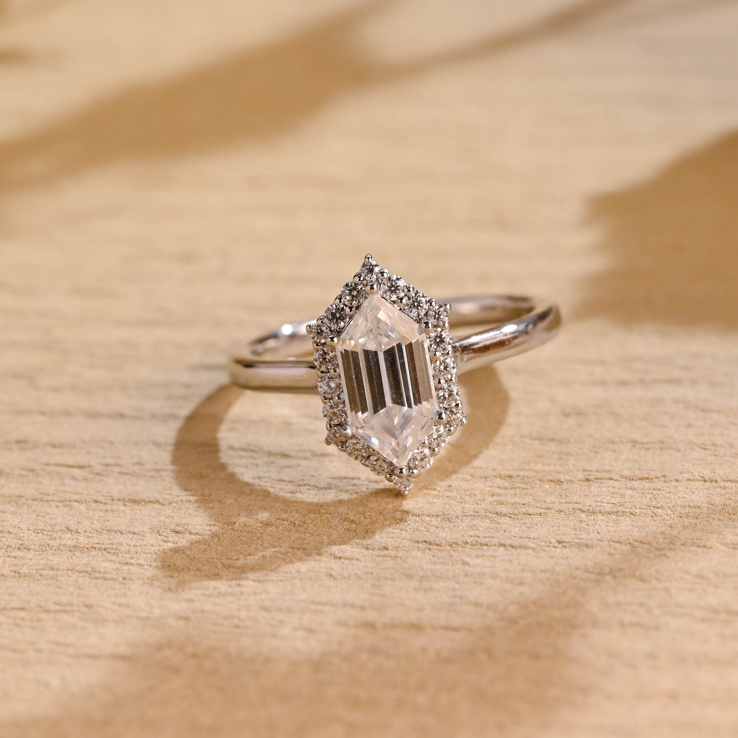 1.0CT Kite Cut Diamond Halo Moissanite Engagement Ring