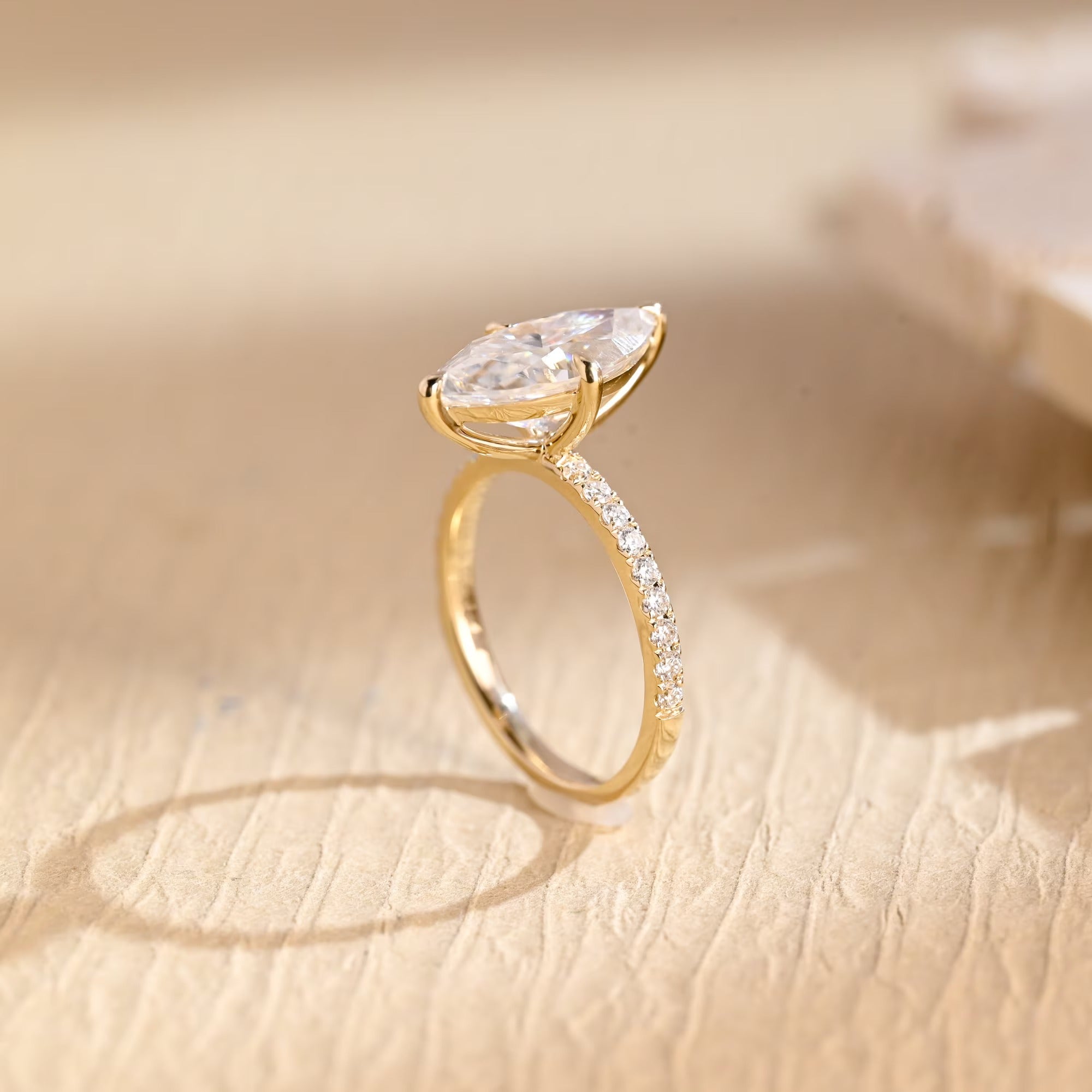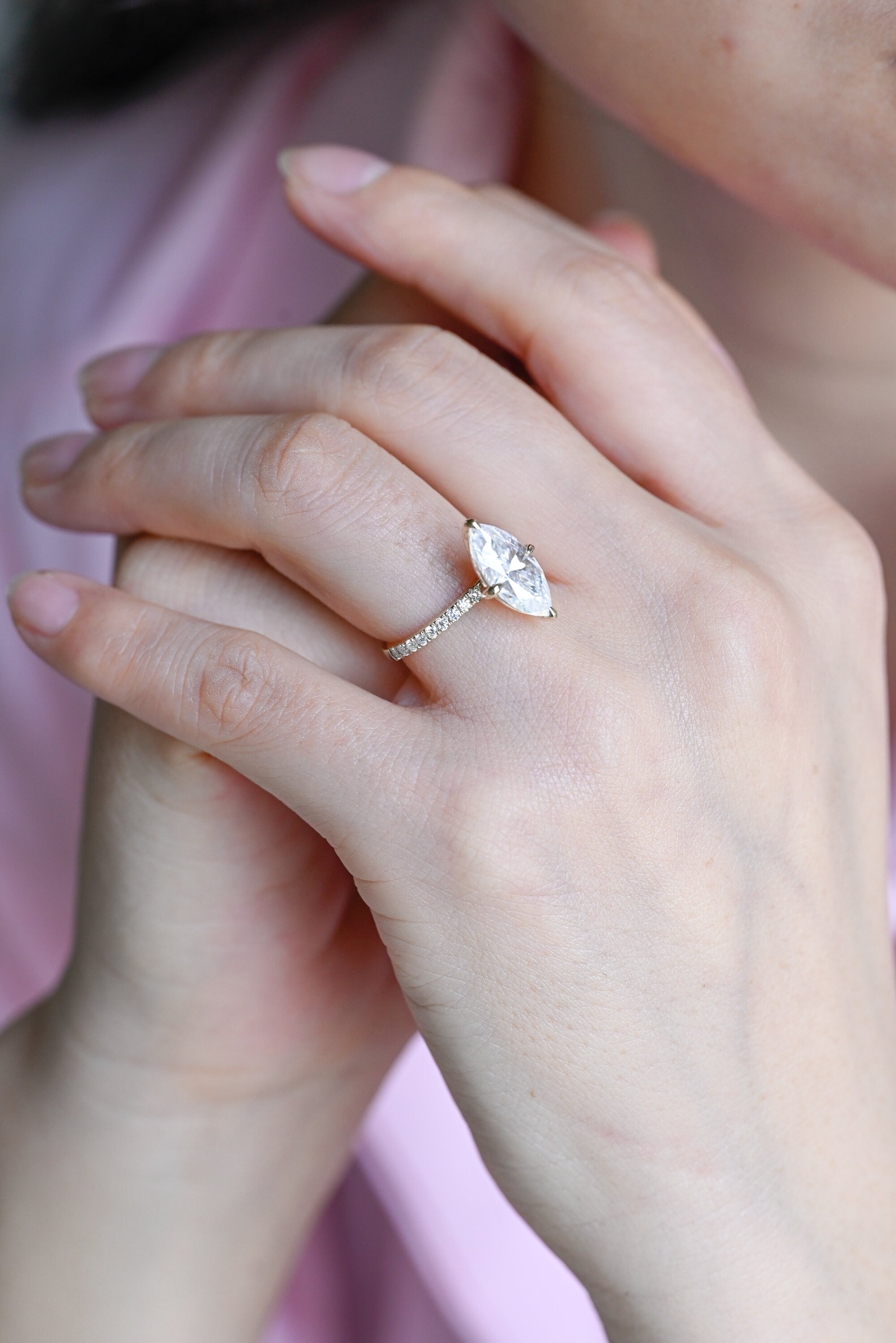 1.0CT Marquise Cut Pave Setting Moissanite Engagement Ring