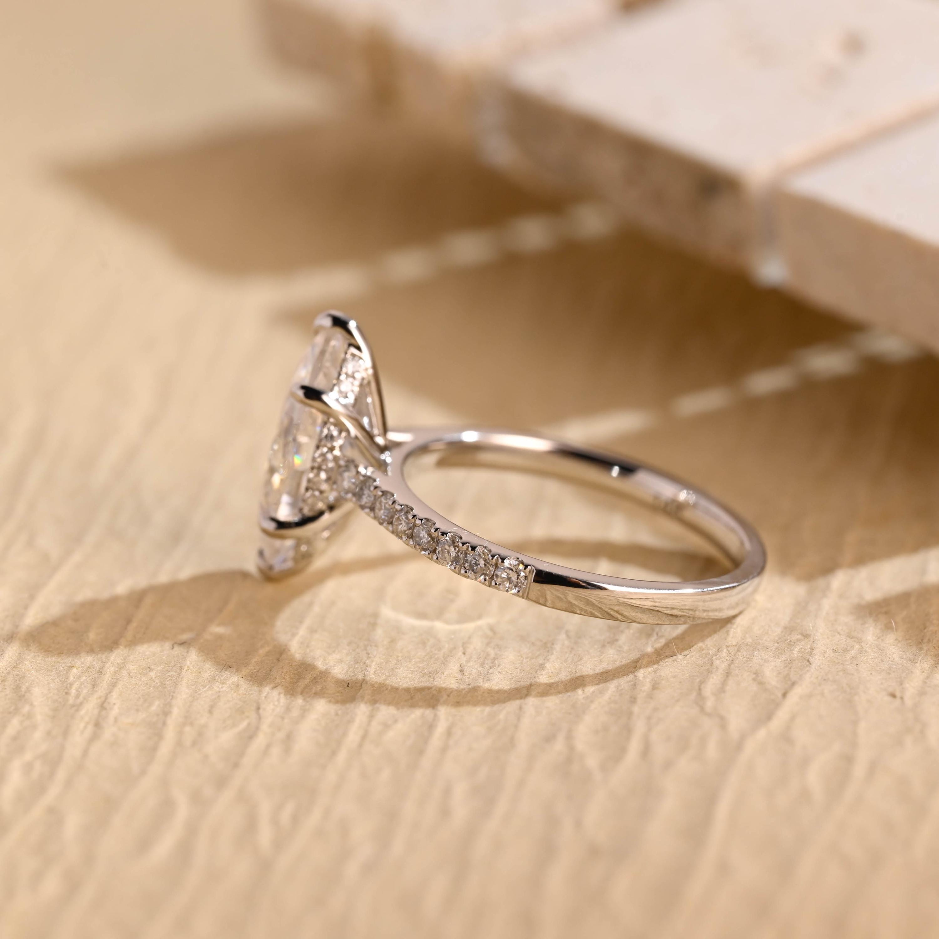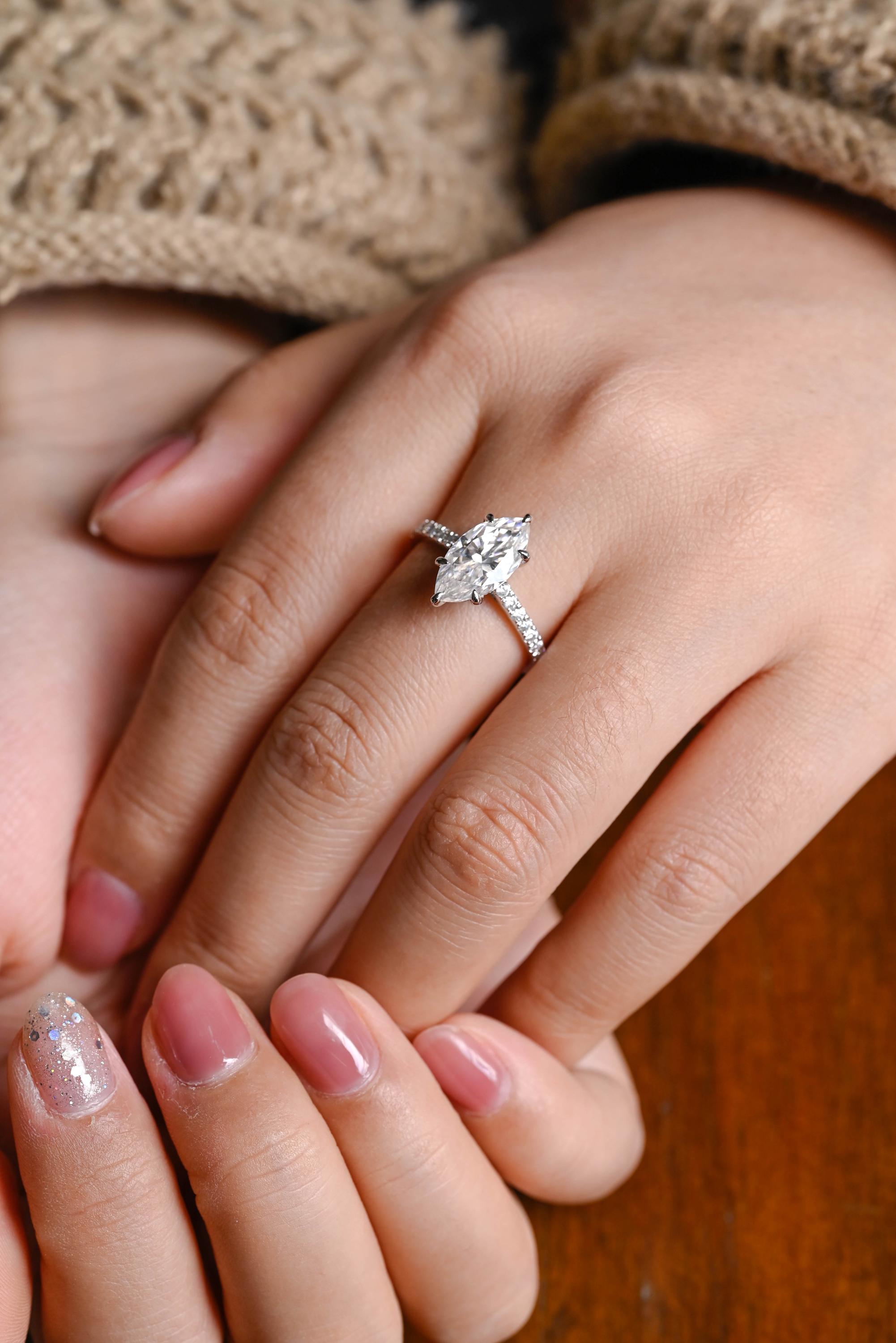 1.0CT Marquise Cut Pave Setting Moissanite Engagement Ring