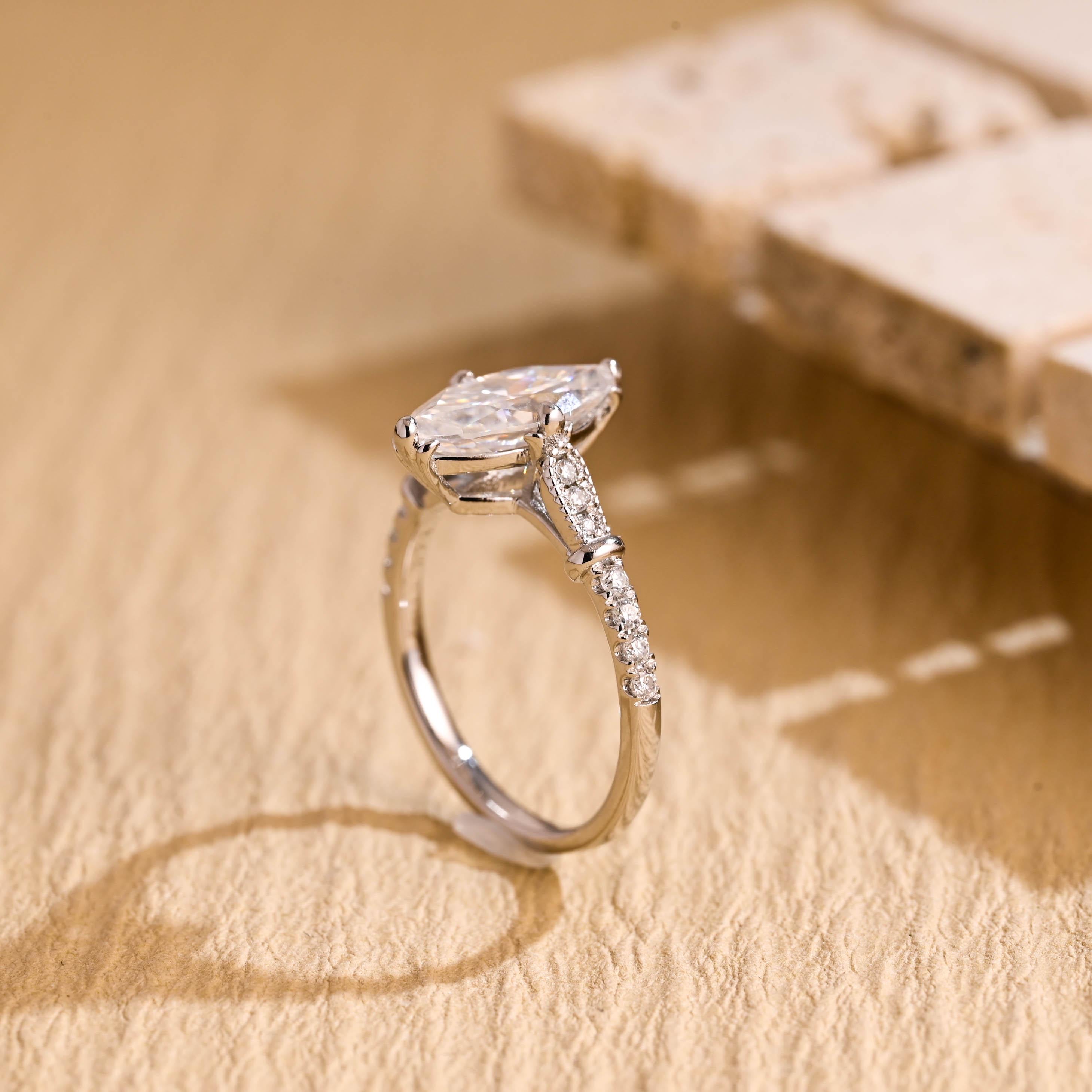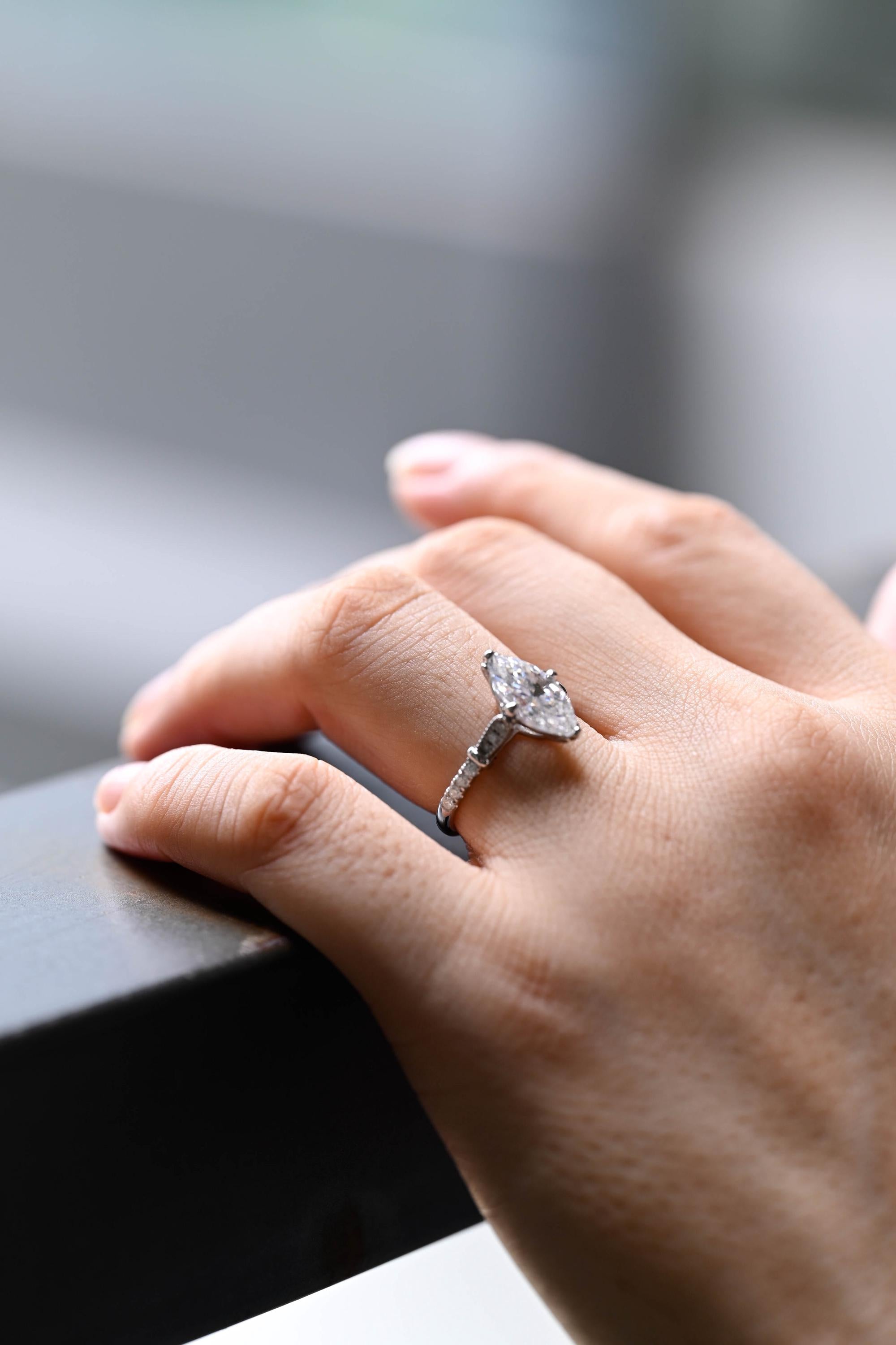 1.50CT Marquise Cut Pave Setting Moissanite Engagement Ring