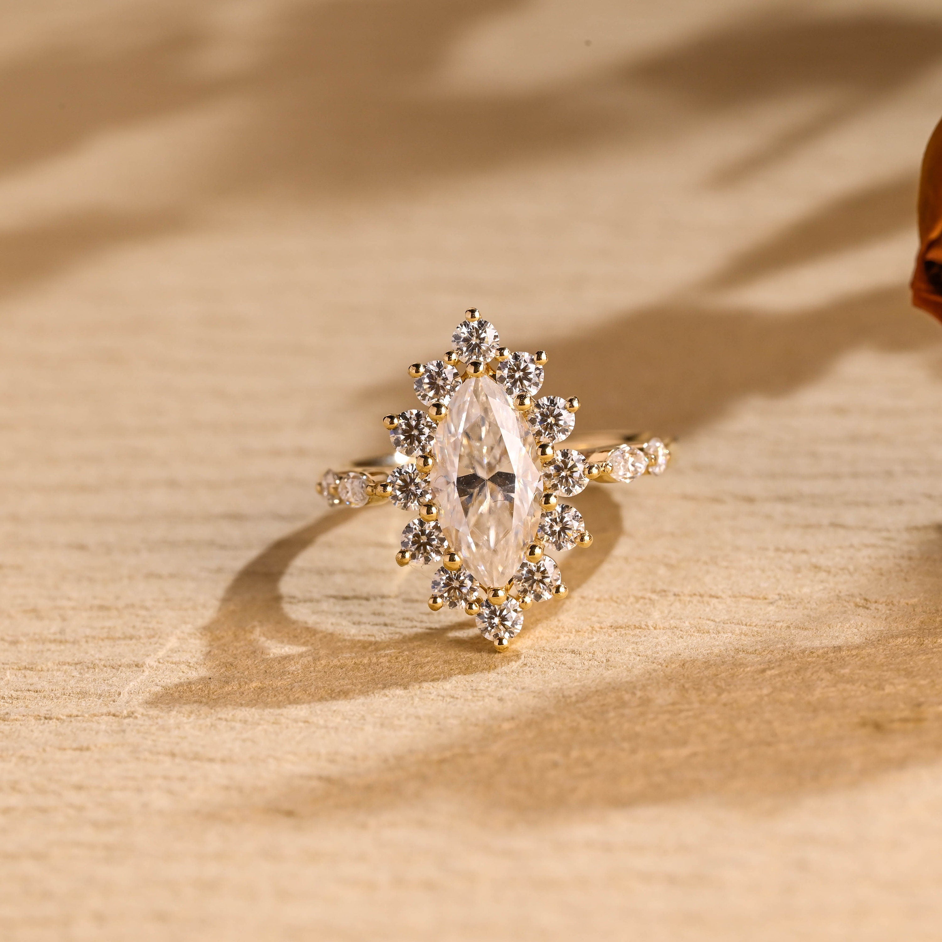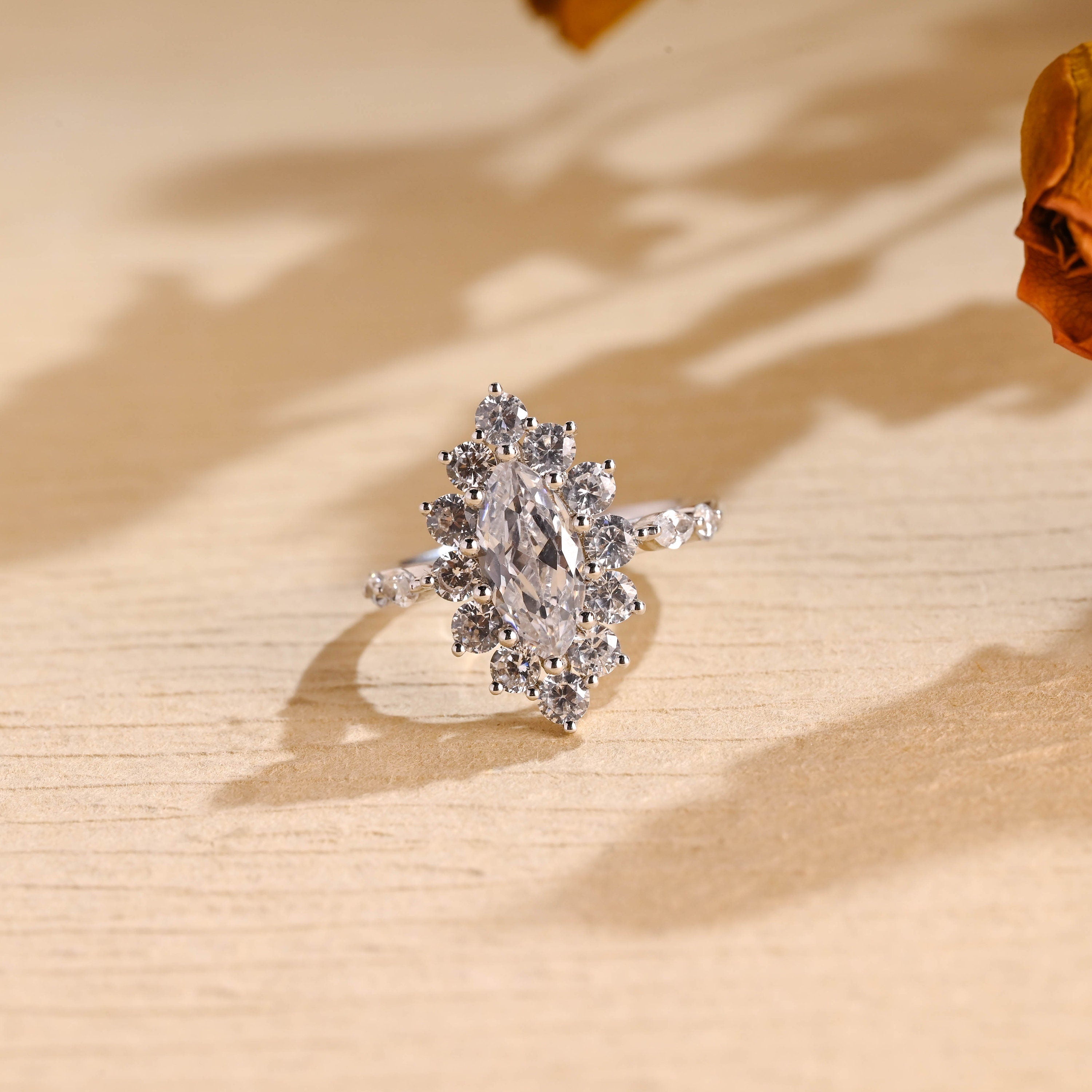 1.0CT Marquise Diamond Cluster Moissanite Engagement Ring