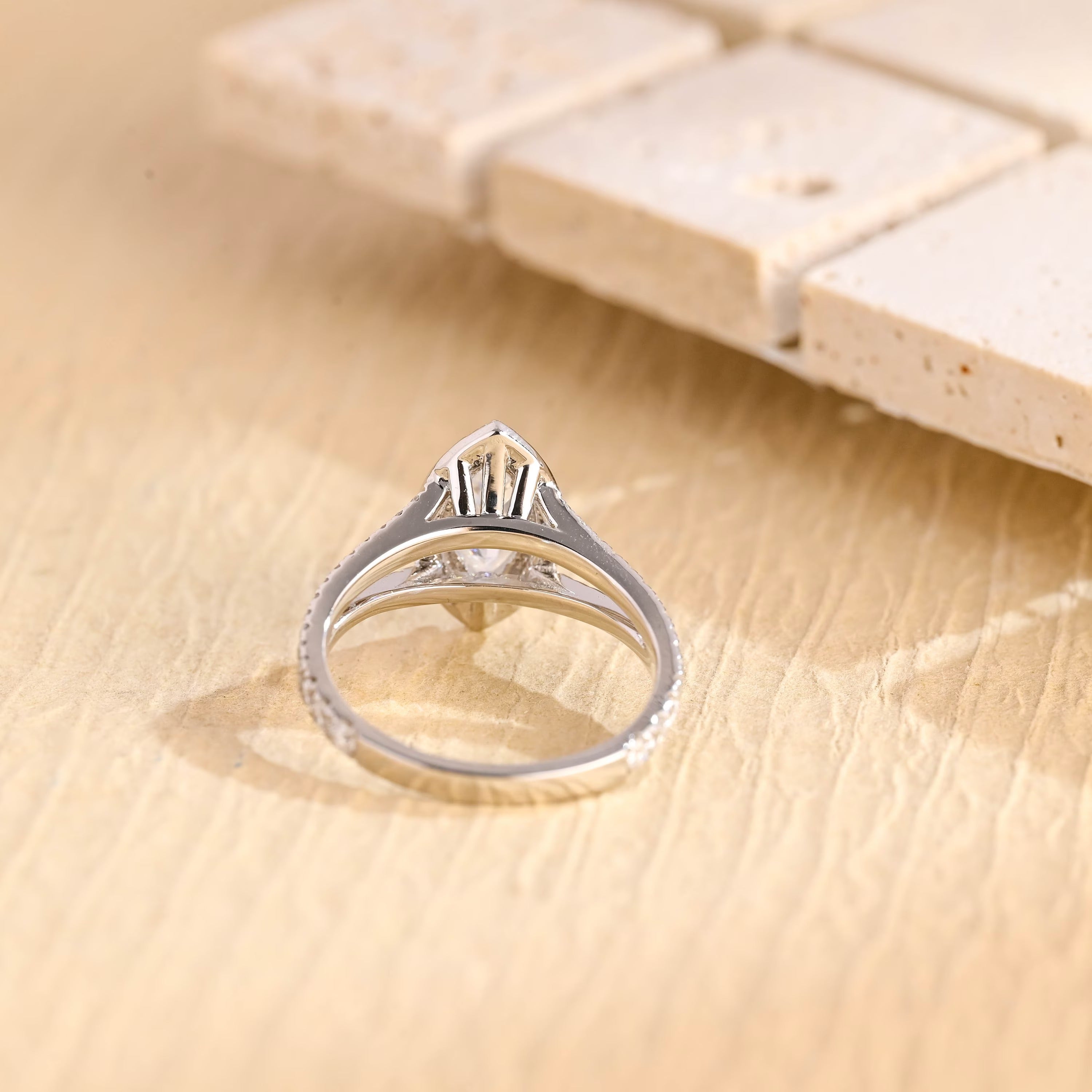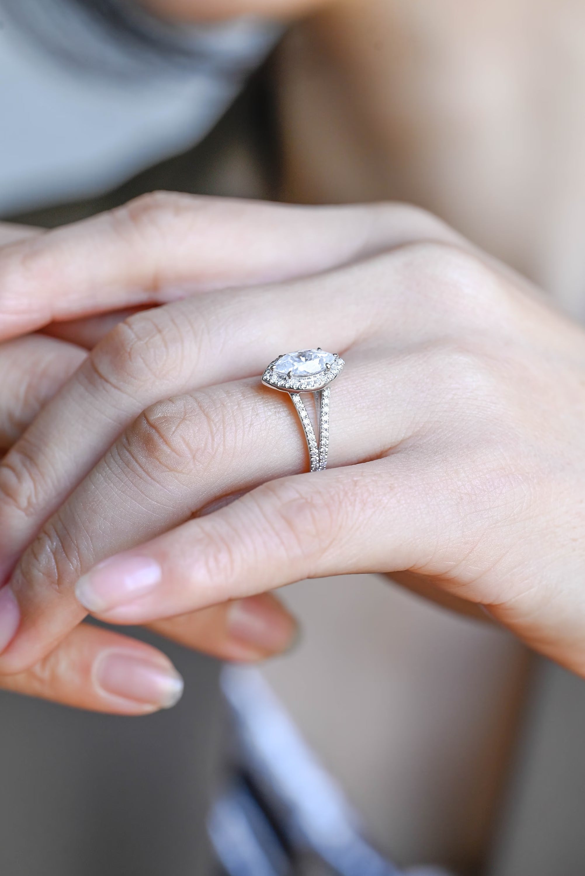 1.0CT Marquise Diamond Halo Moissanite Engagement Ring