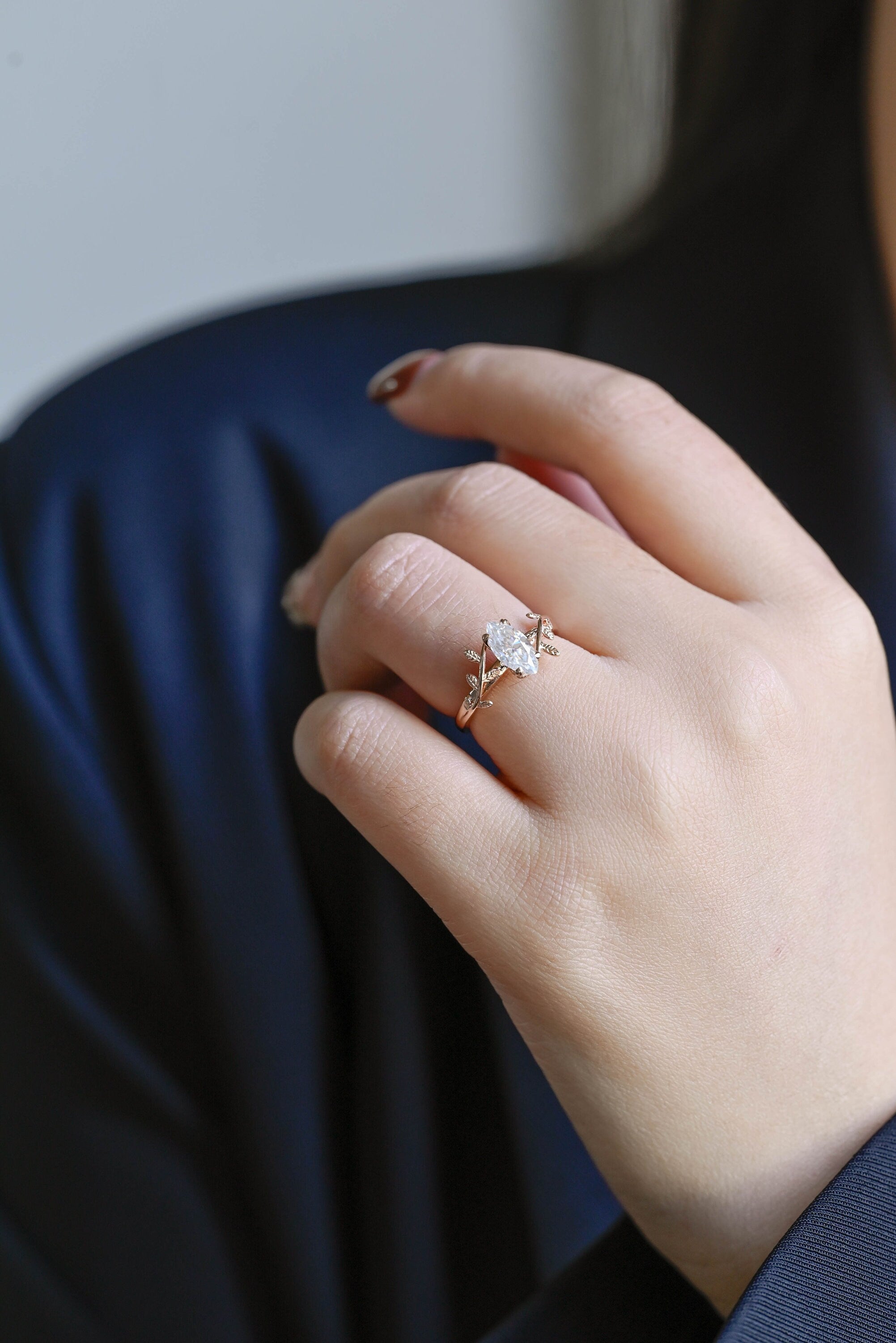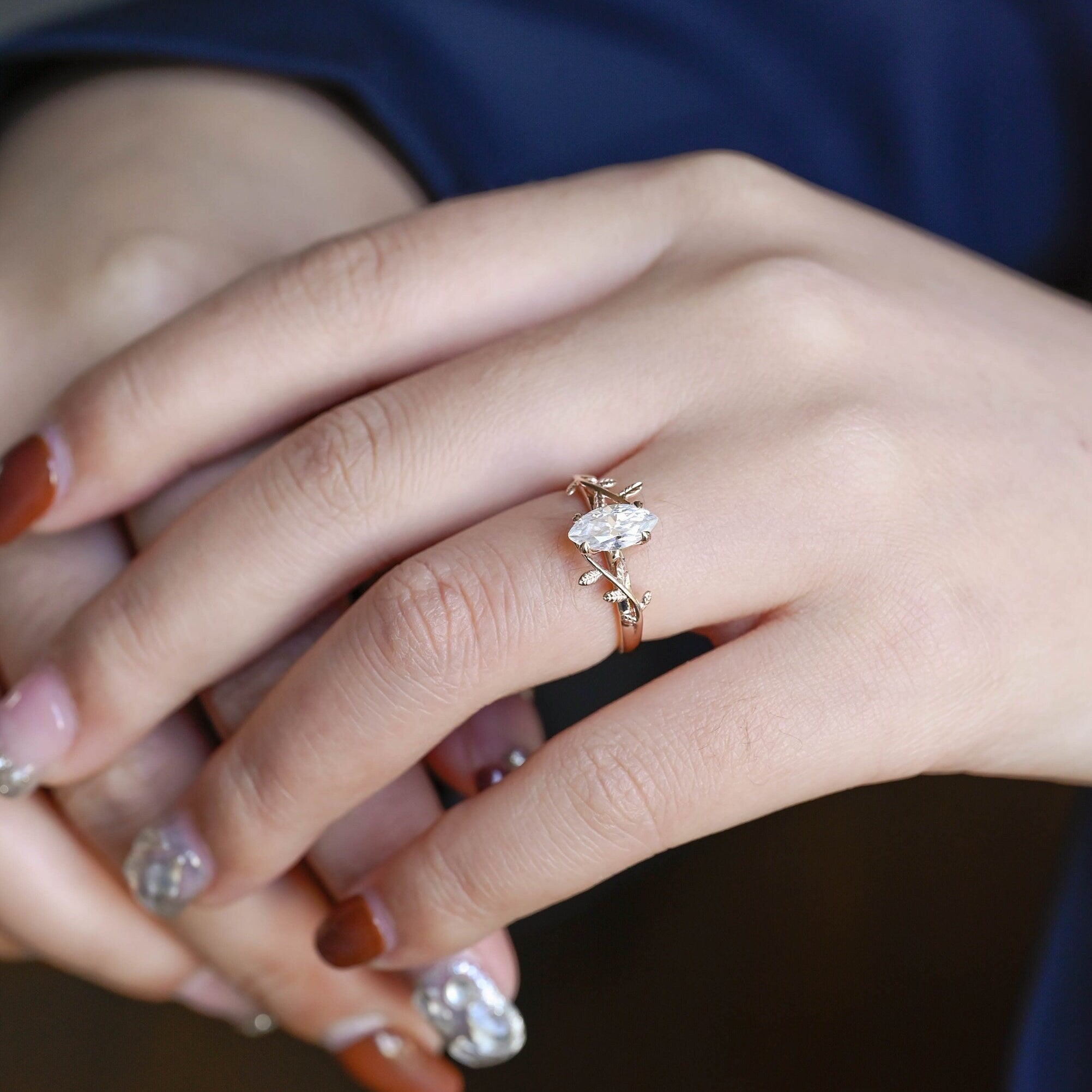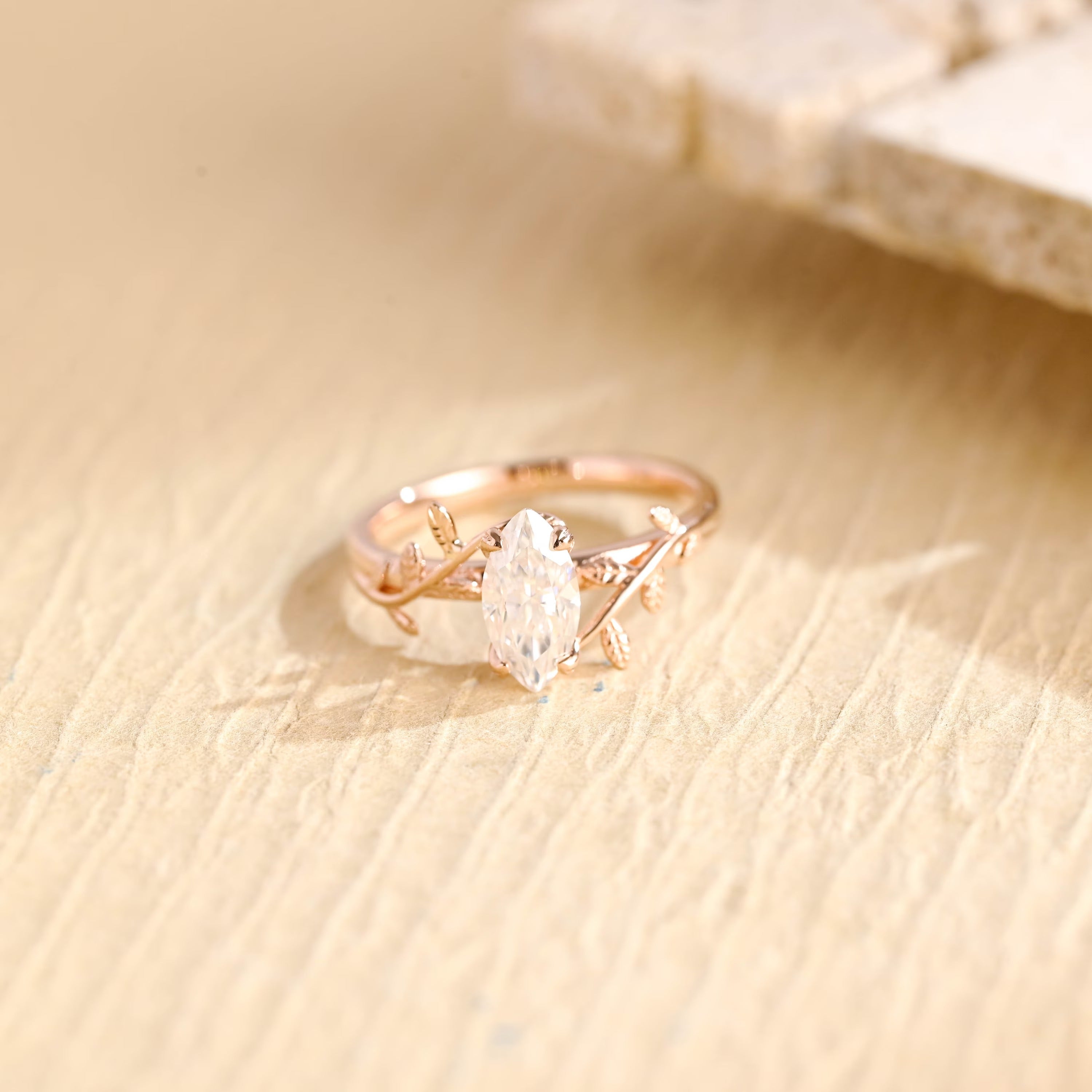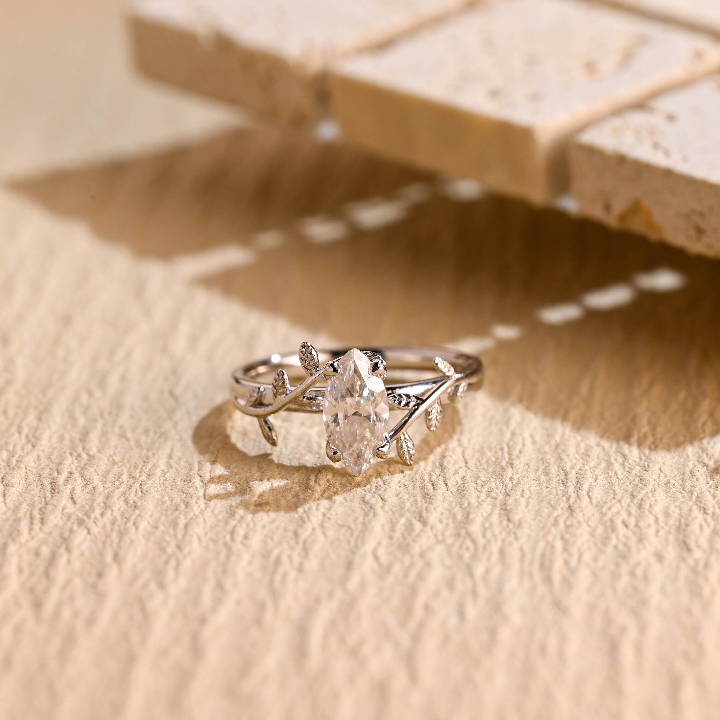 1.0CT Marquise Diamond Nature Inspired Moissanite Engagement Ring
