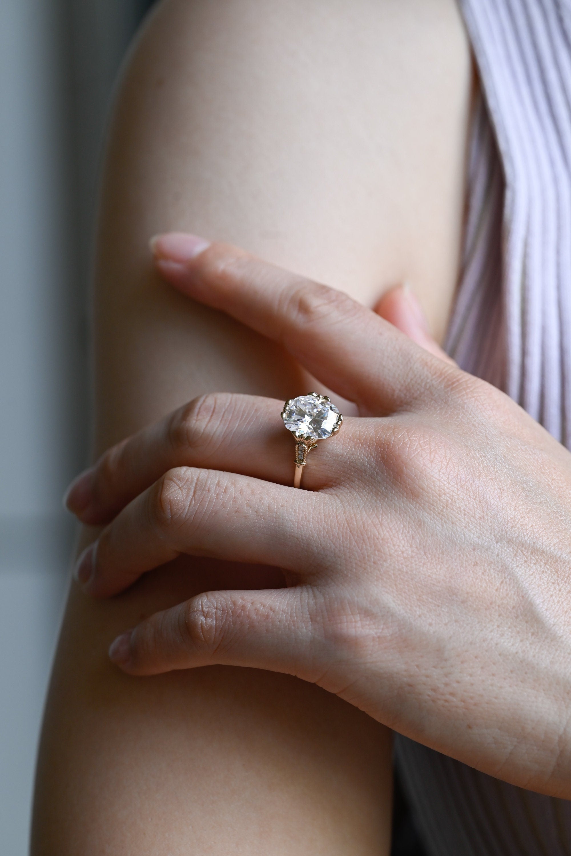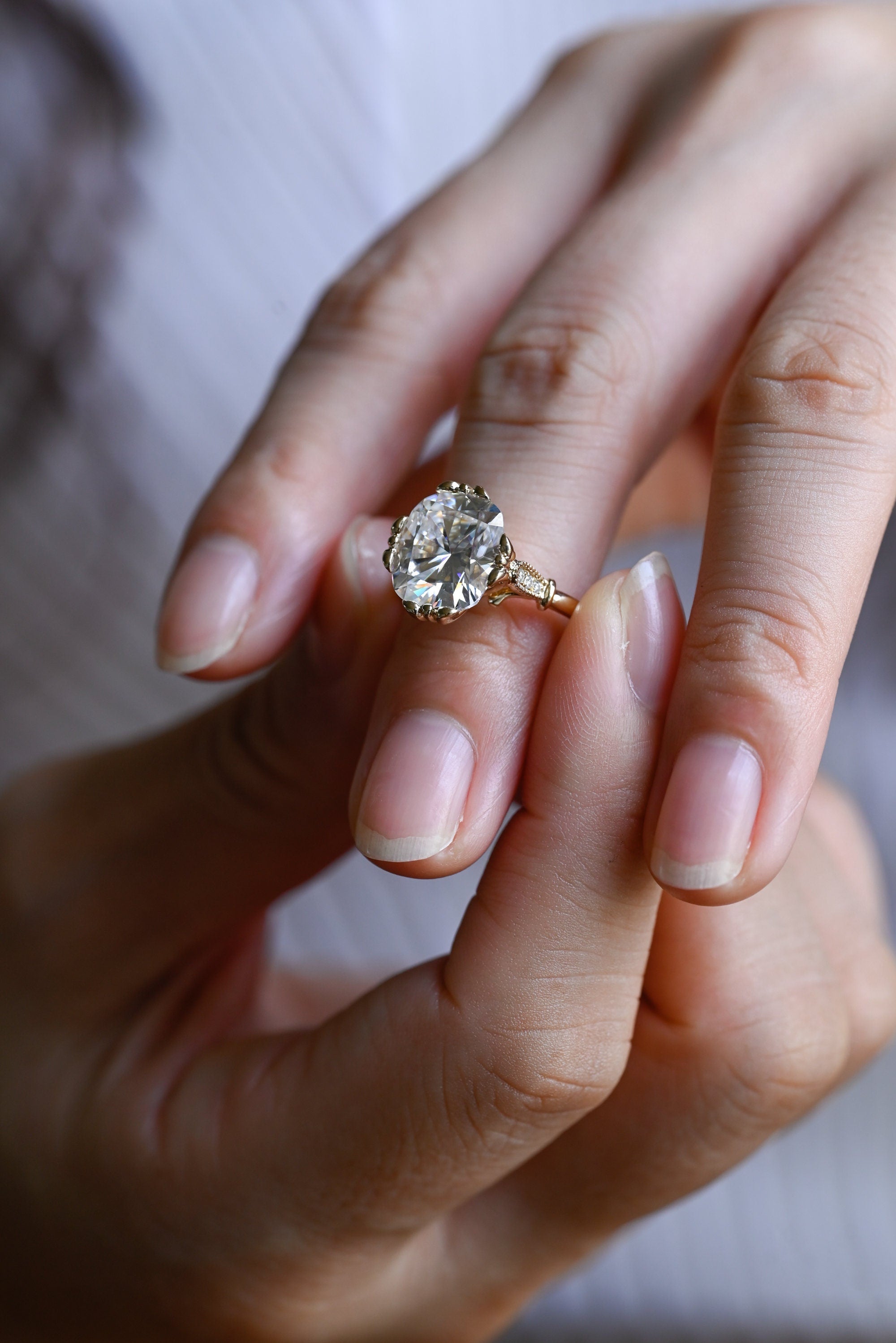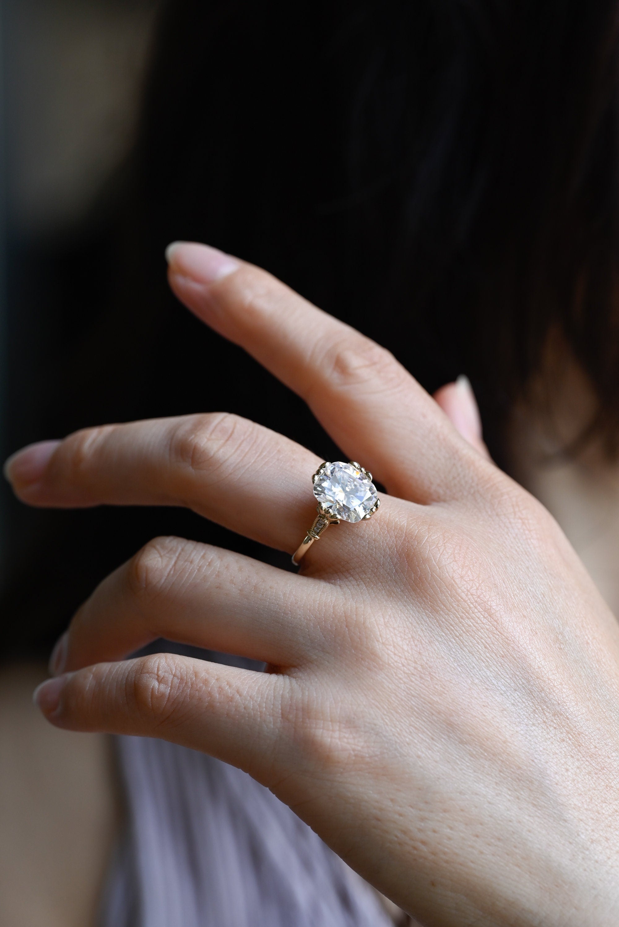 1.0CT Oval Cut Cluster Diamond Moissanite Engagement Ring