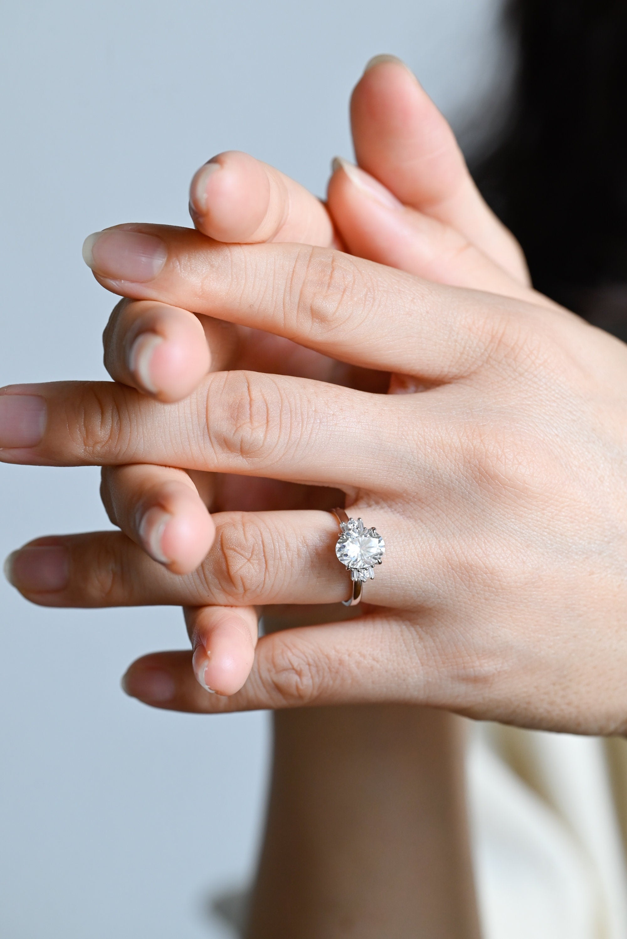 1.0CT Oval Cut Cluster Dimaond Moissanite Engagement Ring