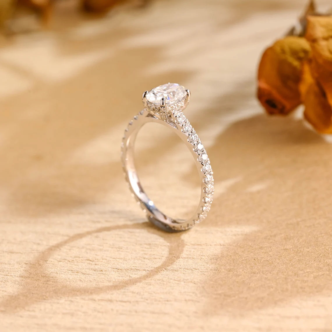 1.0CT Oval Diamond Hidden Halo Moissanite Engagement Ring