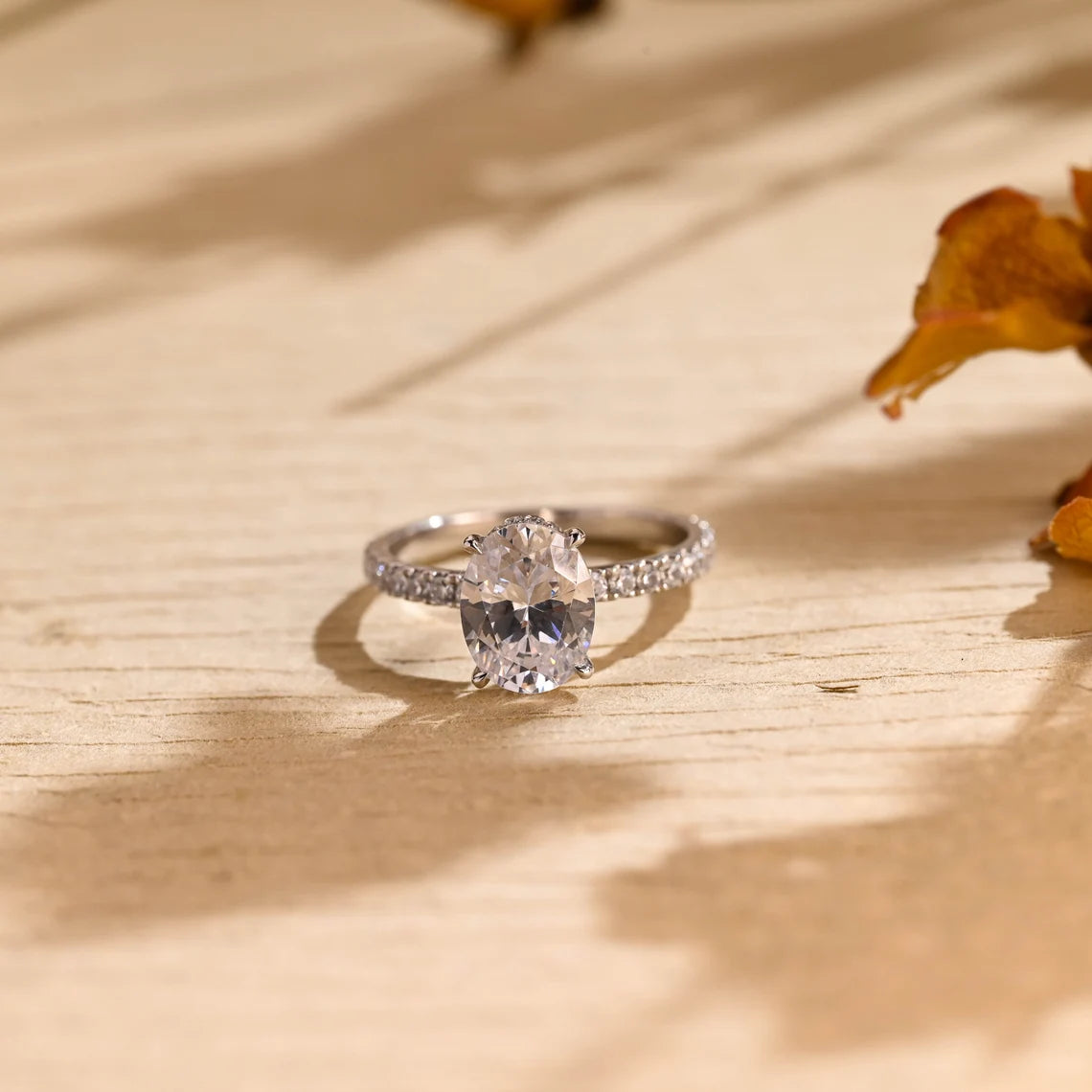1.0CT Oval Diamond Hidden Halo Pave Setting Moissanite Engagement Ring
