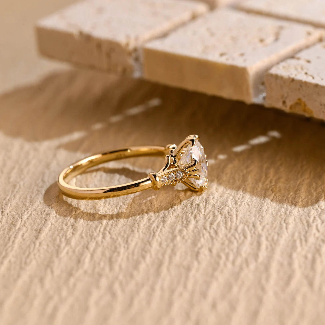 1.0CT Oval Diamond Milgrain Setting Moissanite Engagement Ring