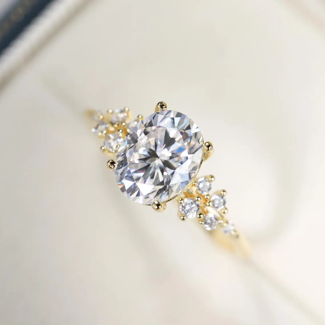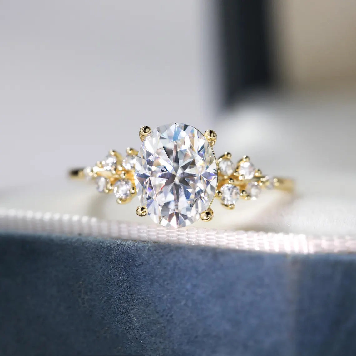 1.0CT Oval Diamond Moissanite Cluster Diamond Engagement Ring