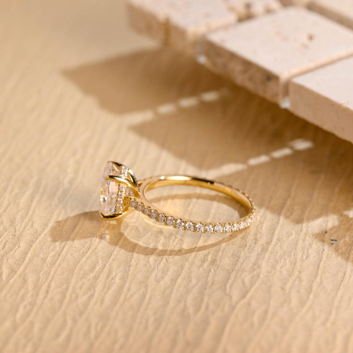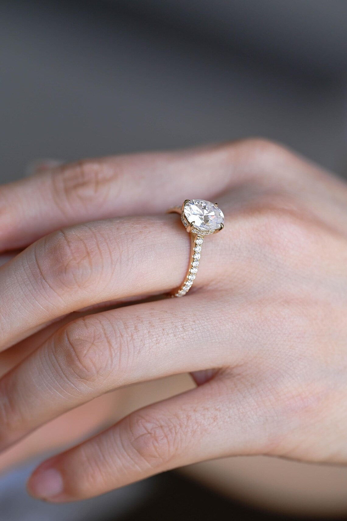 1.0CT Oval Diamond Pave Setting Moissanite Engagement Ring