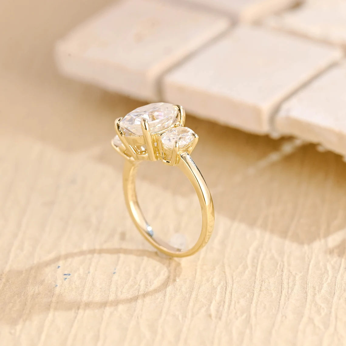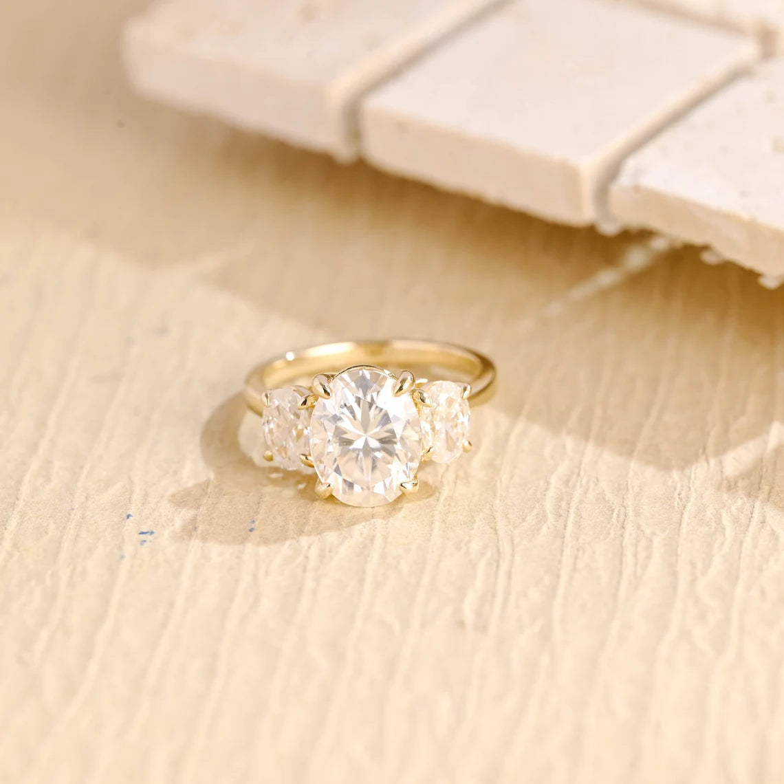 1.0CT Oval Diamond Three Stone Moissanite Engagement Ring