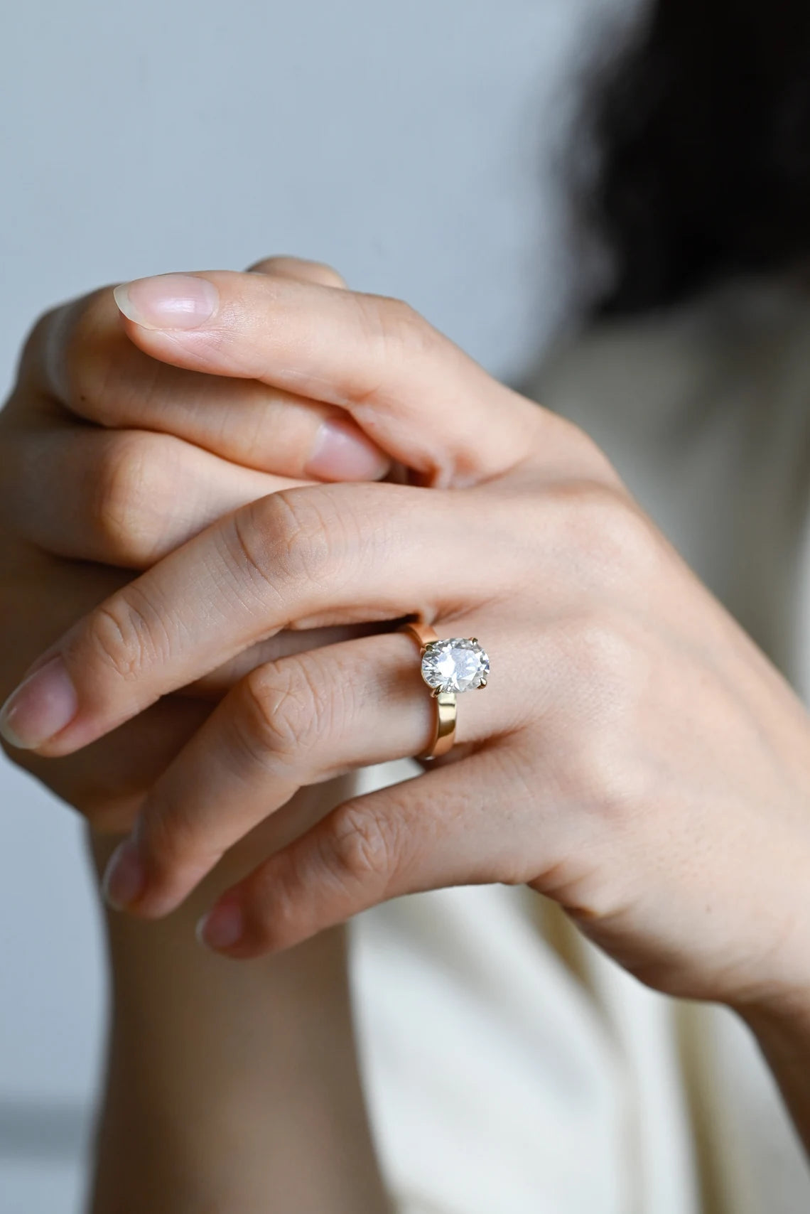 1.0CT Oval Diamond Wide Solitaire Moissanite Engagement Ring