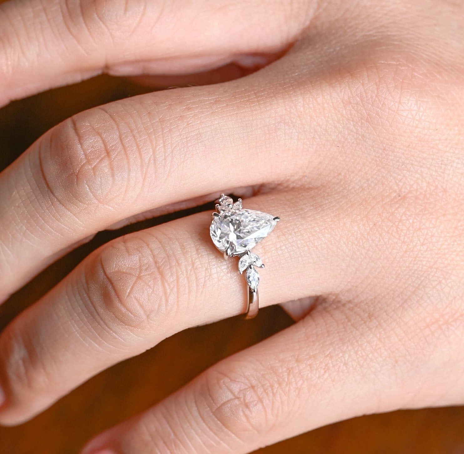 1.0CT Pear Cut Cluster Diamond Moissanite Engagement Ring
