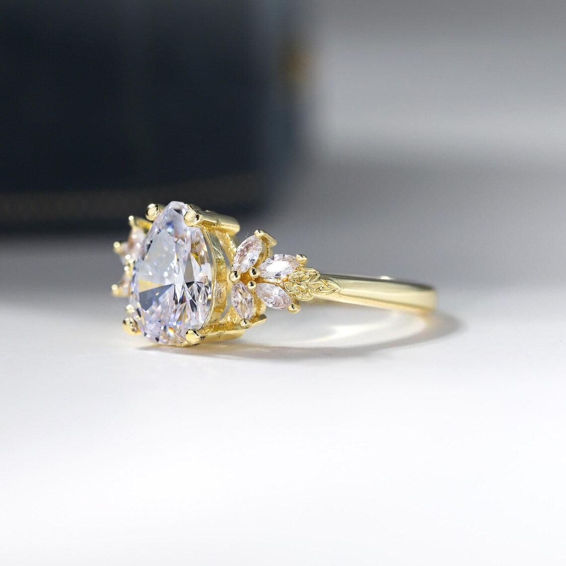 1.0CT Pear Cut Cluster Diamond Moissanite Engagement Ring