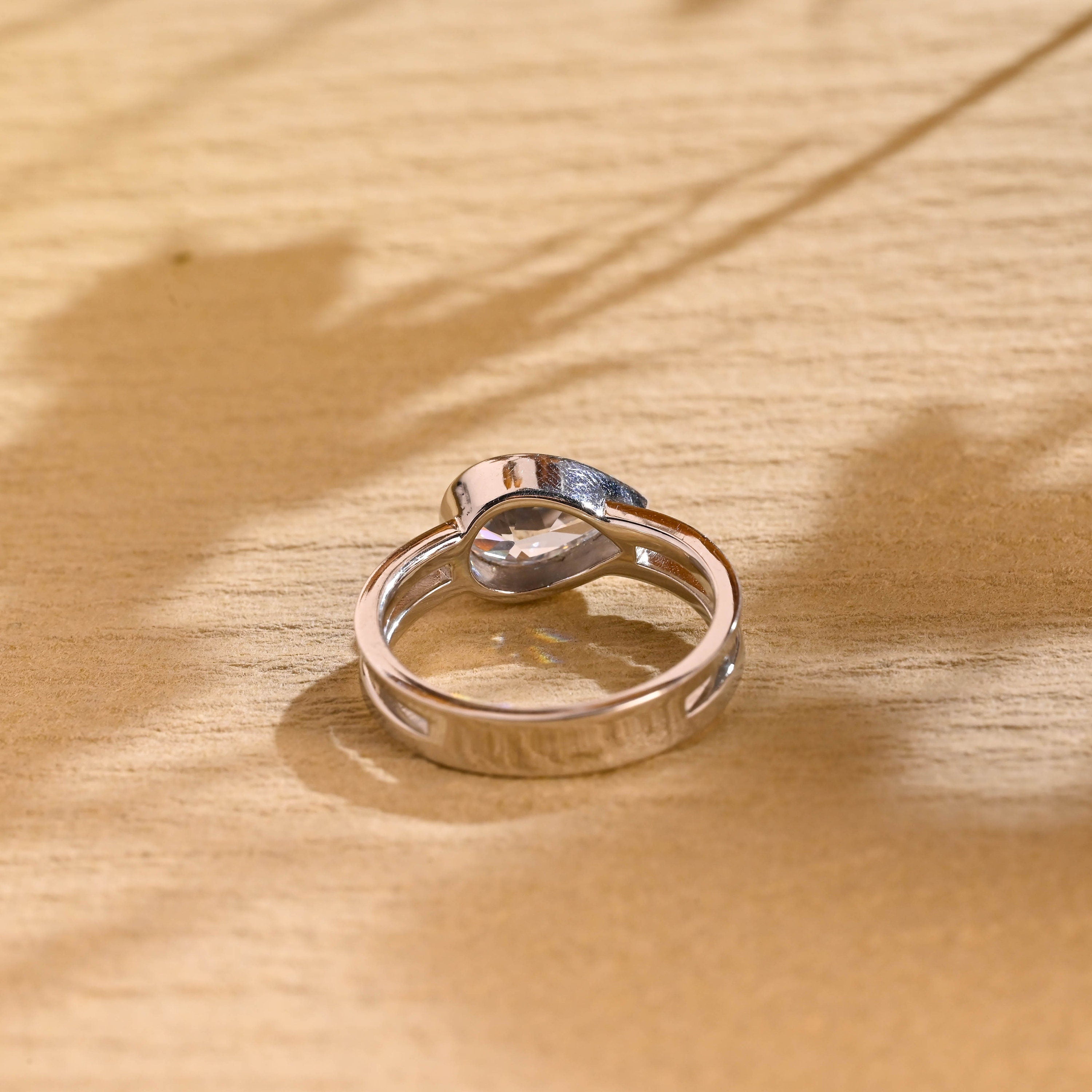 1.0CT Pear Cut East West Bezel Solitaire Moissanite Engagement Ring