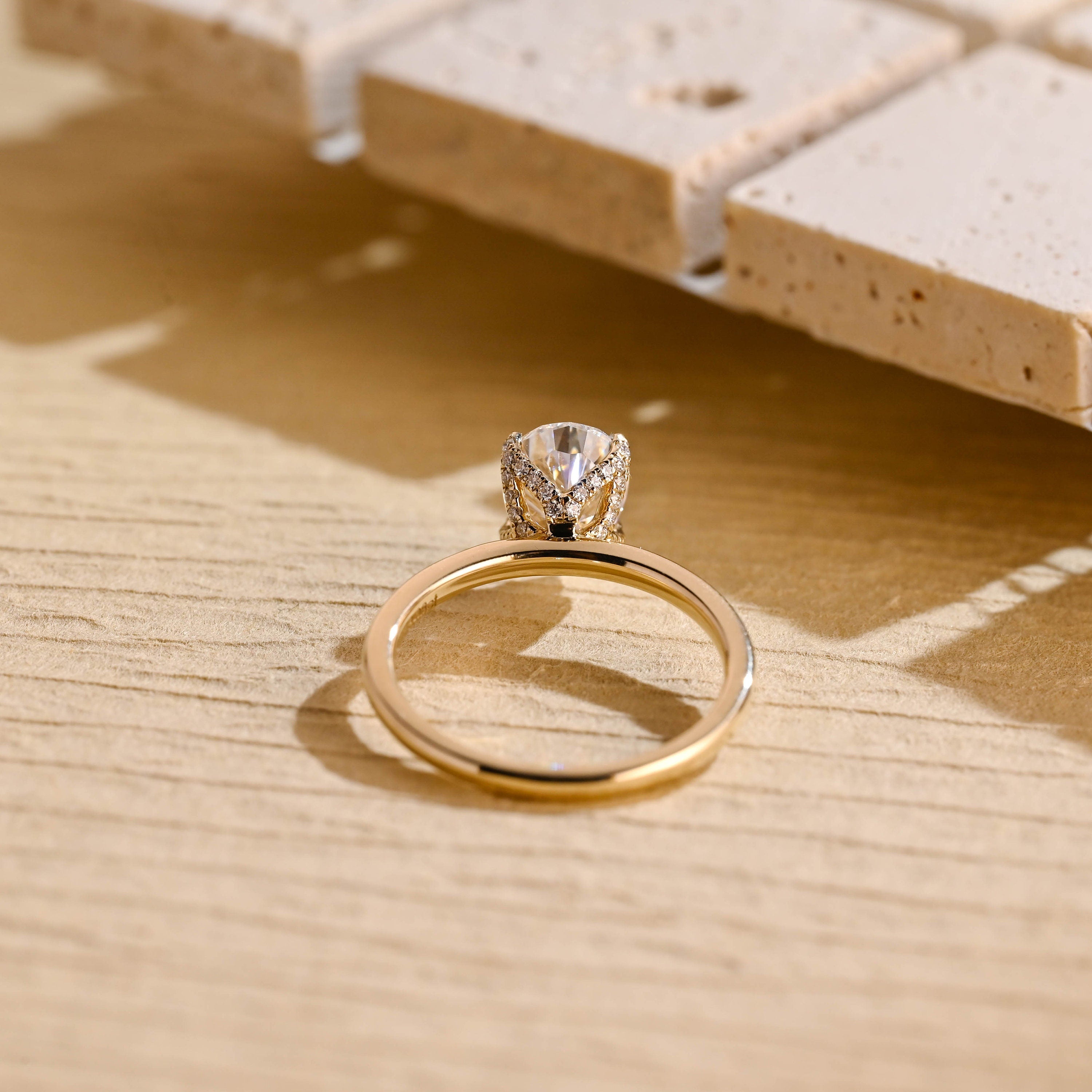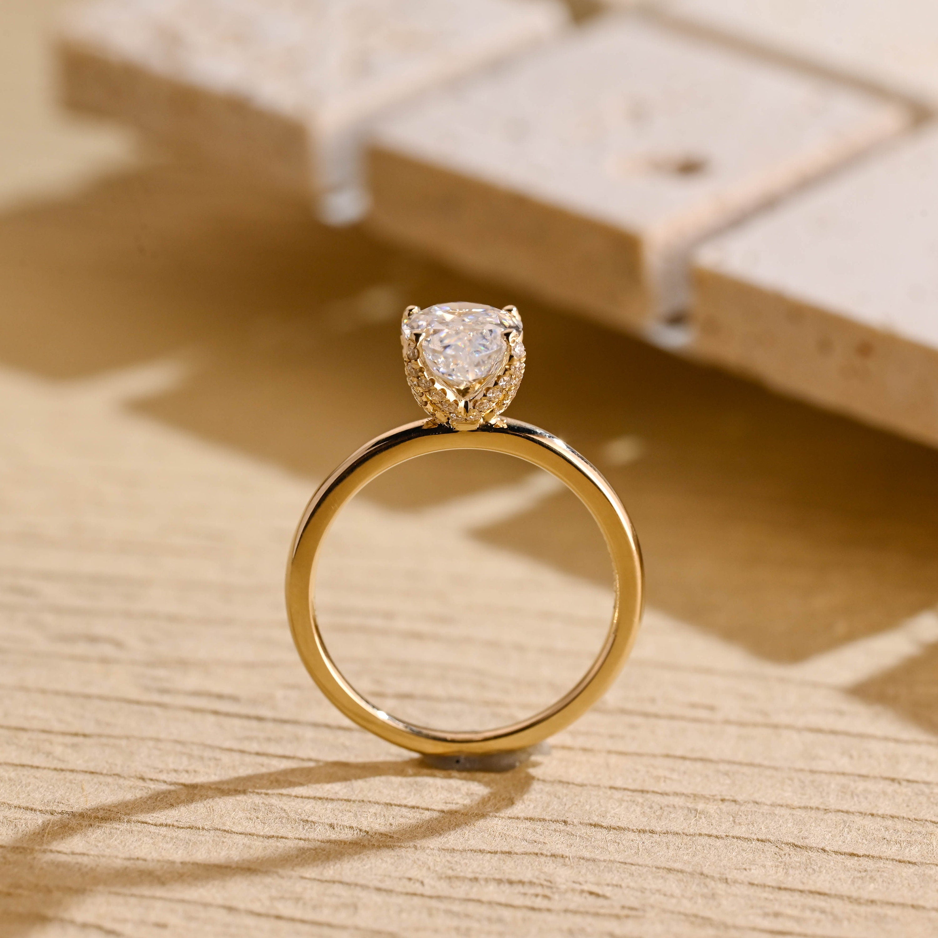 1.0CT Pear Cut Hidden Diamond Moissanite Engagement Ring