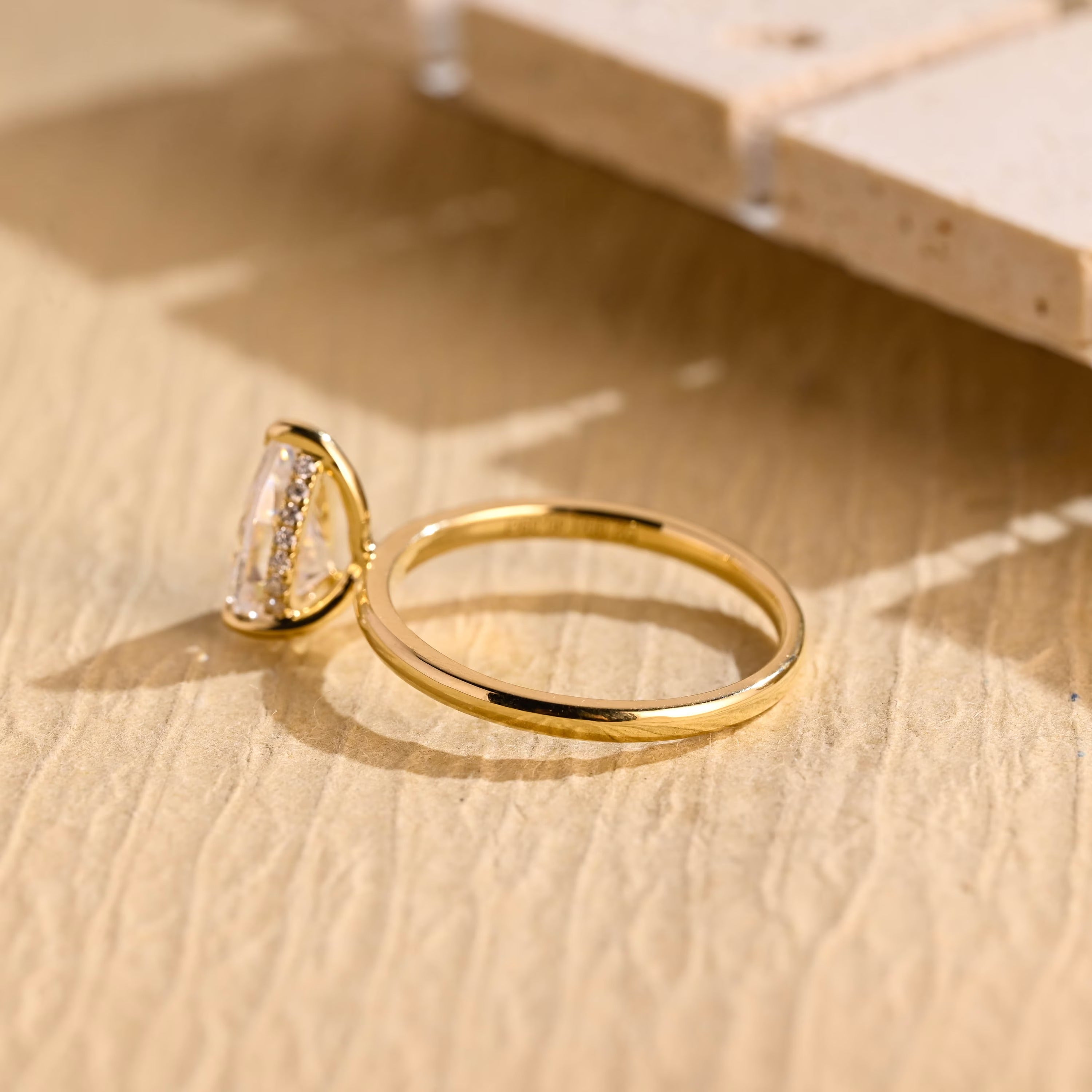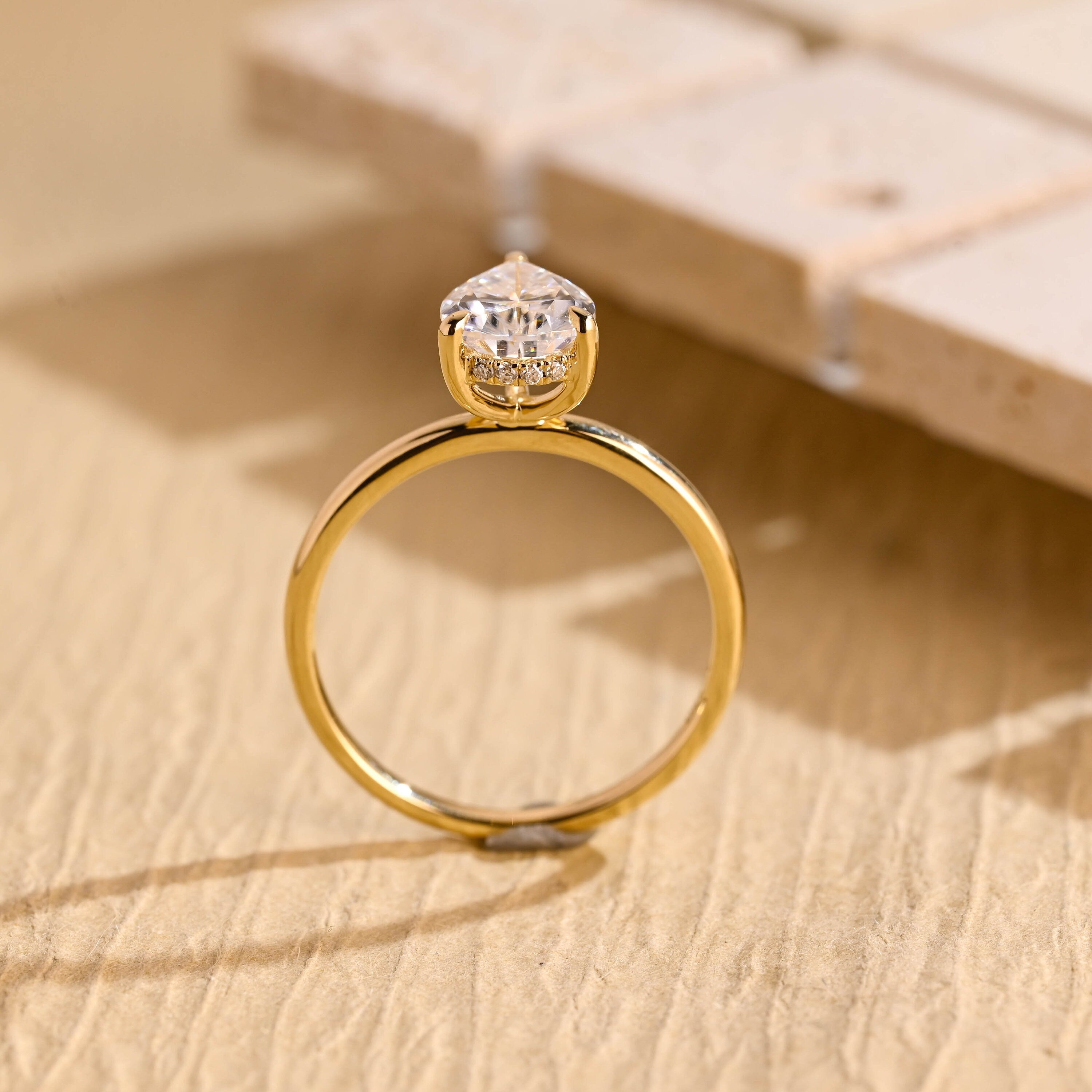 1.0CT Pear Cut Hidden Halo Diamond Moissanite Engagement Ring