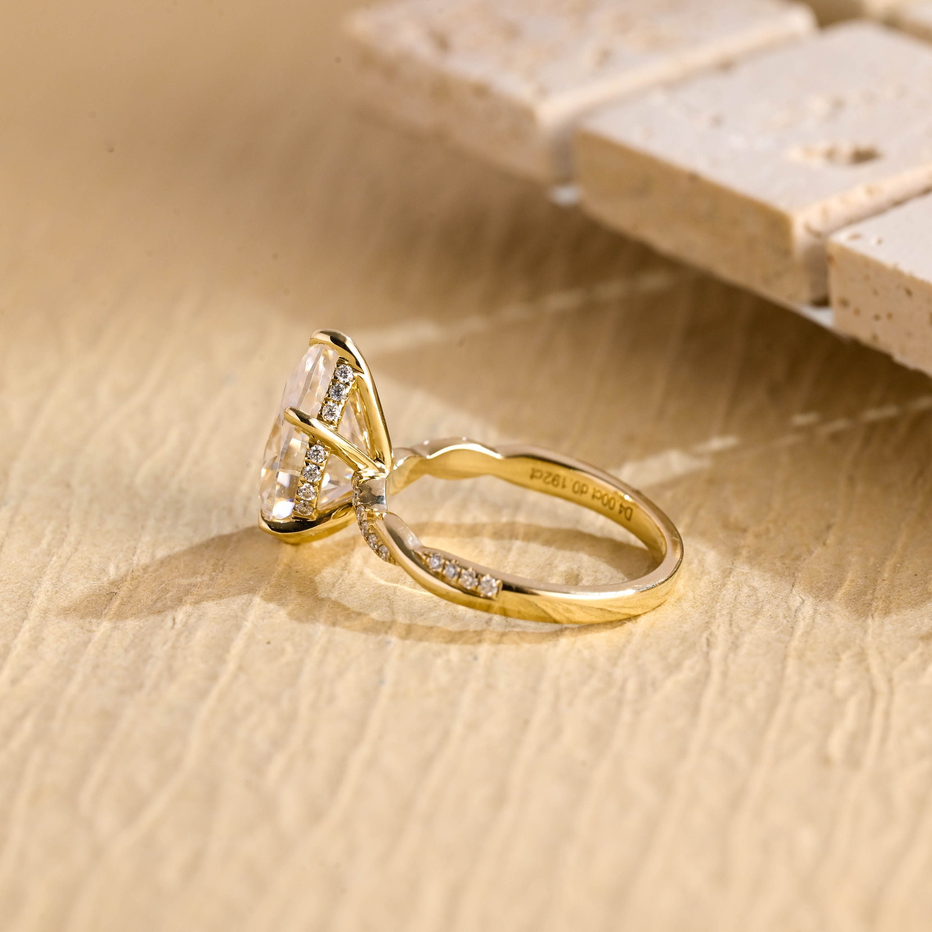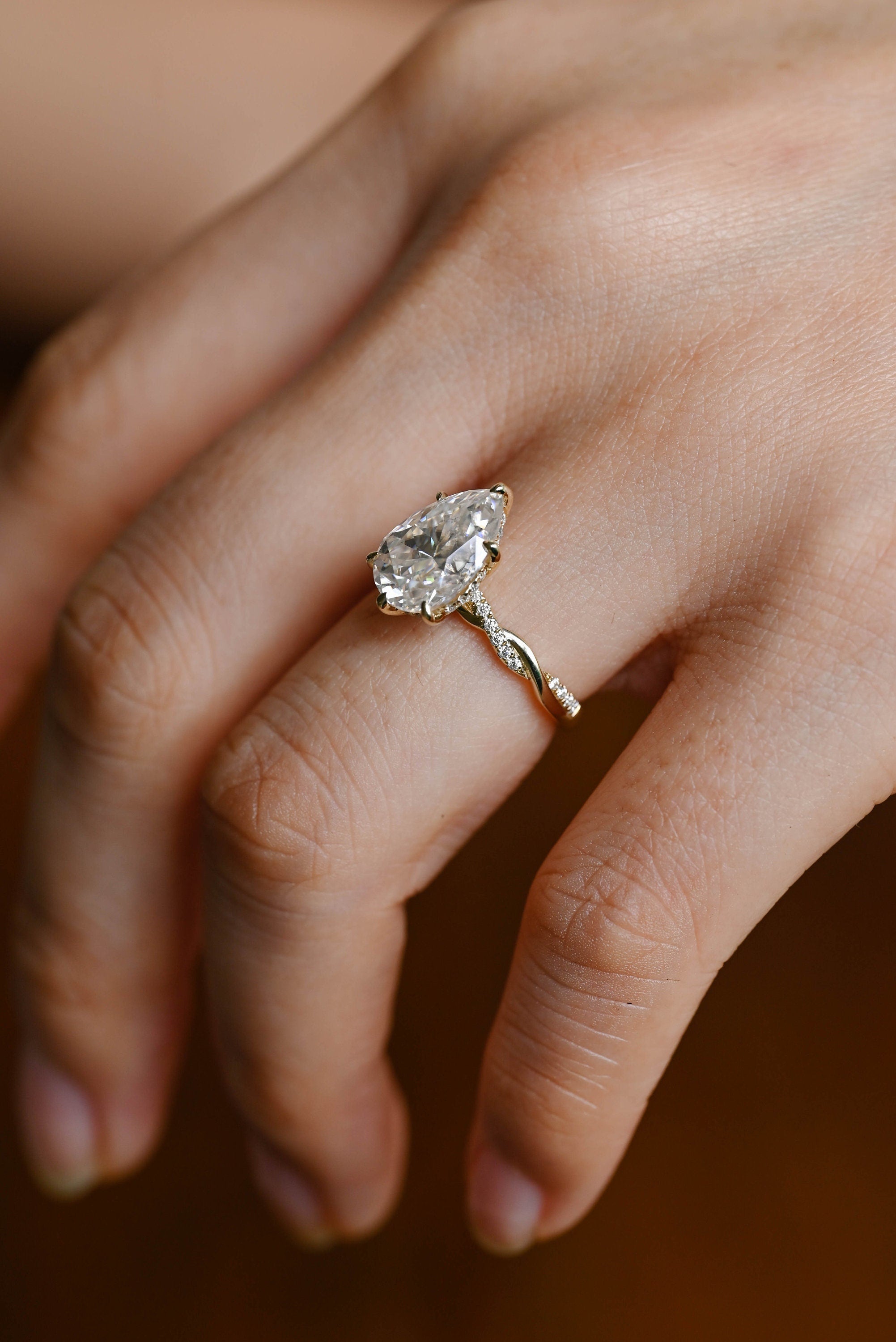 1.0CT Pear Cut Hidden Halo Twisted Moissanite Engagement Ring