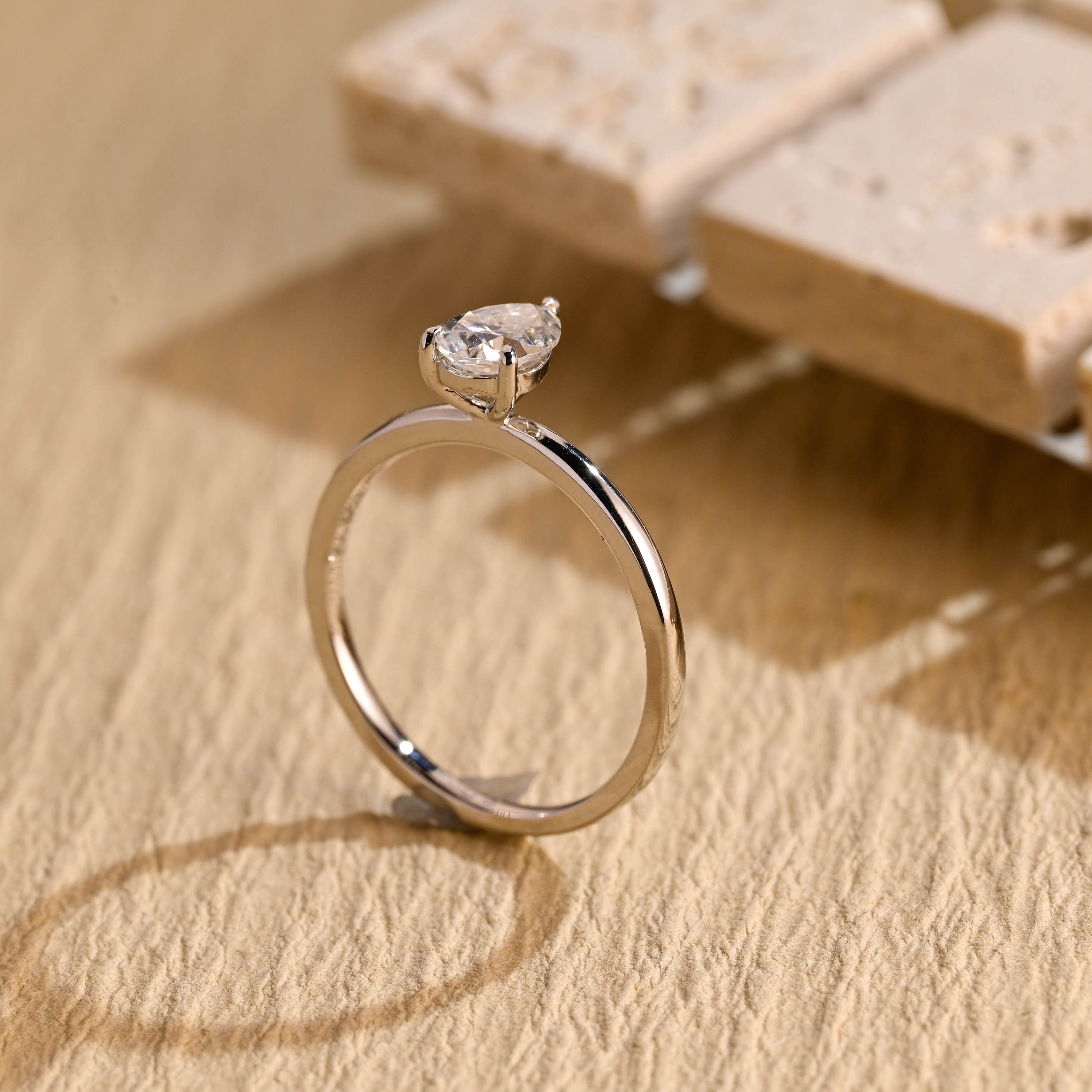 1.0CT Pear Cut Solitaire Diamond Moissanite Engagement Ring