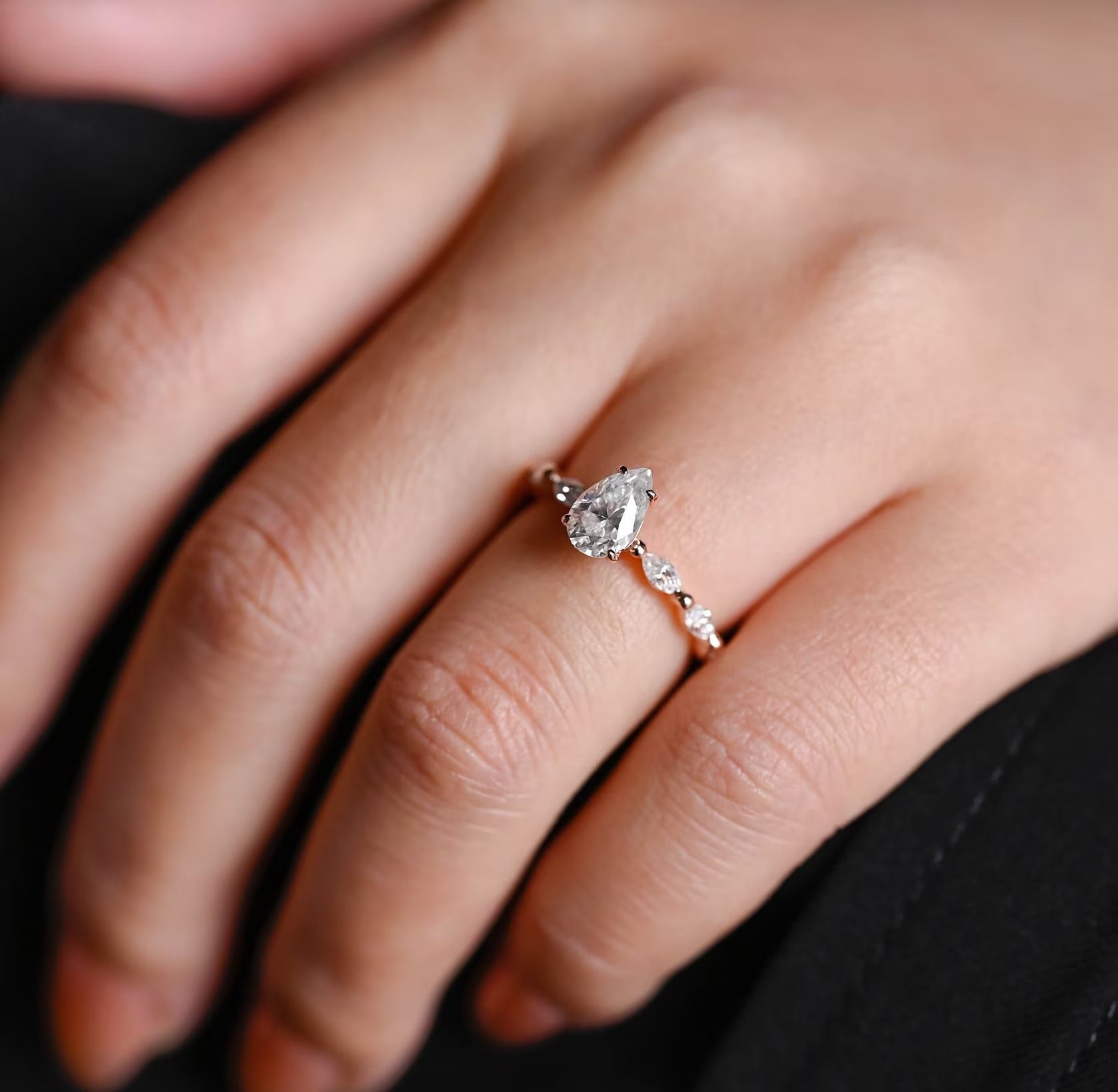 1.0CT Pear Diamond Pave Setting Moissanite Engagement Ring