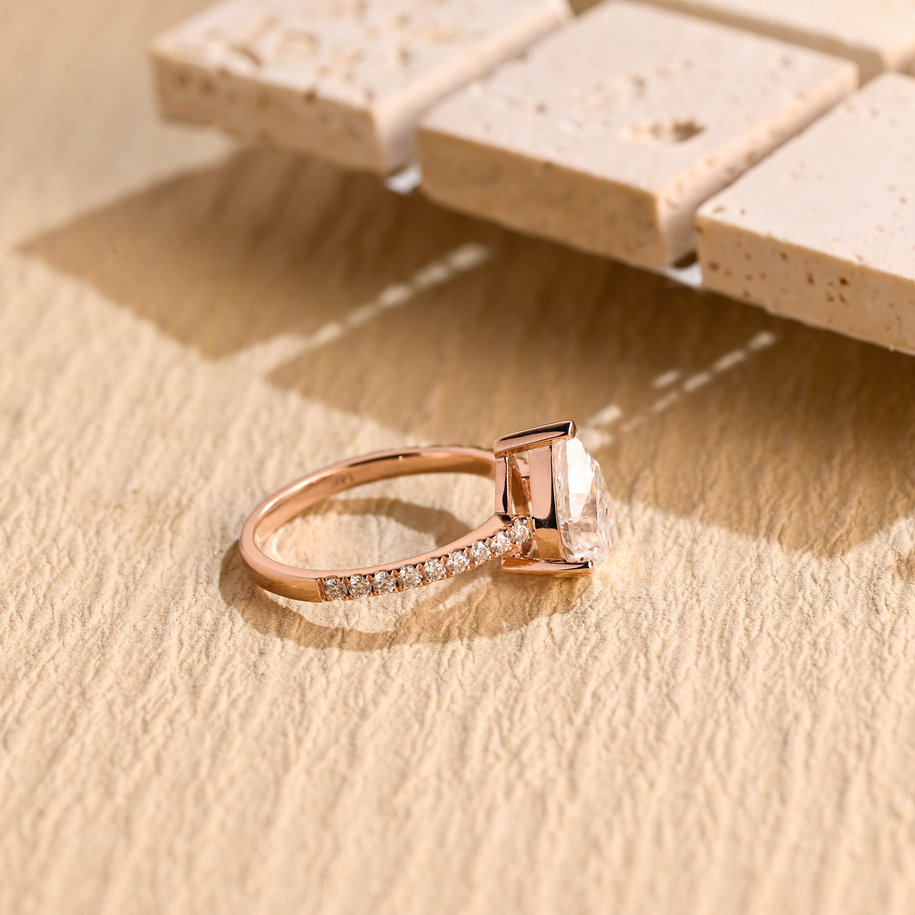 1.0CT Pear Diamond Pave Setting Moissanite Engagement Ring