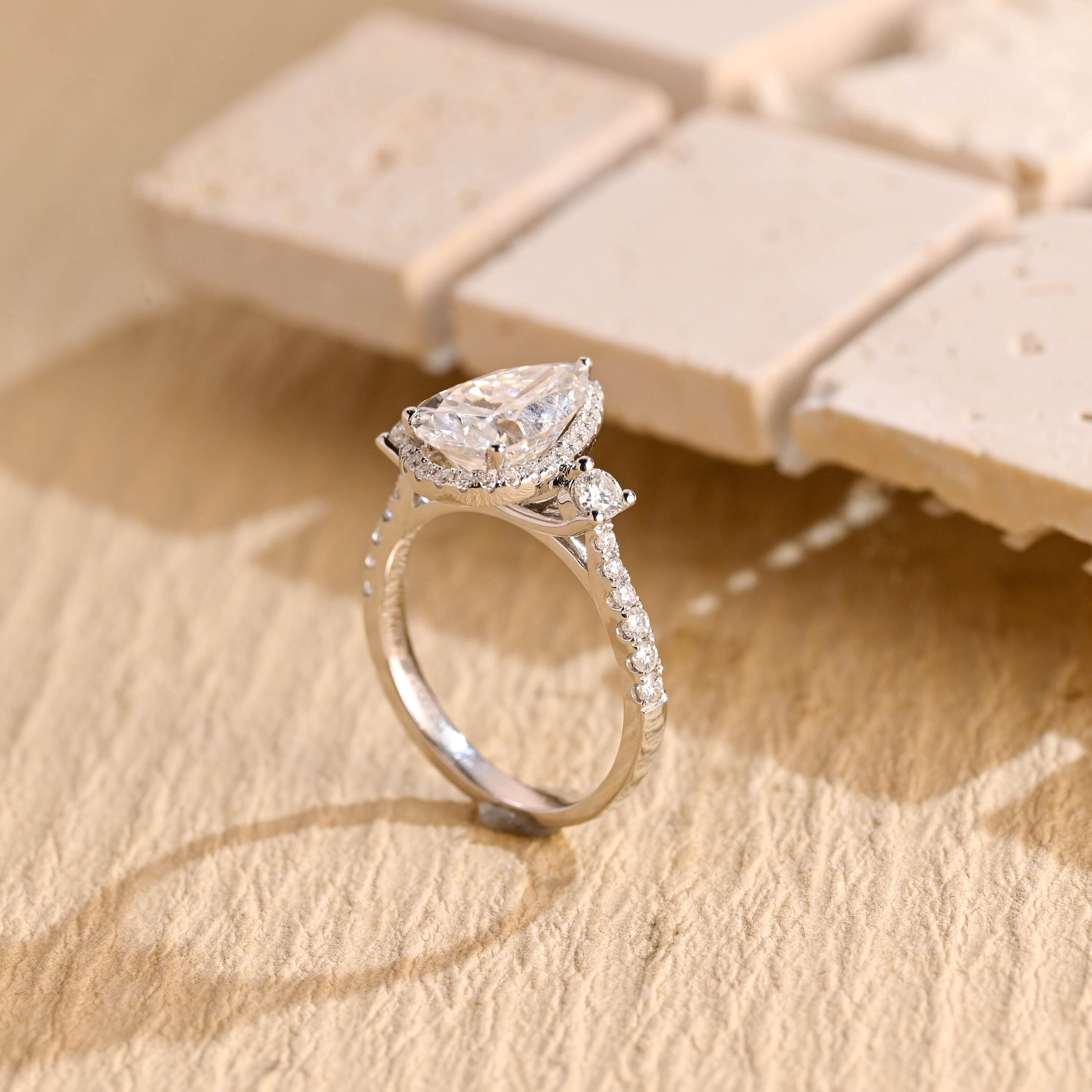1.0CT Pear Diamond Three Stone Moissanite Engagement Ring