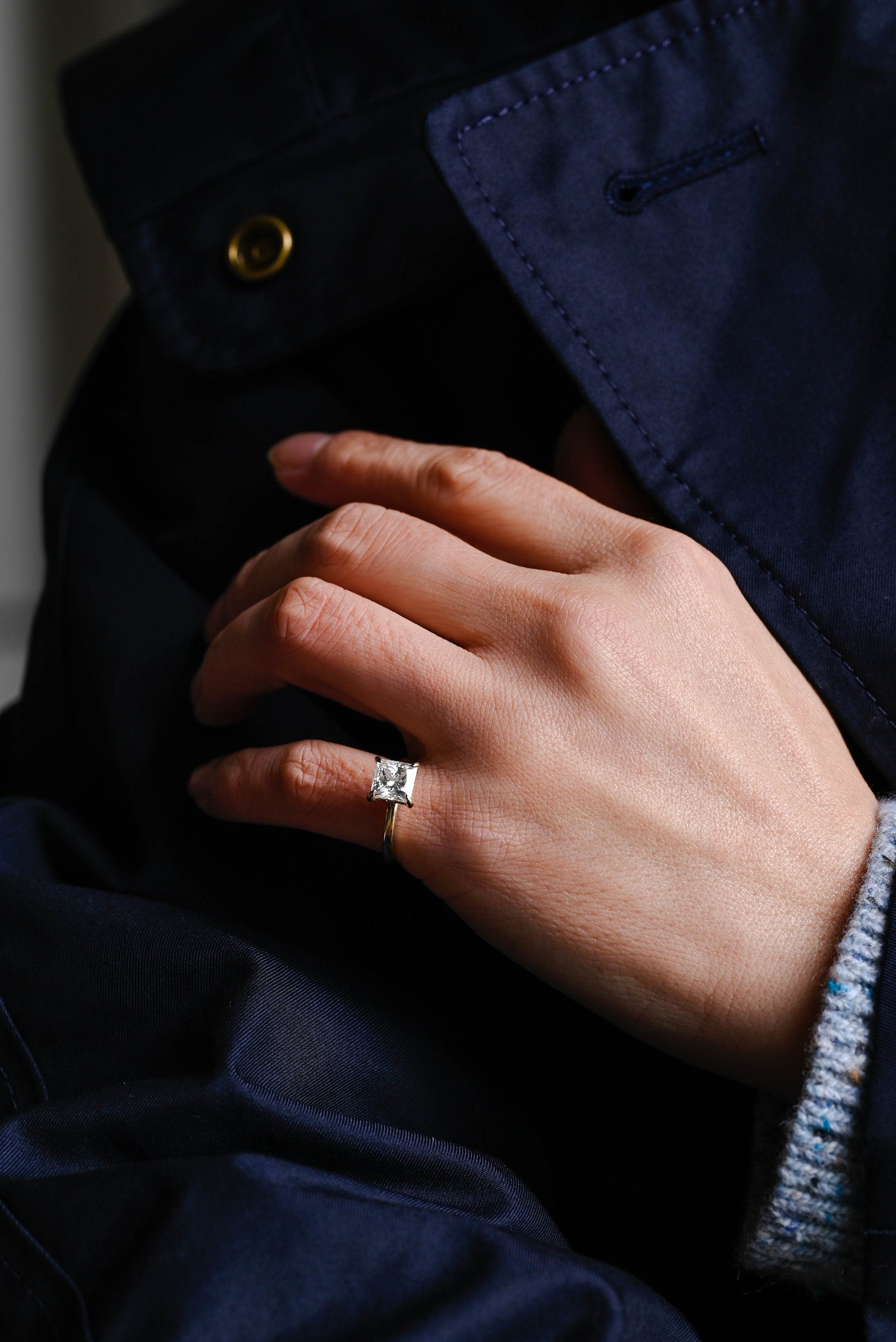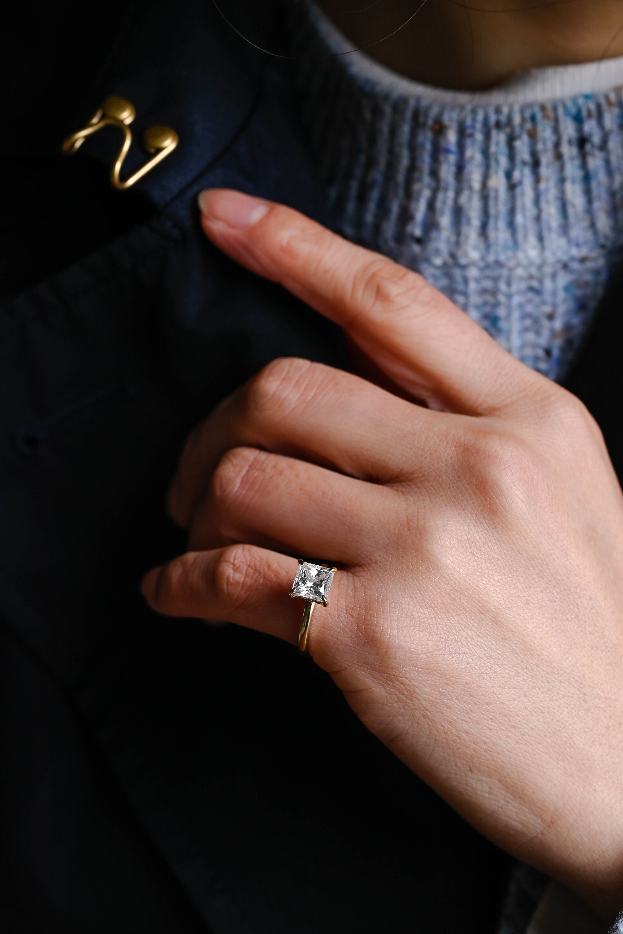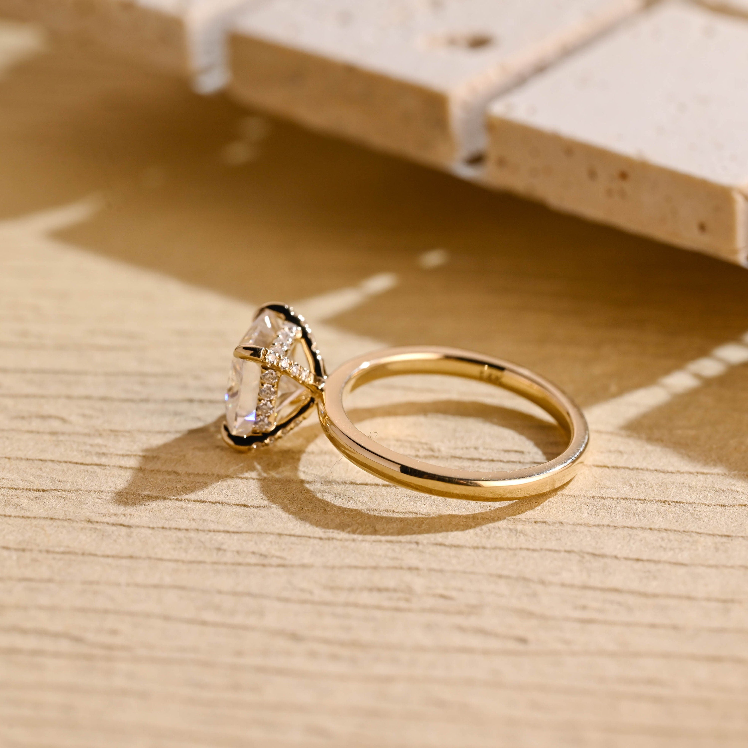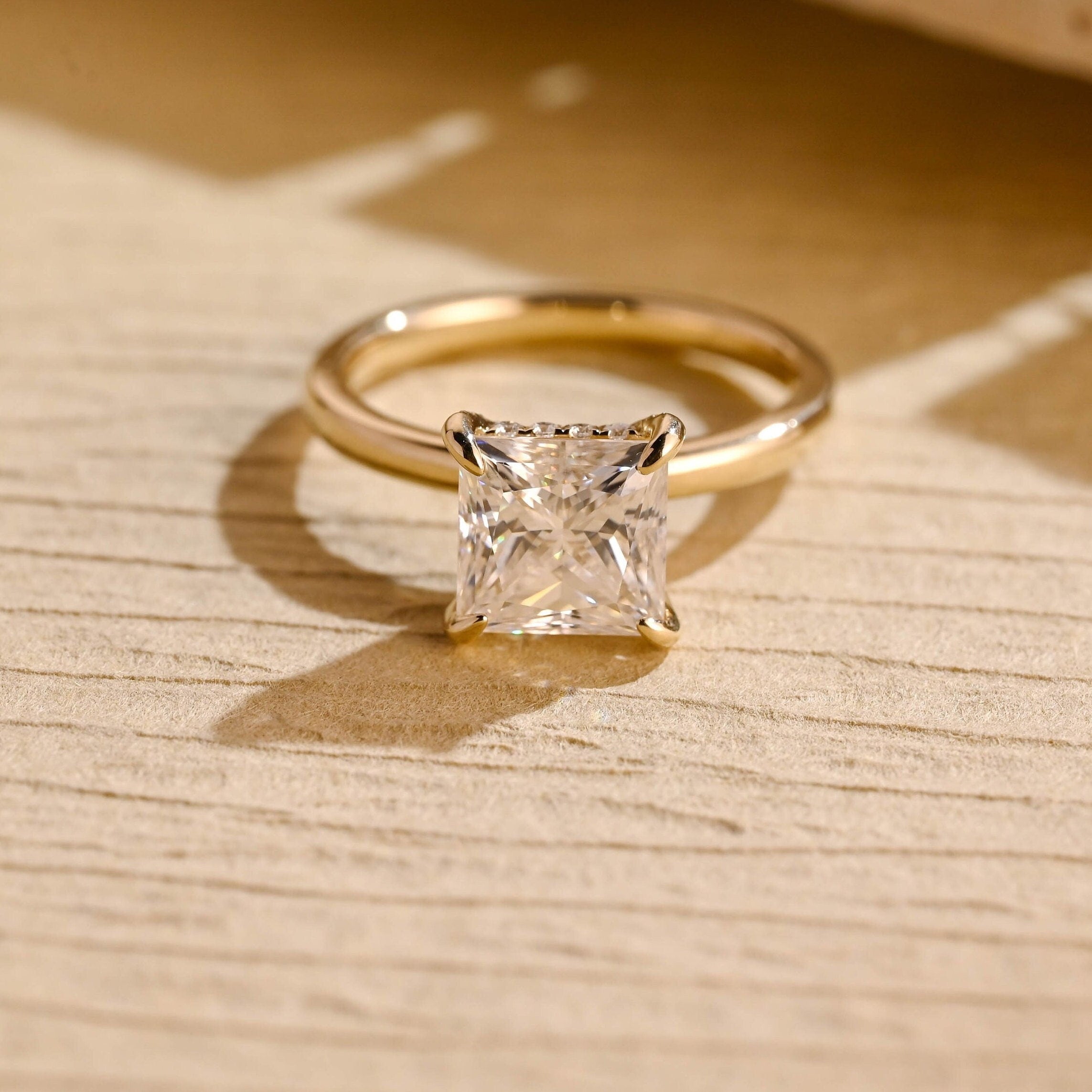 1.0CT Princess Cut Hidden Halo Moissanite Engagement Ring