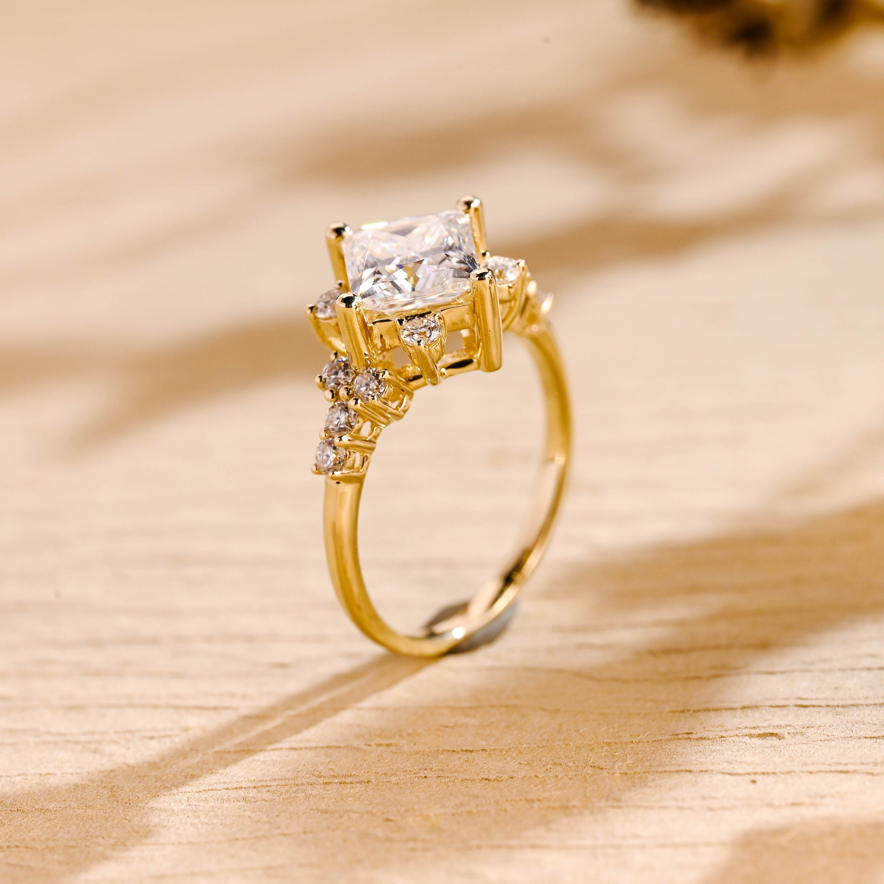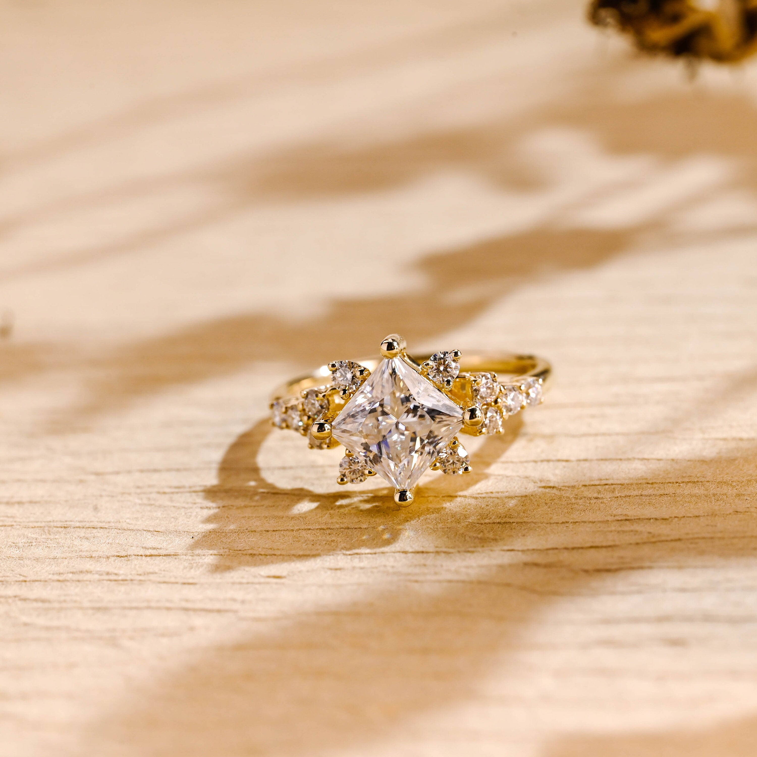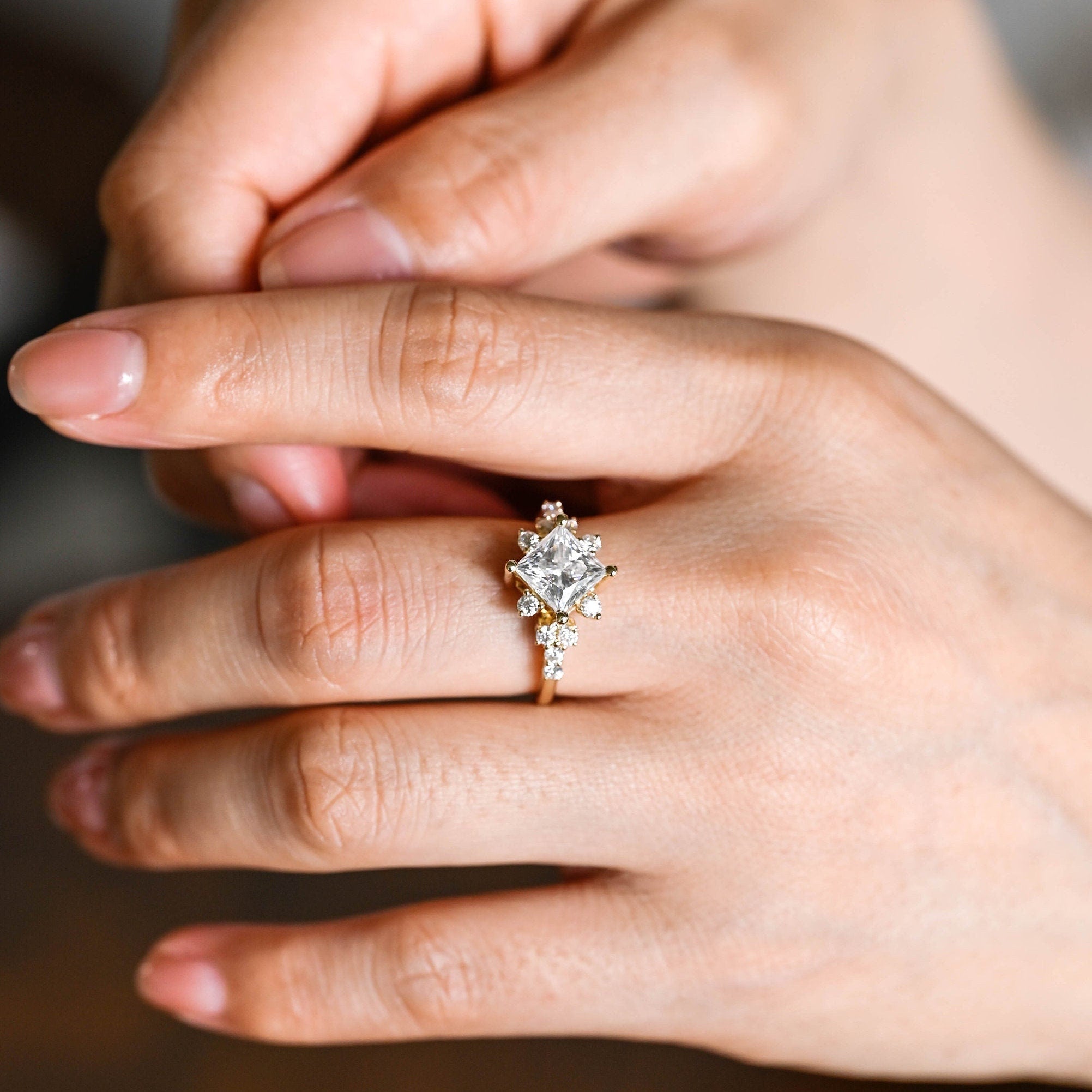 1.0CT Princess Diamond Cluster Moissanite Engagement Ring
