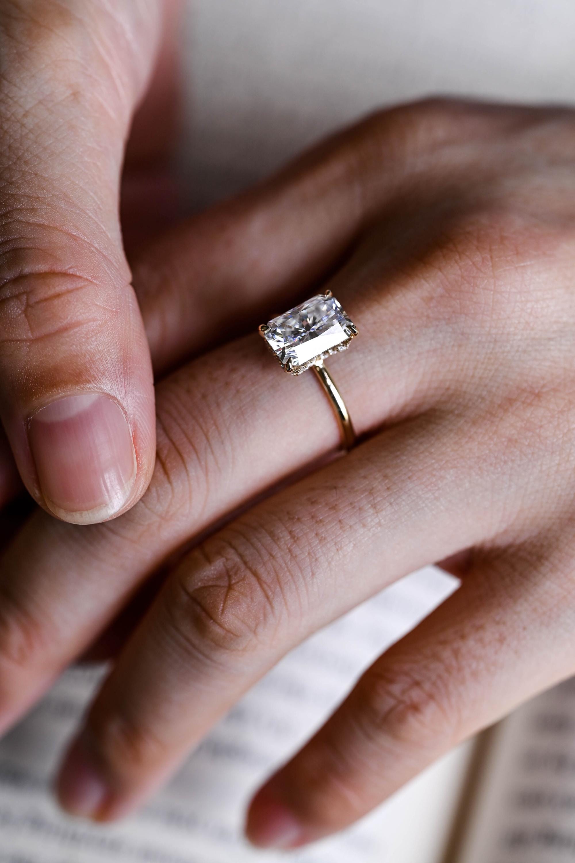 1.0CT Radiant Cut Hidden Halo Diamond Moissanite Engagement Ring