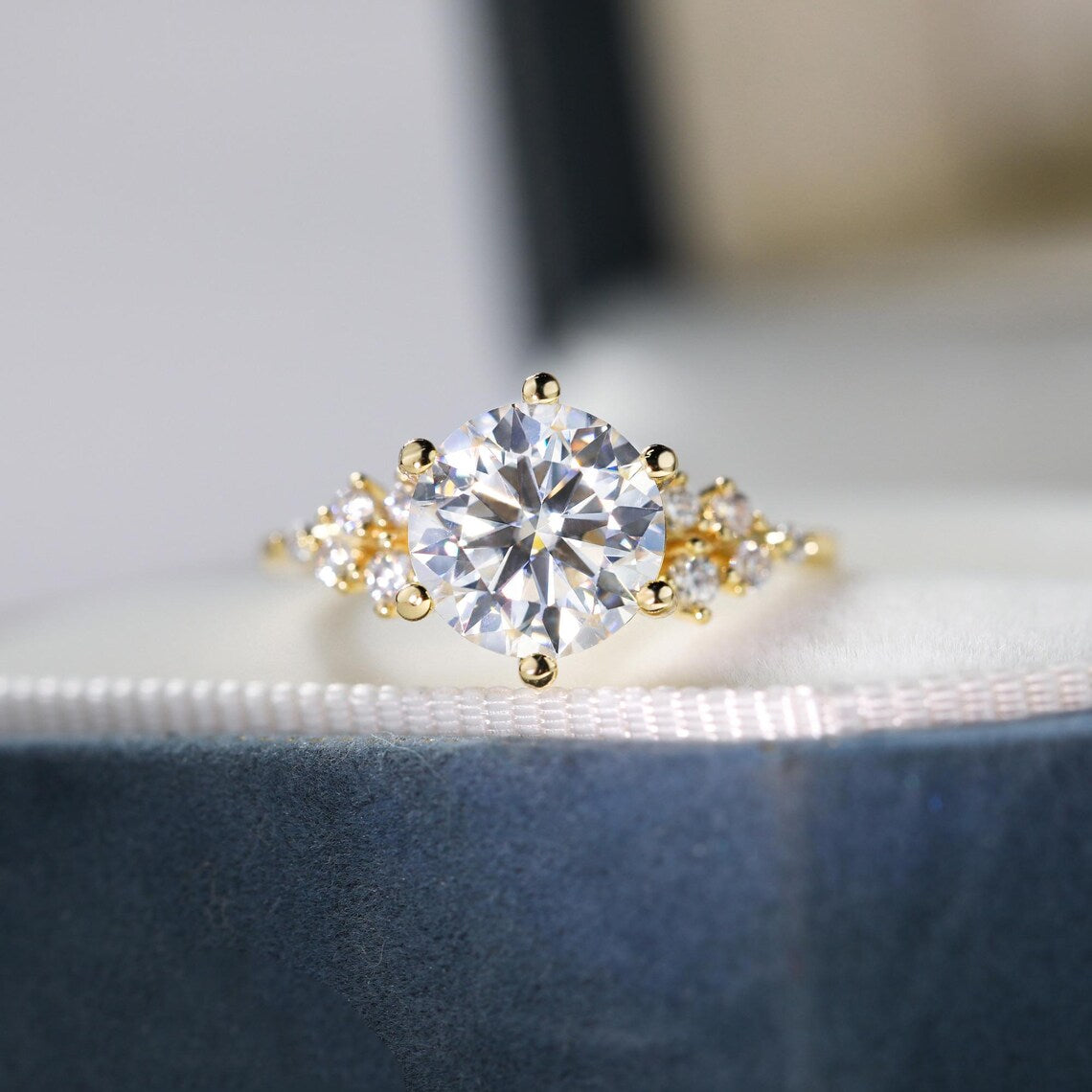 1.0CT Round Brilliant Cut Moissanite Cluster Diamond Engagement Ring