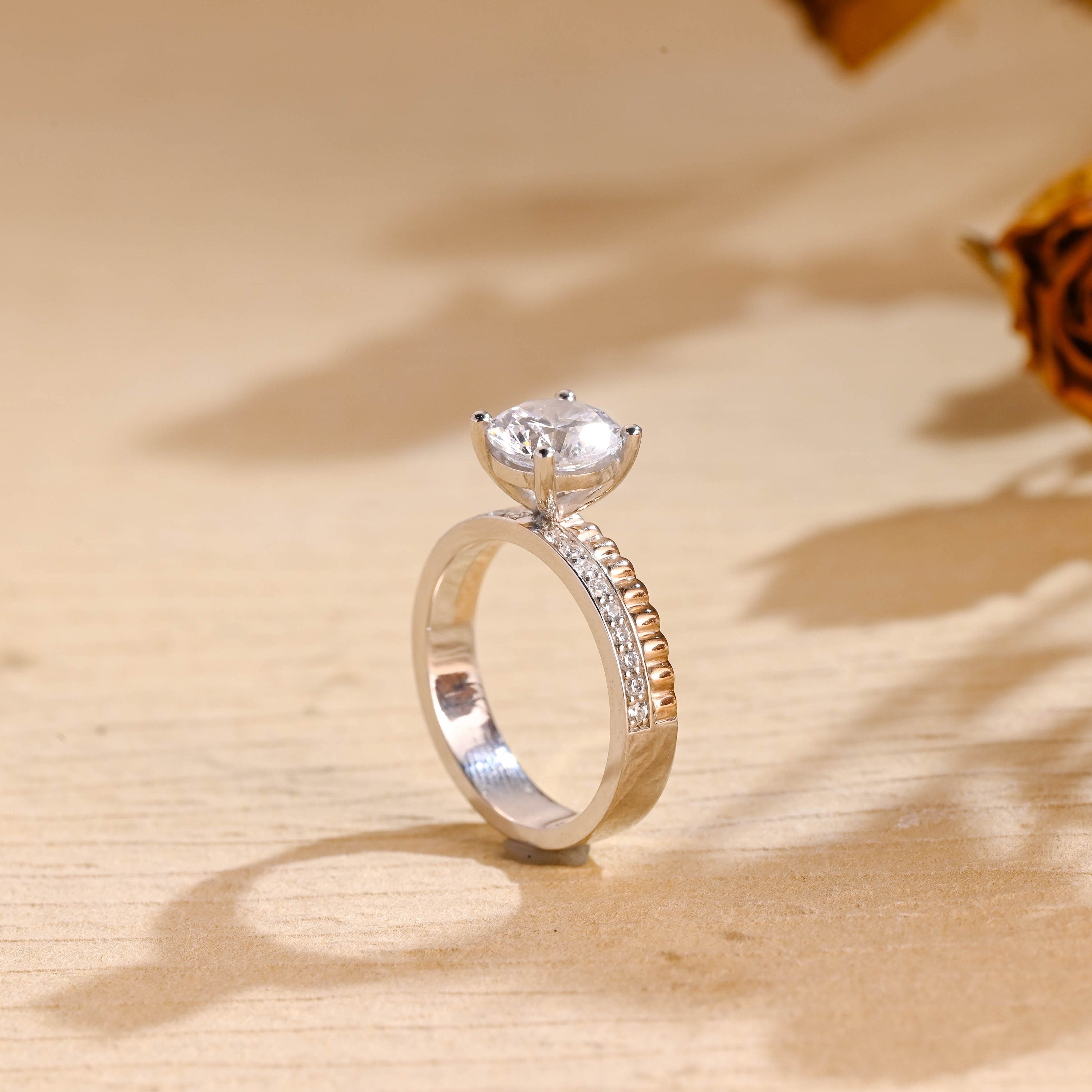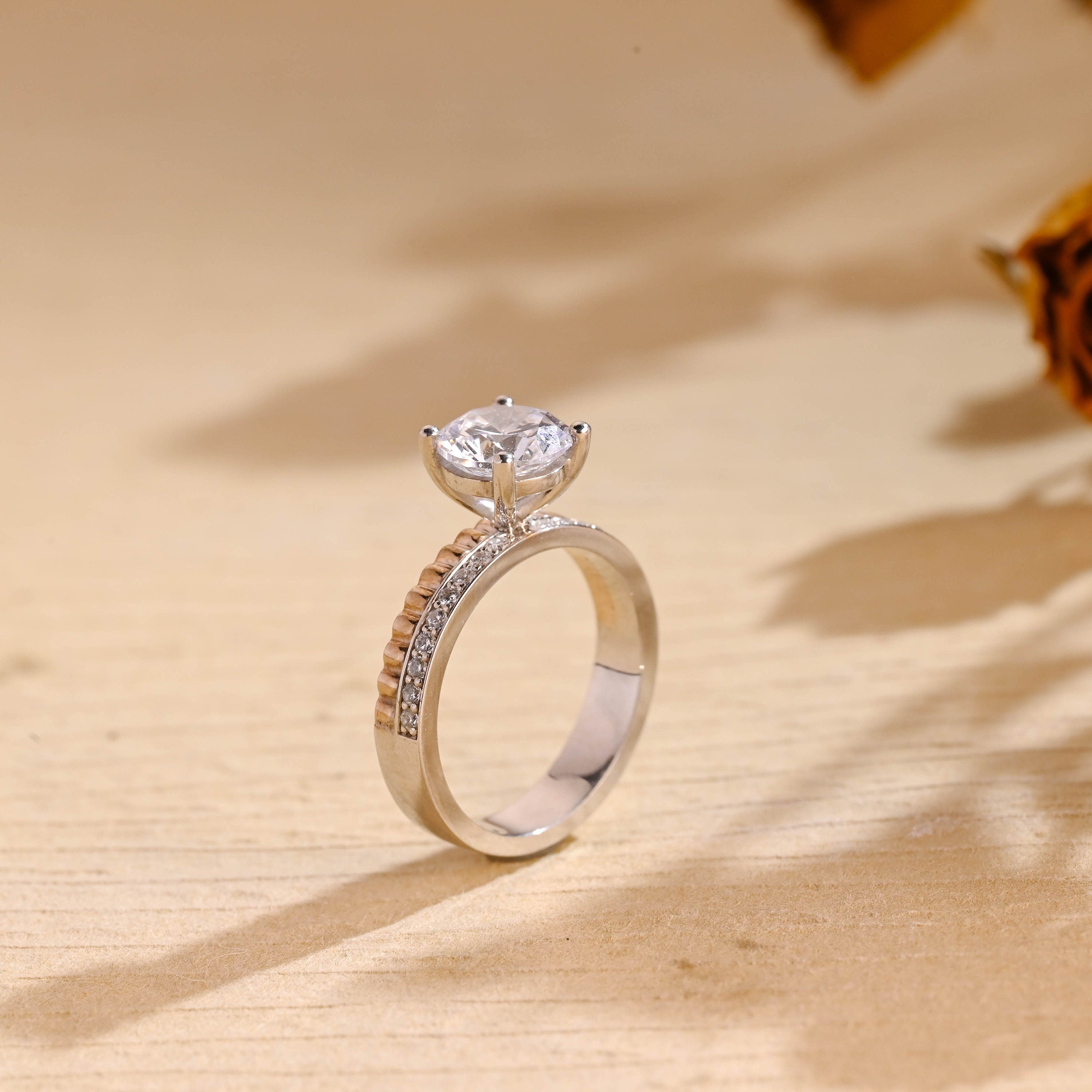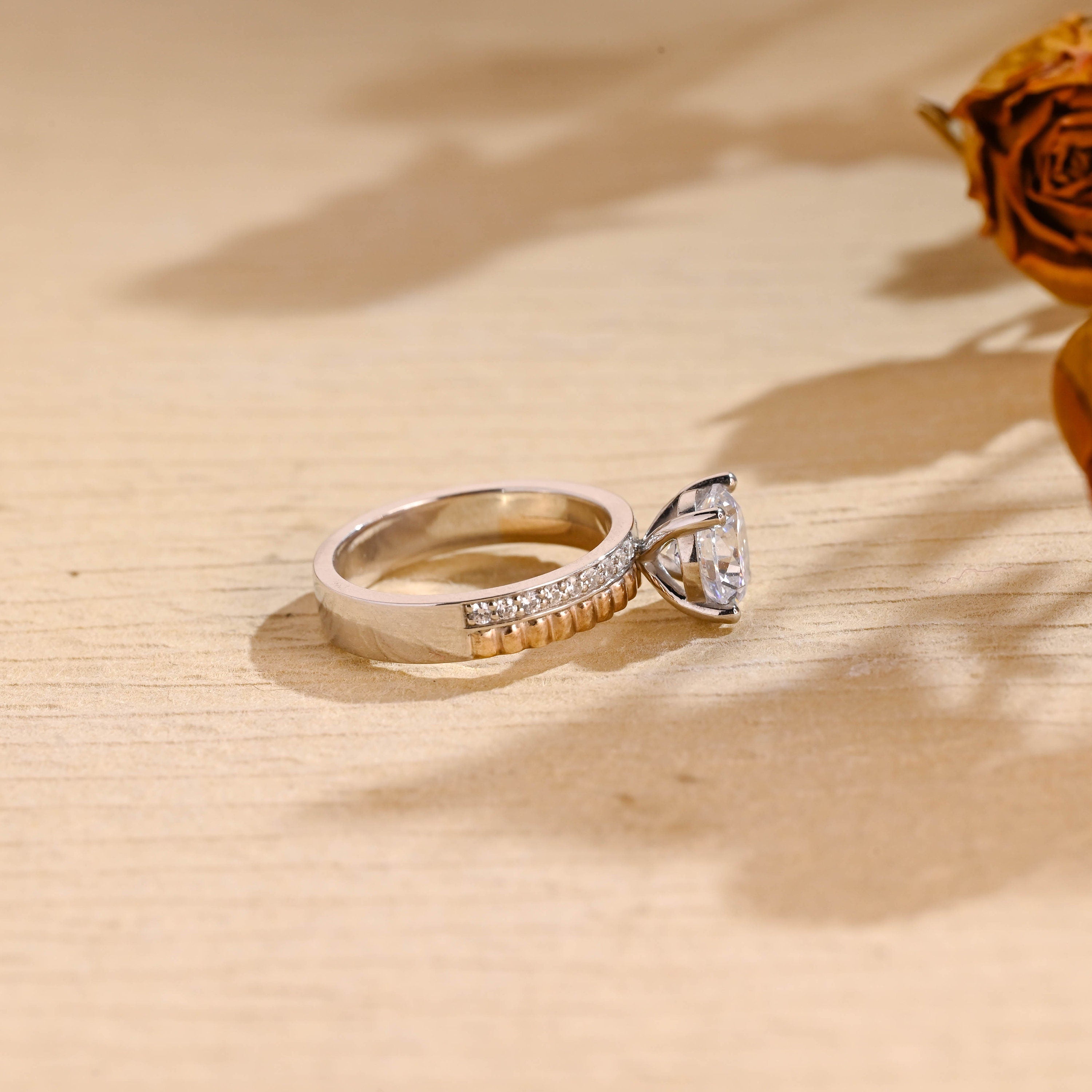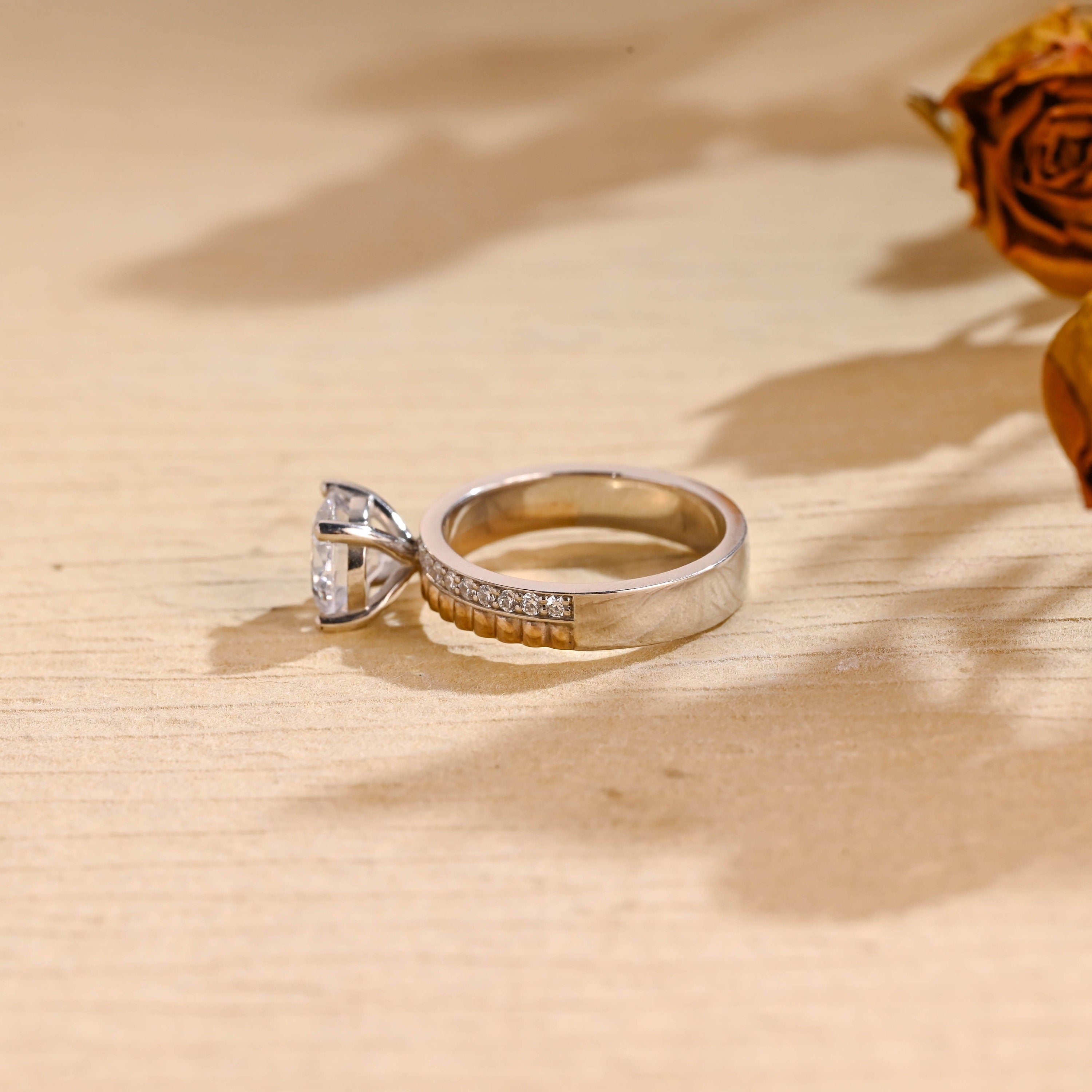 1.0CT Round Brilliant Cut Pave Set Moissanite Engagement Ring
