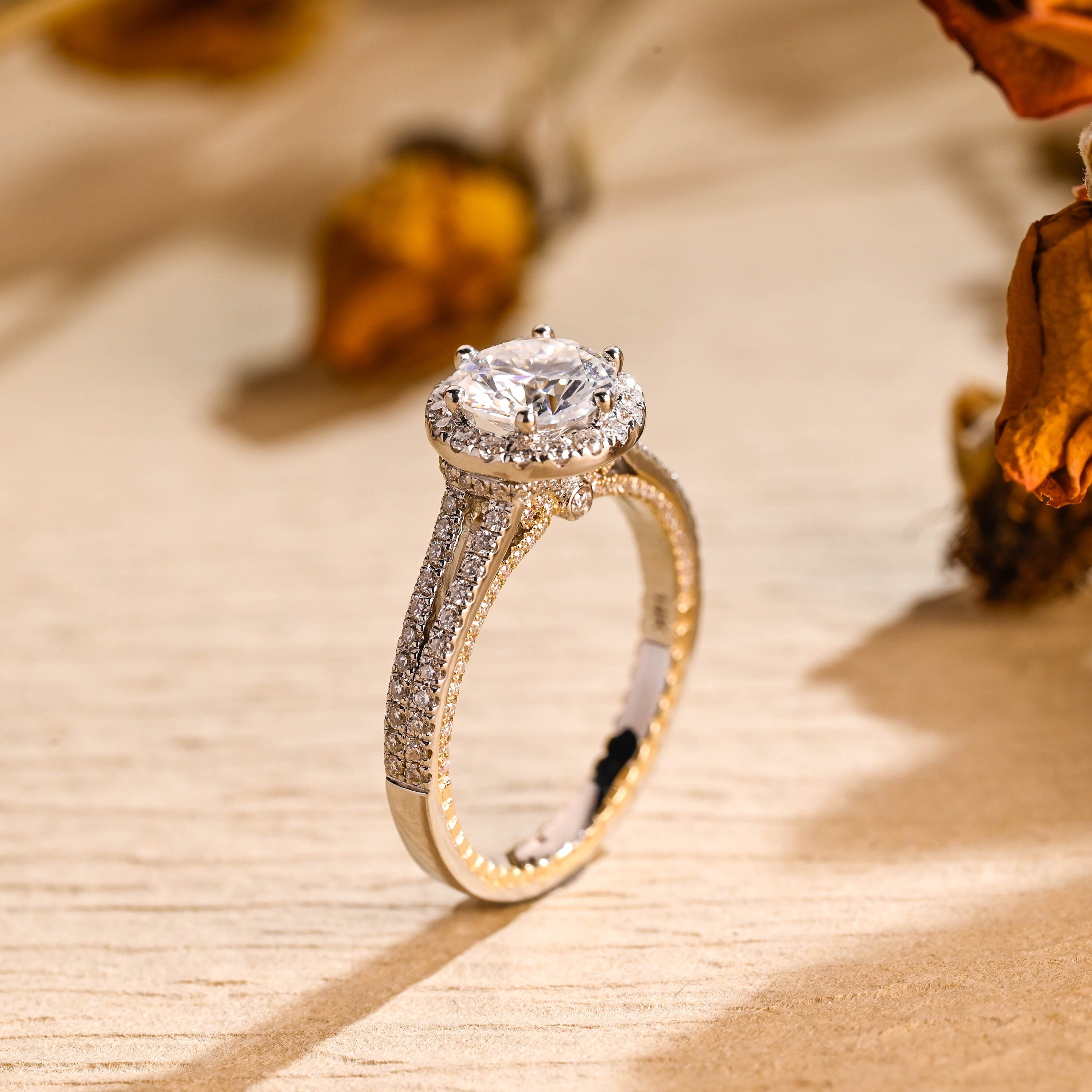 1.0CT Round Brilliant Halo Diamond Moissanite Engagement Ring