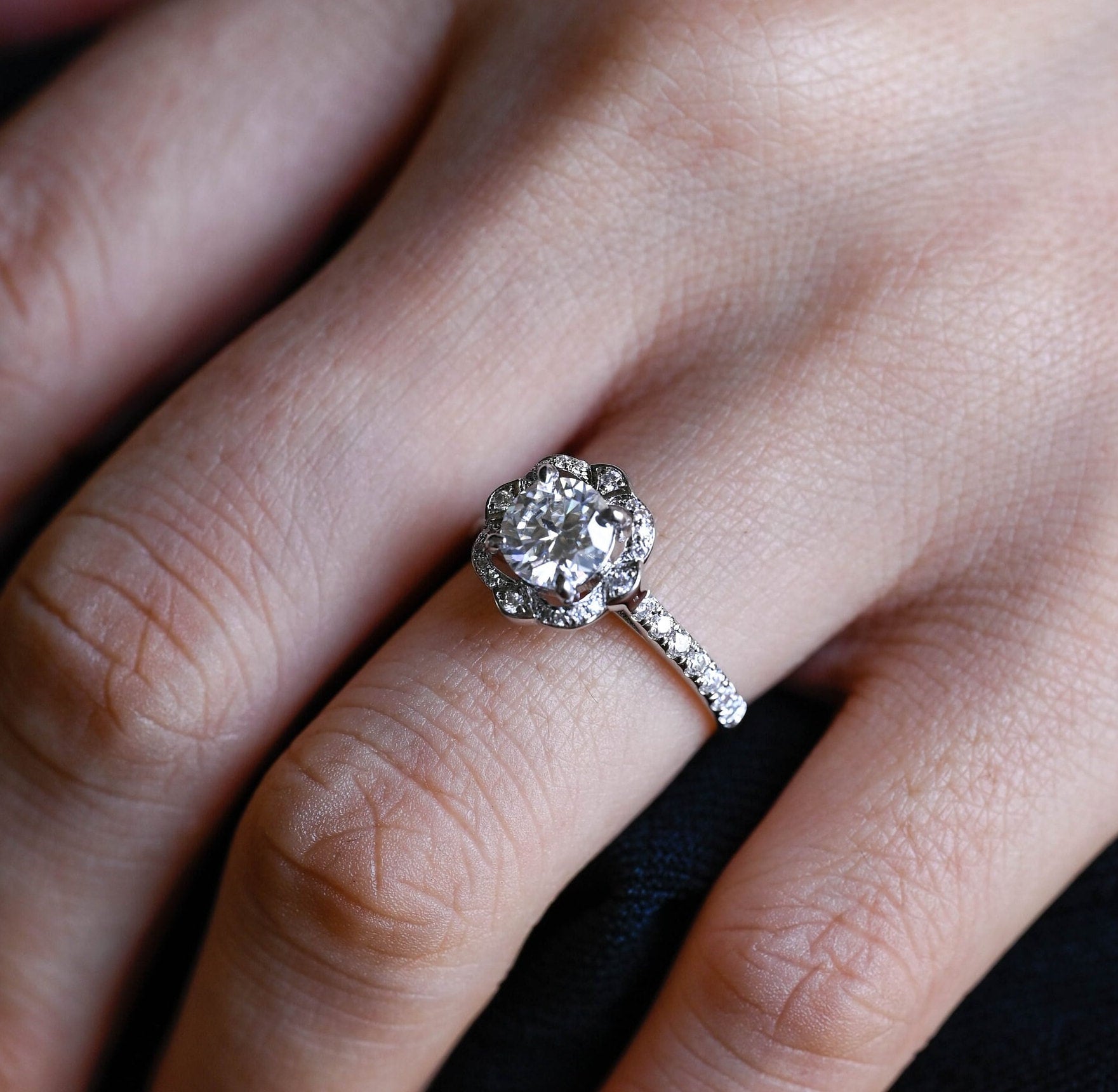 1.0CT Round Brilliant Pave Setting Moissanite Engagement Ring