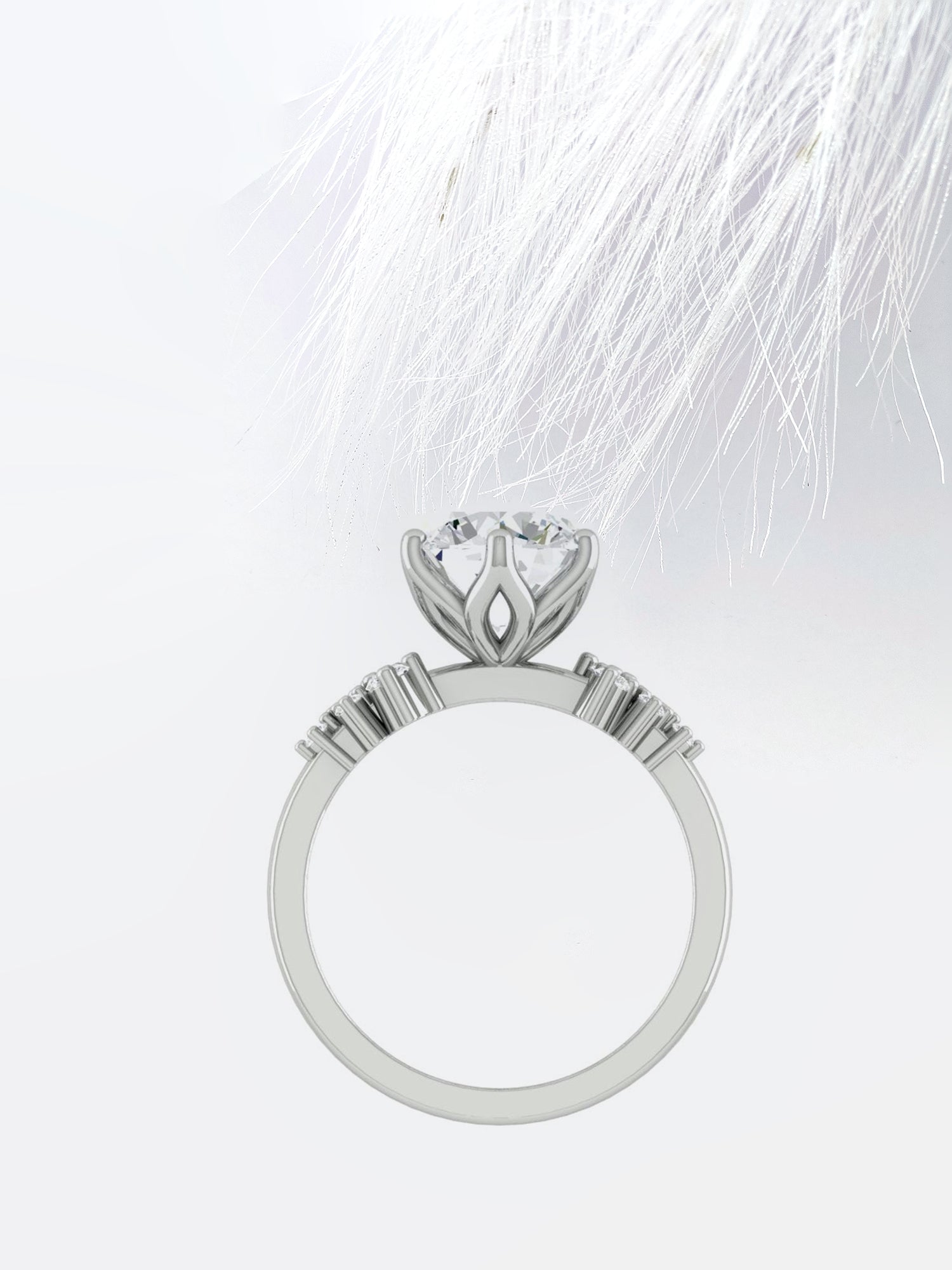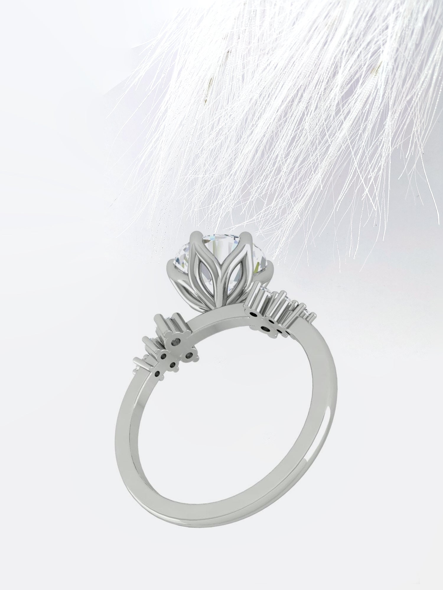 Our latest masterpiece is a modern engagement ring, available in solid gold or platinum, featuring a distinctive modified white diamond. We deliver high-end luxury pieces that exceed your expectations. Contact us now to design your own masterpieces.