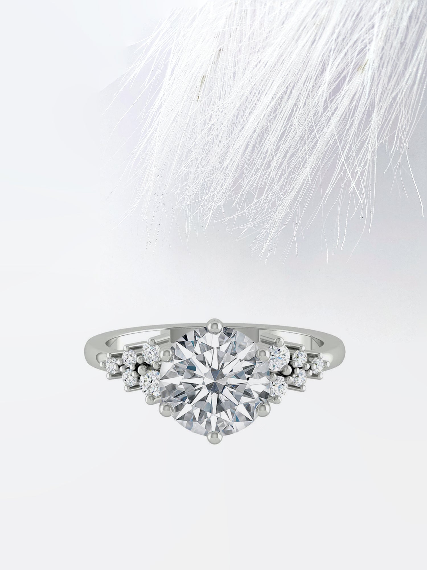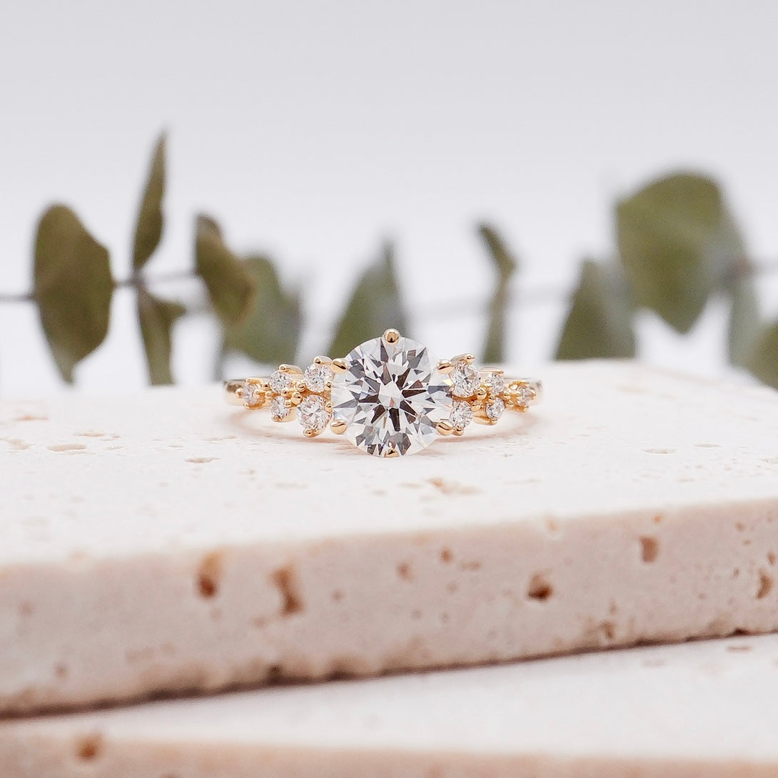 1.25CT Round Cluster Moissanite Diamond Engagement Ring With Six Prong