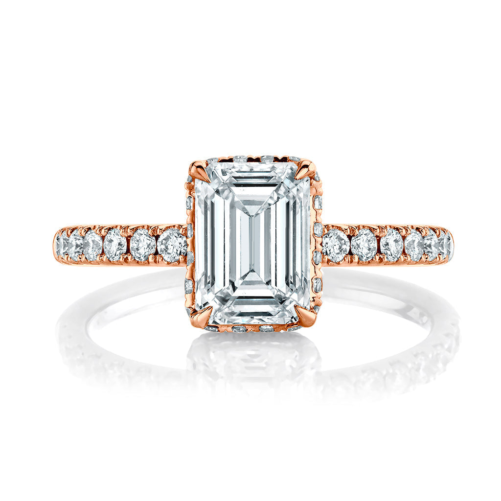 1.51ct Emerald Cut Moissanite Hidden Halo Diamond Engagement Ring