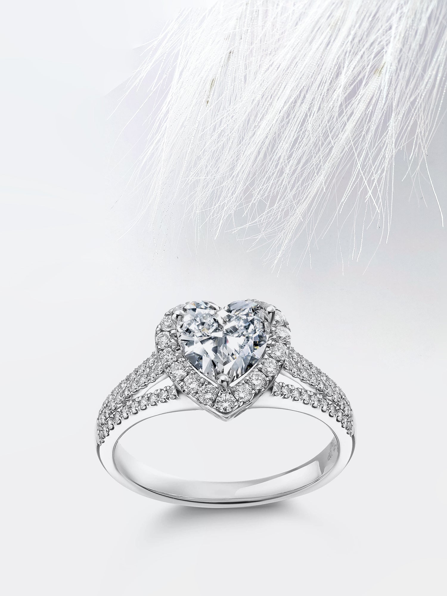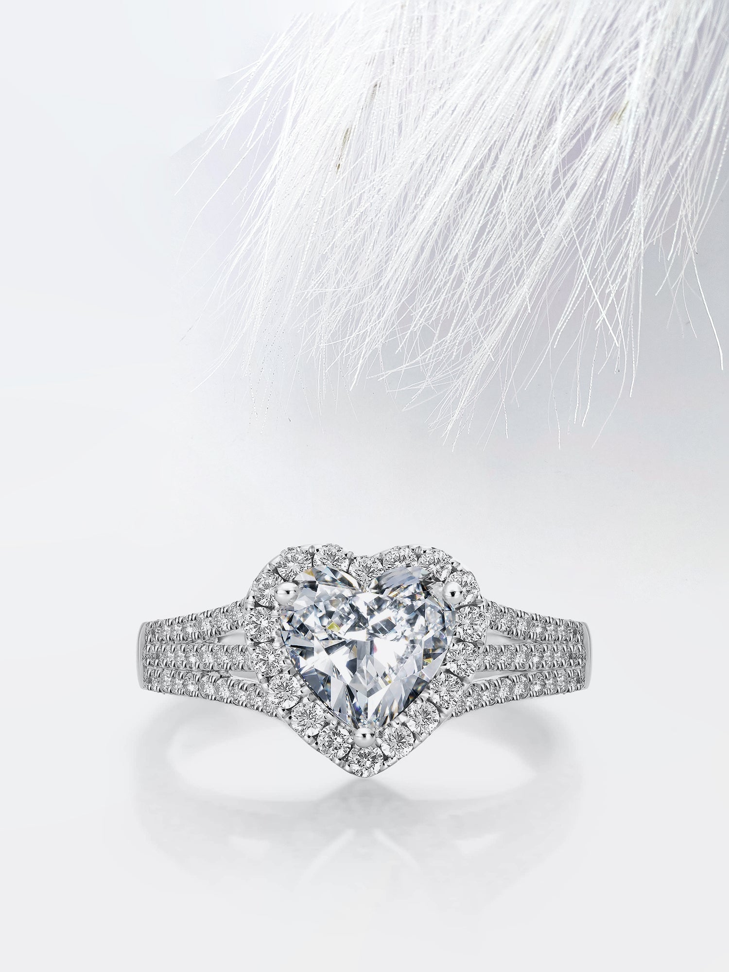 1.61CT Heart Split Shank Moissanite Diamond Halo Engagement Ring