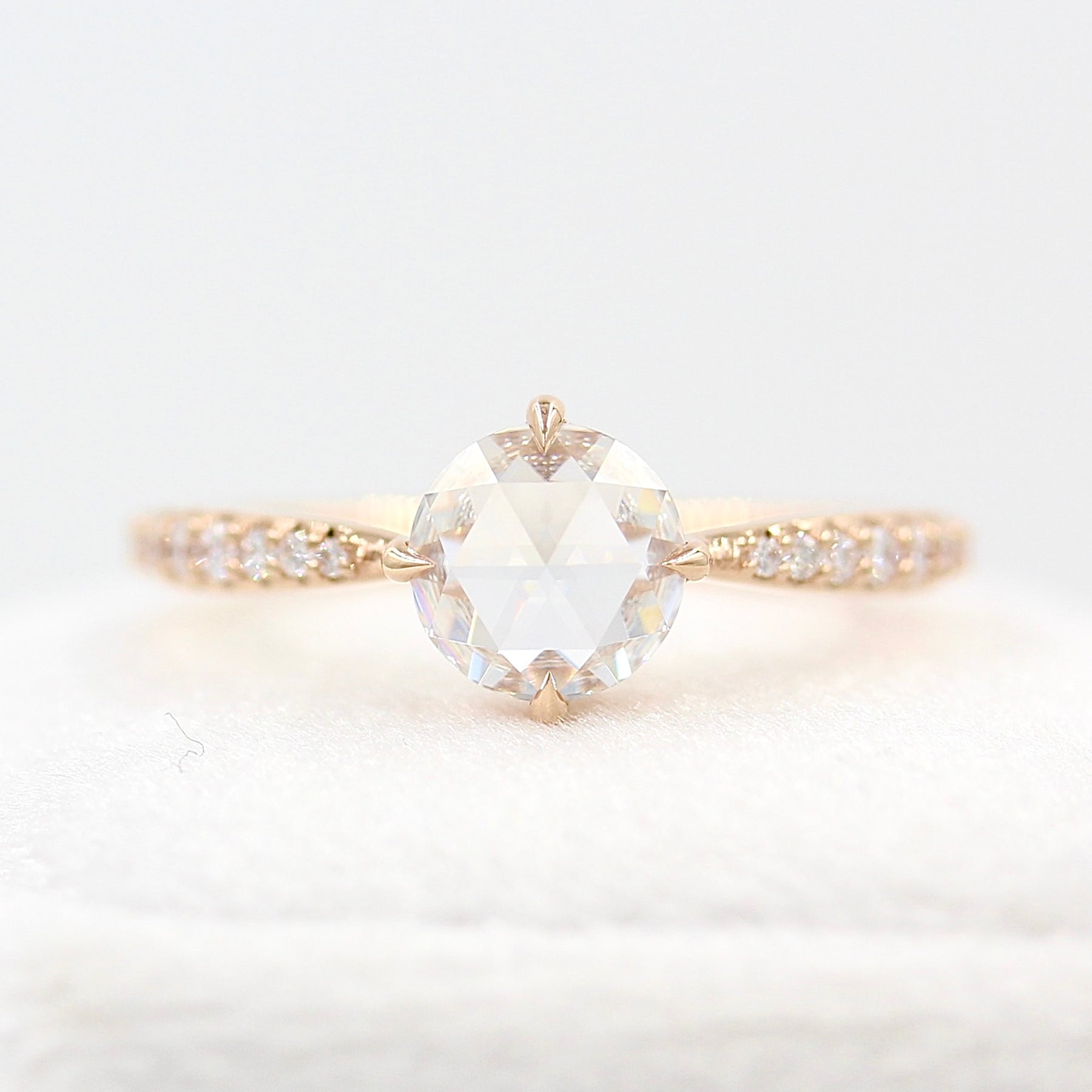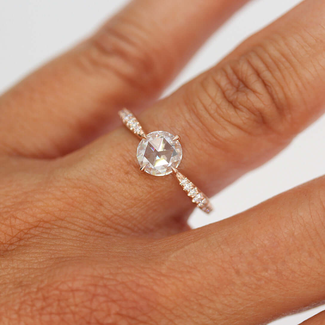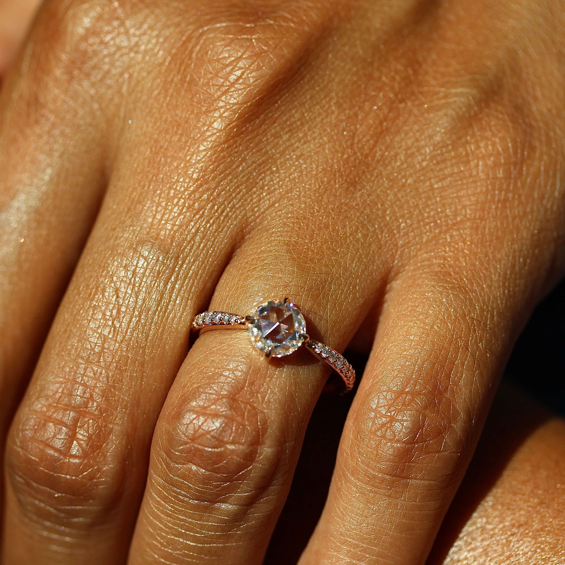 2ct Round Rose Cut Moissanite Diamond Pave Engagement Ring For Women In 18K Solid Gold