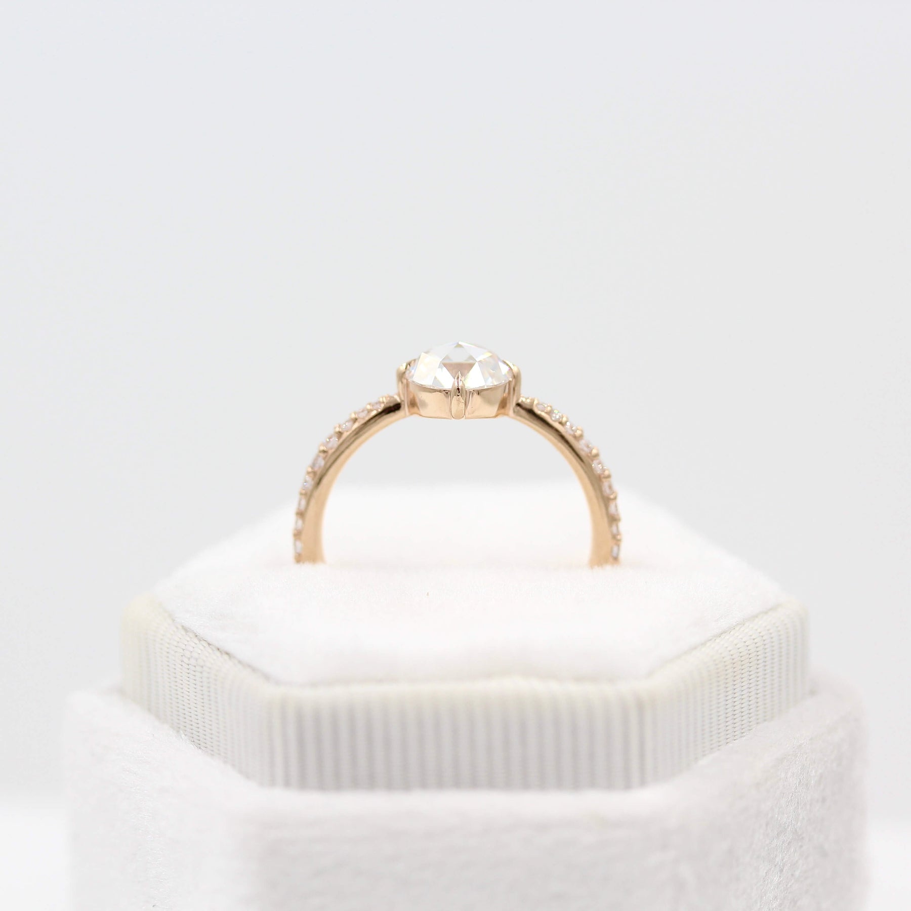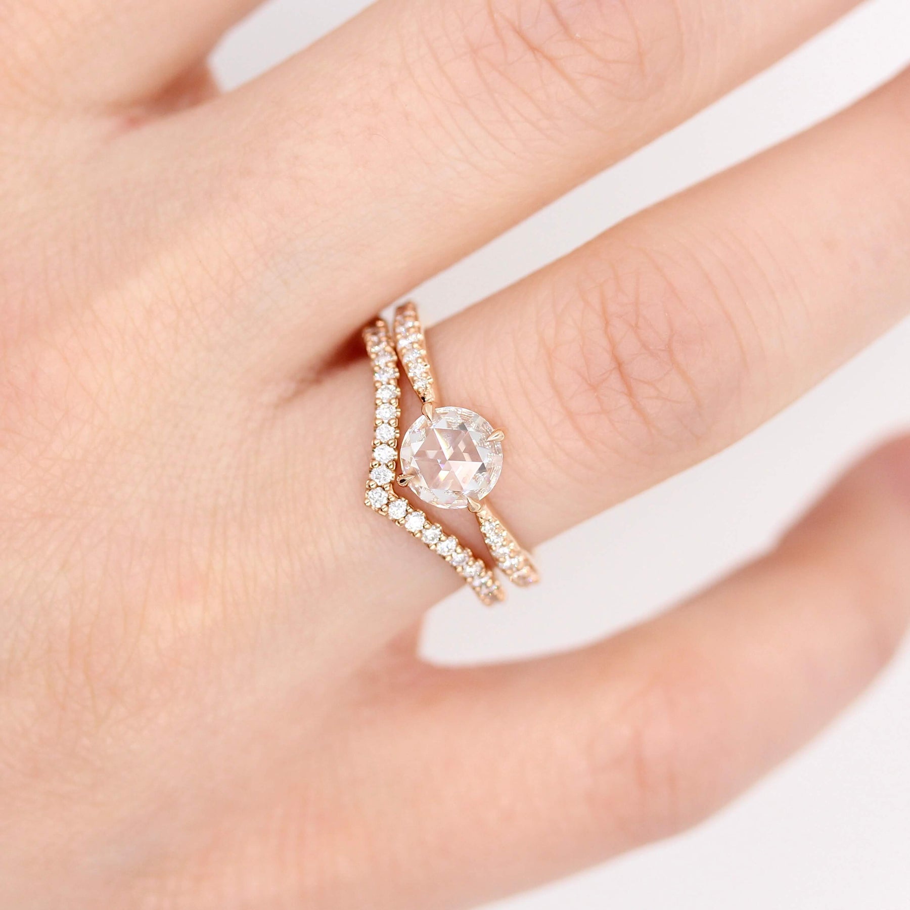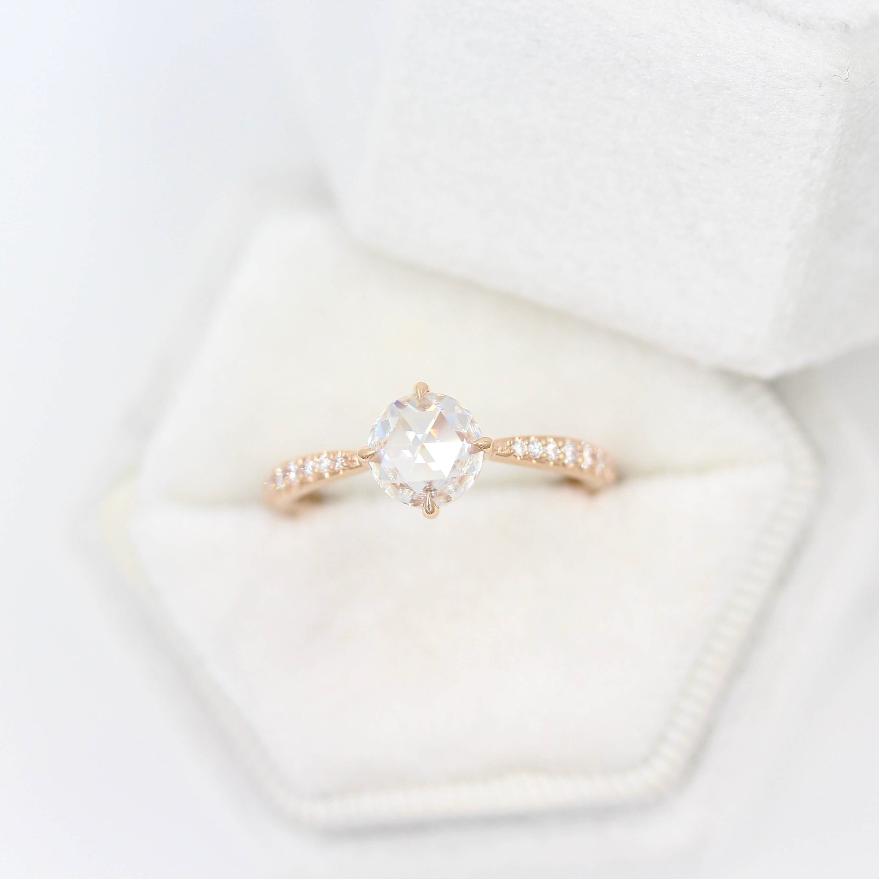 2ct Round Rose Cut Moissanite Diamond Pave Engagement Ring For Women In 18K Solid Gold