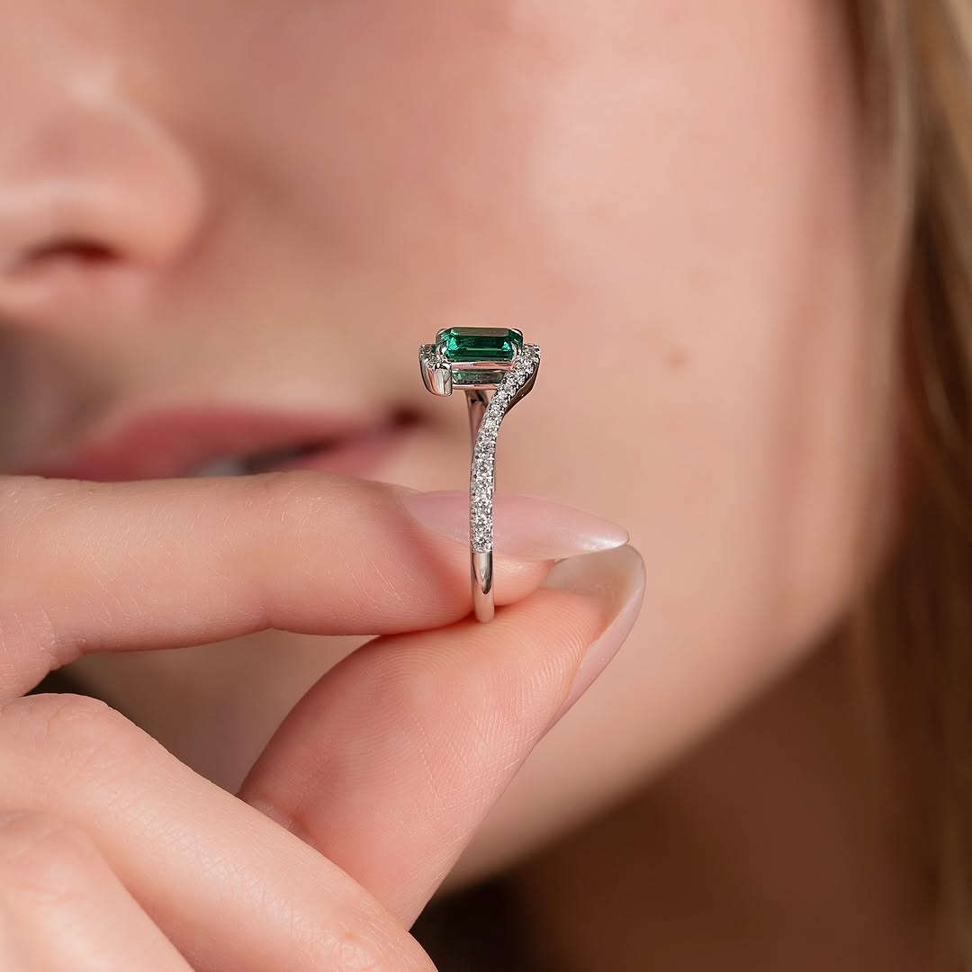 ✦Make a distinctive statement with this 1.0CT Green Emerald Cut Diamond Bypass Style Lab-Grown Engagement Ring. The sleek emerald-cut center stone showcases a captivating green hue, elegantly framed by a modern bypass design. Crafted with ethical lab-grown diamonds, it blends sustainable luxury with contemporary sophistication. The flowing band adds movement and uniqueness to the timeless step-cut sparkle. This ring is a bold symbol of love, individuality, and lasting commitment.