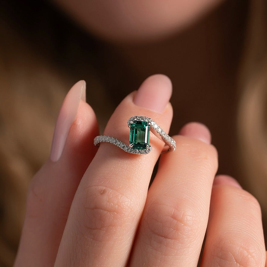 1.0CT Green Emerald Cut Diamond Bypass Style Lab Grown Engagement Ring