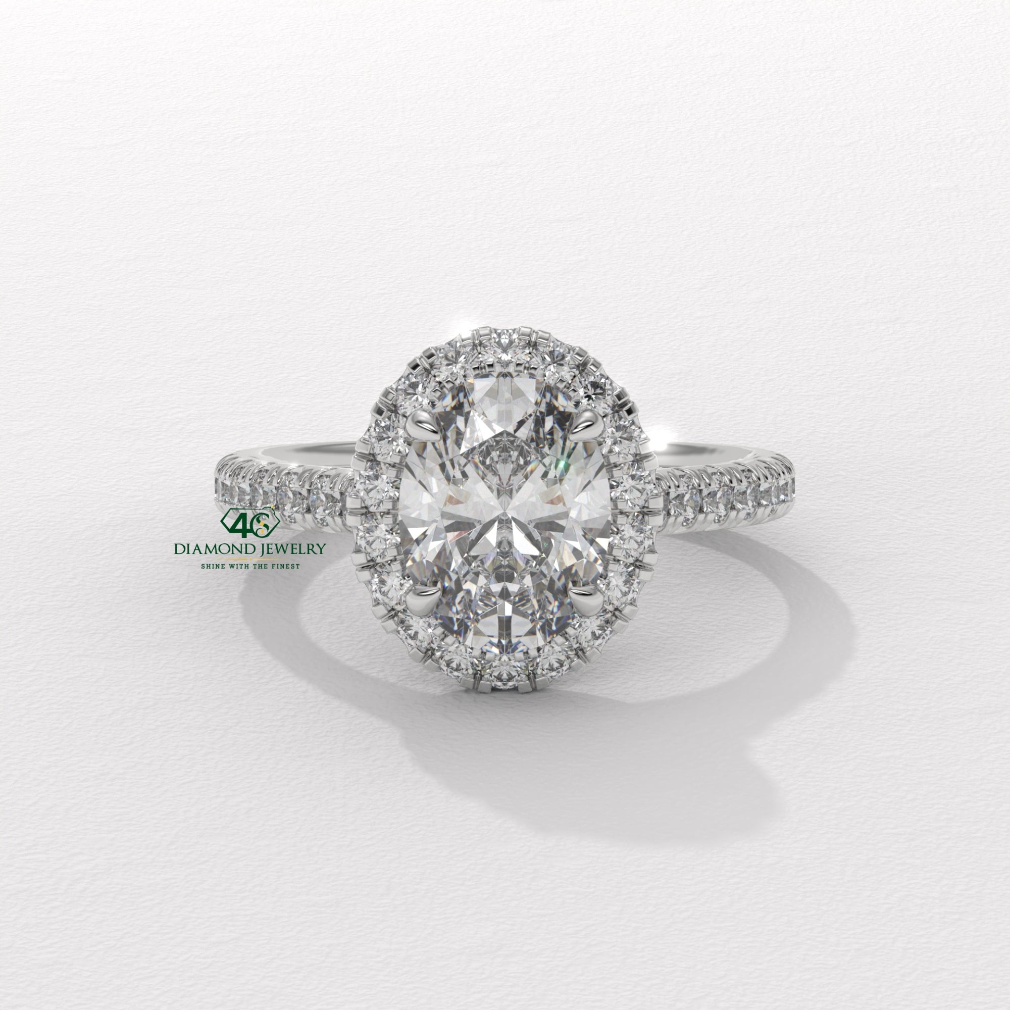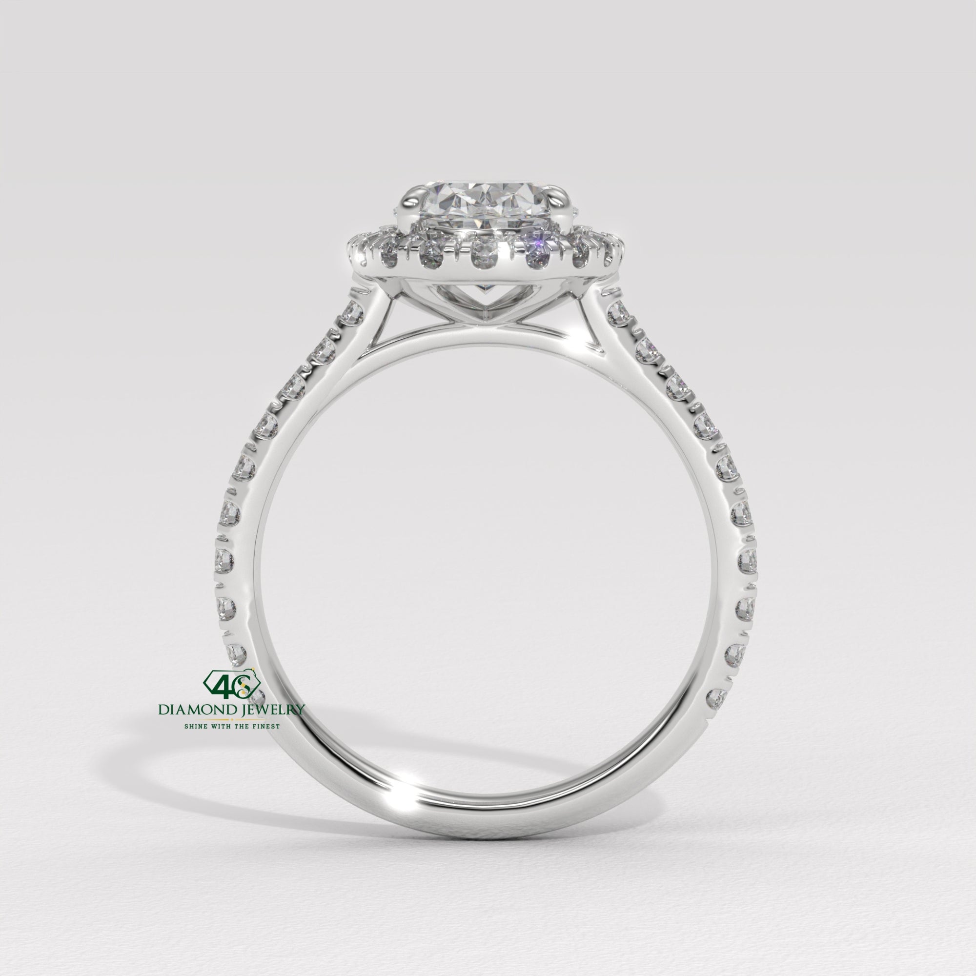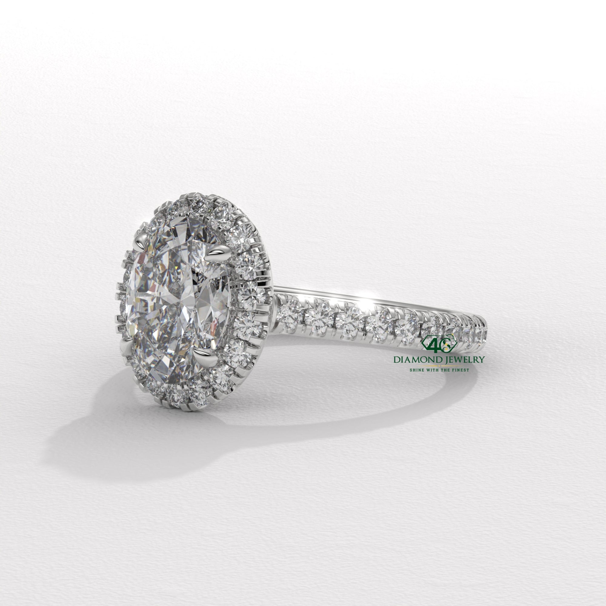 1.50CT Oval Cut Halo Pave Setting Lab Grown Engagement Ring