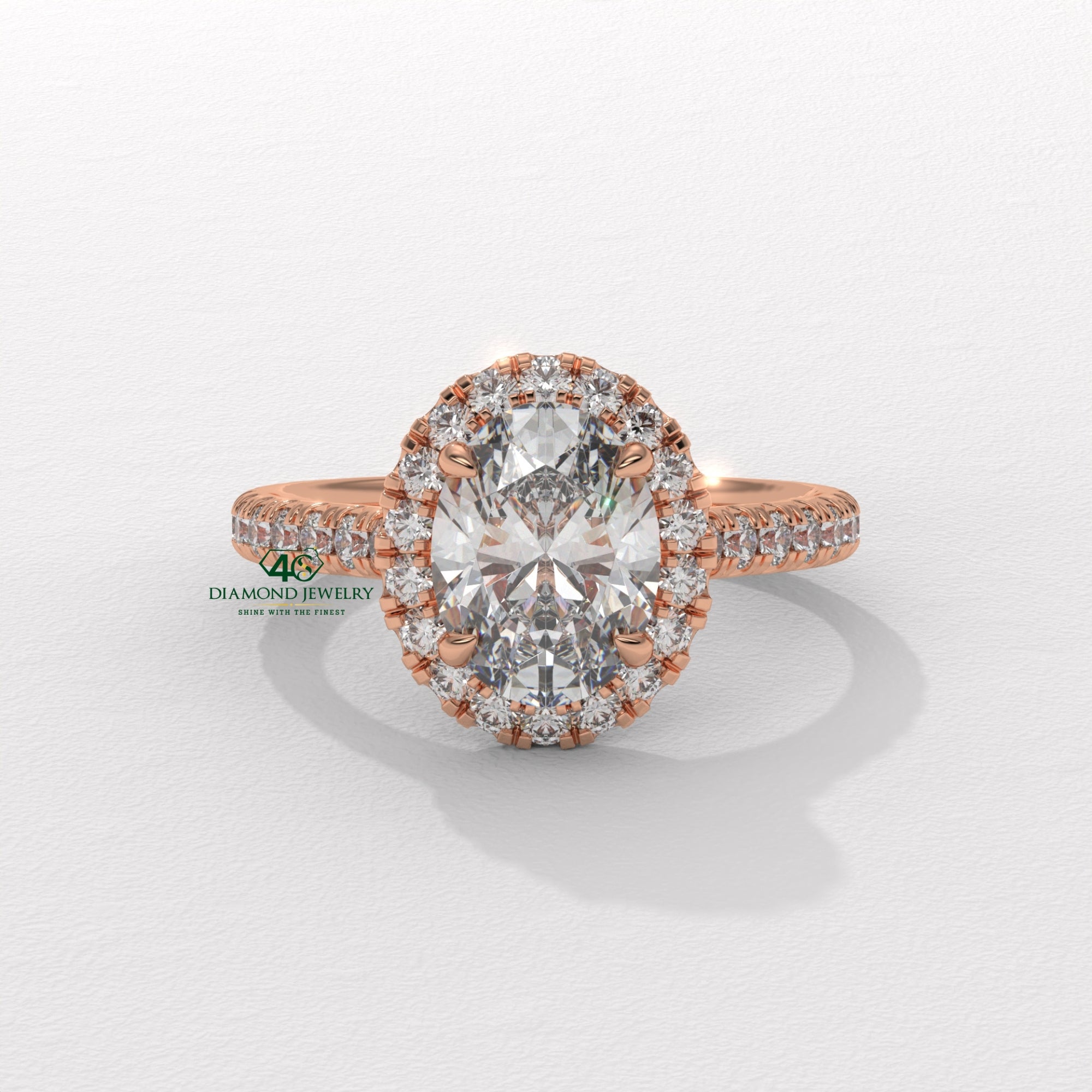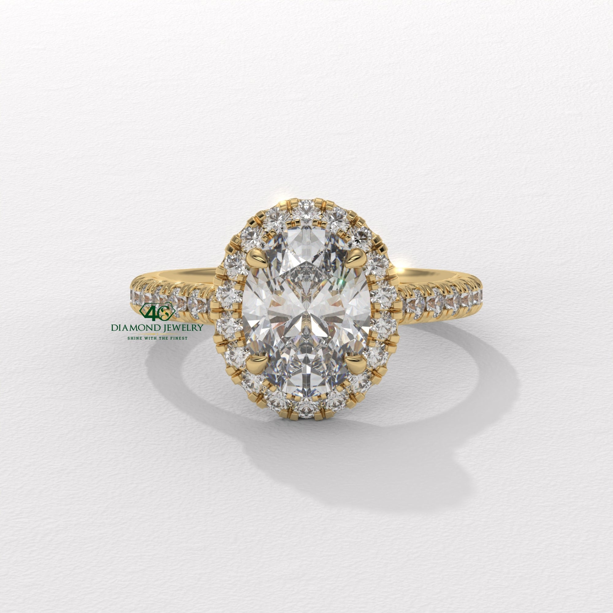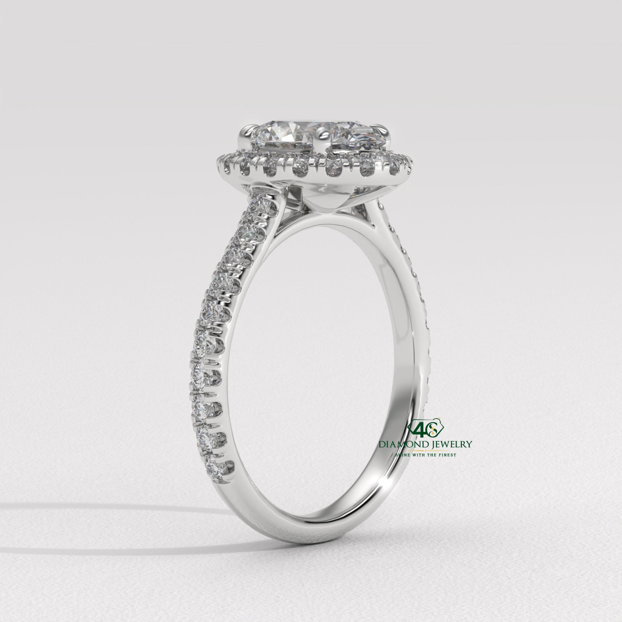 1.50CT Oval Cut Halo Pave Setting Lab Grown Engagement Ring