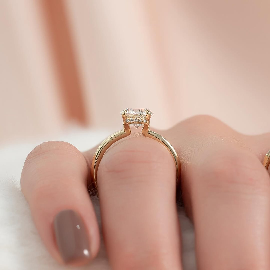 ✦Elevate your romance with this 1.50CT Round Diamond Hidden Halo Lab-Grown Engagement Ring. The brilliant round center stone is subtly enhanced by a hidden halo, adding extra sparkle and sophistication. Crafted with ethical lab-grown diamonds, it blends timeless elegance with sustainable luxury. Perfect for those who love classic designs with a modern twist. This ring is a radiant symbol of love and lasting commitment.