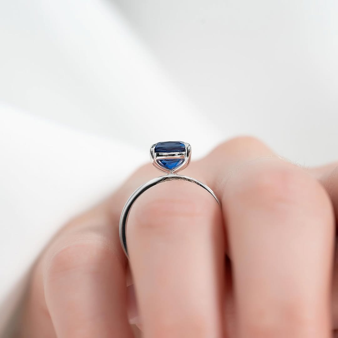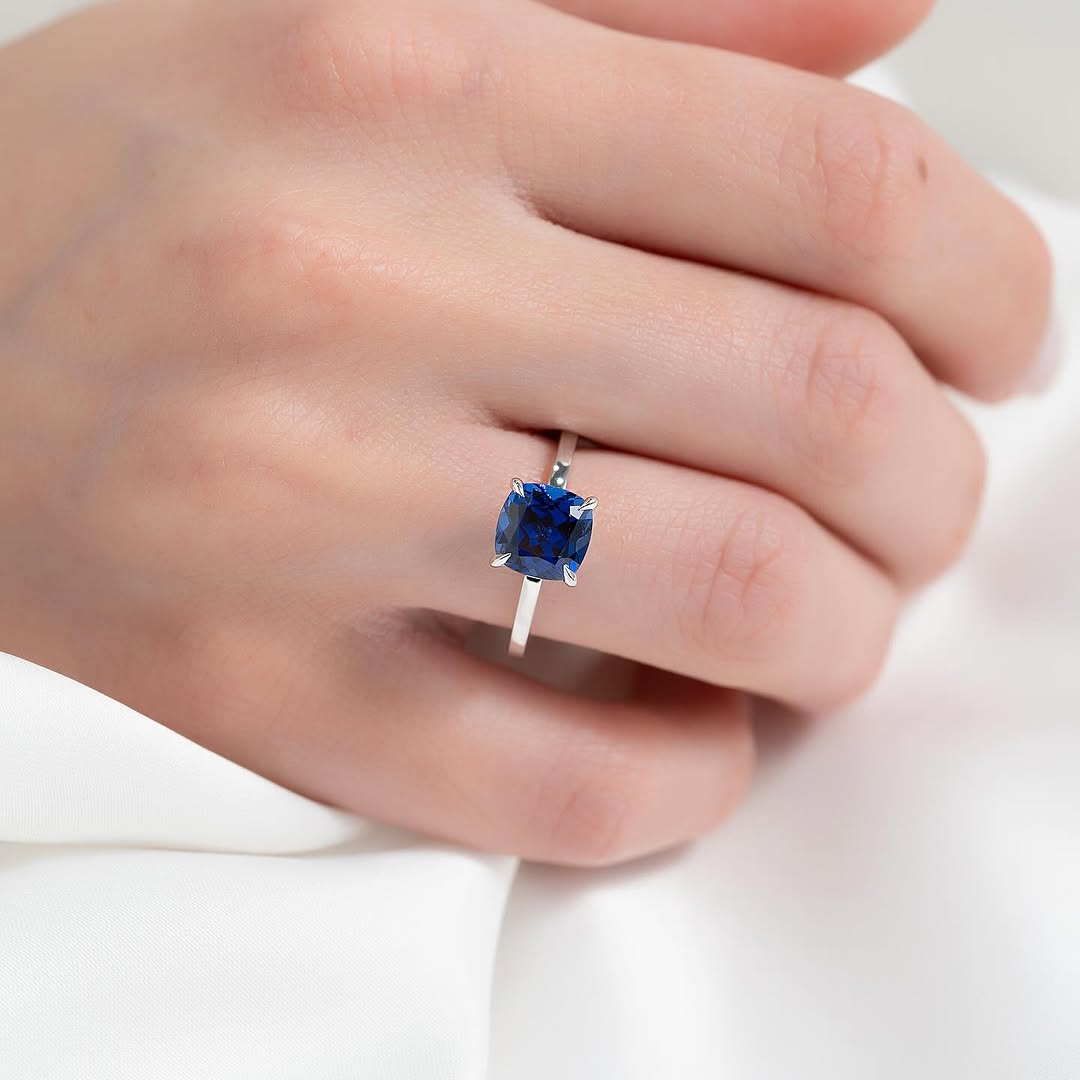 ✦Fall in love with this 2.0CT Blue Sapphire Cushion Lab-Grown Engagement Ring. The cushion-cut sapphire showcases a rich, velvety blue hue with soft, romantic brilliance. Accented with sparkling lab-grown diamonds, it offers a perfect balance of color and elegance. Crafted for those who adore timeless beauty with a modern touch. This ring is a graceful symbol of love, sophistication, and lasting commitment.