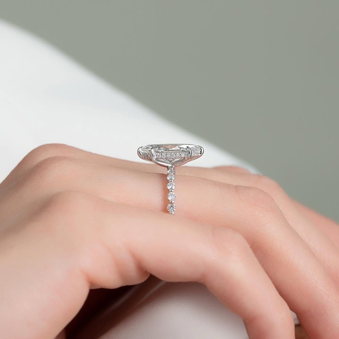 ✦A dazzling 2.0CT marquise cut lab grown diamond takes center stage in this pavé setting engagement ring, showcasing elegant brilliance and an elongated silhouette. The pavé-set band enhances the sparkle, adding refined detail and luxurious charm. Crafted with ethically sourced lab grown diamonds, it offers sustainable elegance without compromise. Perfect for those who love graceful design with timeless sophistication.