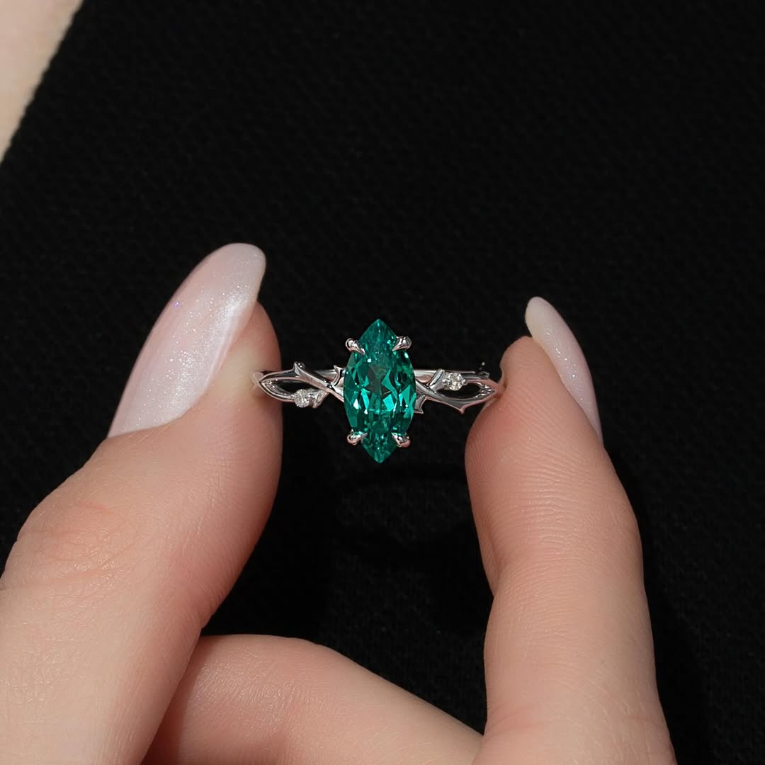 ✦A breathtaking 2.0CT marquise cut green lab grown diamond takes center stage in this nature-inspired engagement ring, radiating vibrant brilliance and unique charm. The organic, nature-inspired design enhances the diamond’s sparkle, creating an elegant and artistic look. Crafted with ethically sourced lab grown diamonds, it offers sustainable luxury with refined craftsmanship. Perfect for those who love bold, distinctive designs paired with timeless elegance.